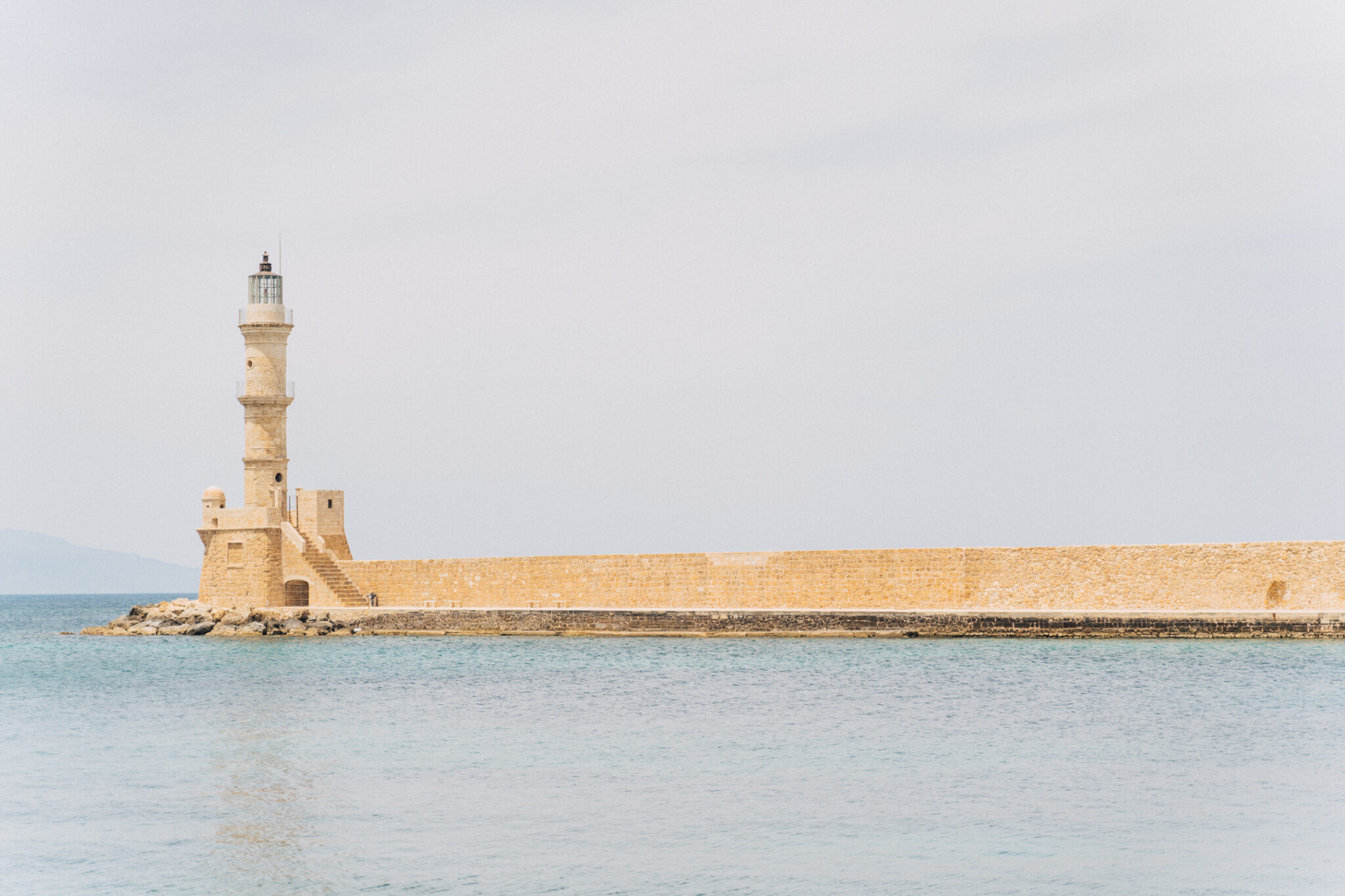 At the mouth of Chania’s old Venetian harbour, the impressive stone beacon still helps guide vessels safely to and from this medieval coastal town in north-west Crete.