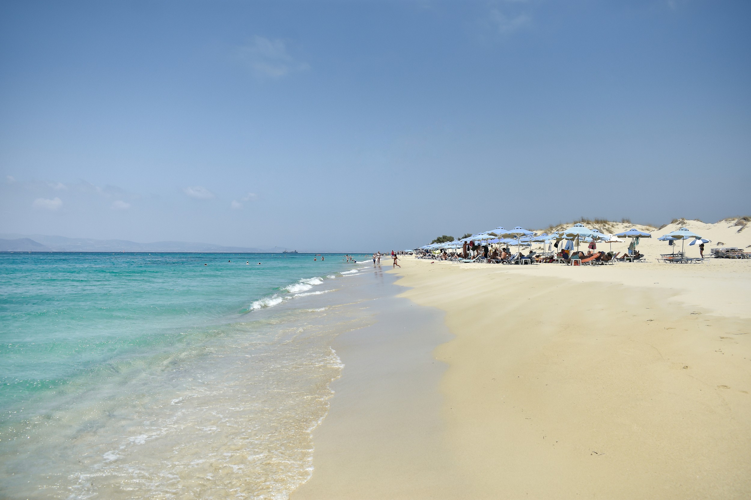 Και ναι, η παραλία –σε μεγάλο τμήμα της- έχει αλωθεί από τουριστικές επιχειρήσεις και όσοι την γνώριζαν το ’92 ίσως οικτίρουν. Όμως η αλήθεια είναι ότι είναι πολύ μεγάλη για να χωράει τους πάντες: τους θαυμαστές του ανσάμπλ ομπρέλα-ξαπλώστρα στα πρώτα της μέτρα, τους λάτρεις των θαλάσσιων σπορ λίγο πιο πέρα και, τέλος, εκείνους που αναζητούν το social distancing και το εκτιμούσαν πολύ πριν γίνει κουλ.
