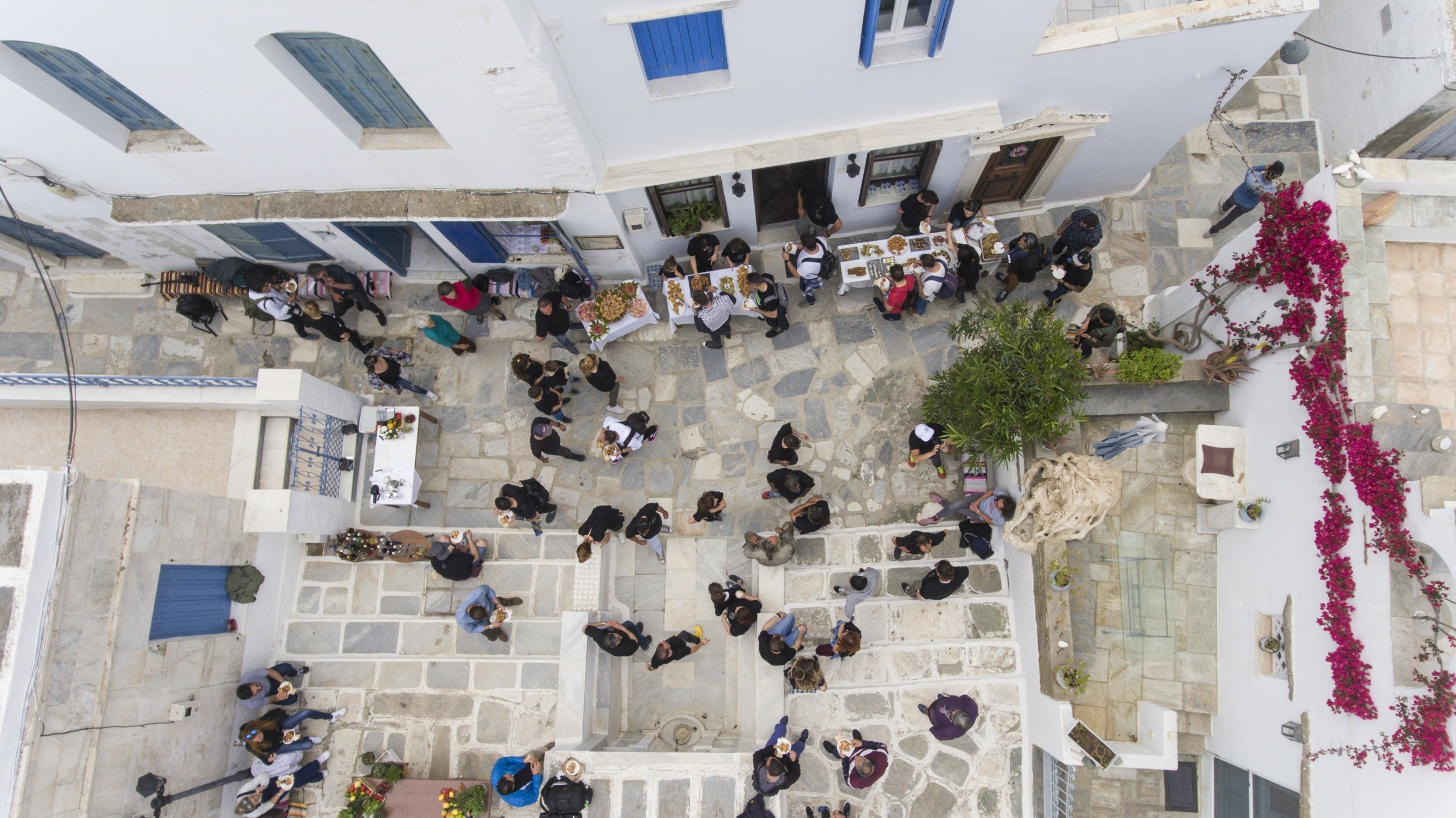 «Στην αρχή έγινε μια πρώτη γνωριμία με την γαστρονομία του τόπου και μια απόπειρα του να τεθούν οι βάσεις της δημιουργίας ενός γαστρονομικού προορισμού. Με την πάροδο των χρόνων, το εγχείρημα αγκαλιάστηκε από όλο το νησί. Άνθρωποι από κάθε παραγωγική τάξη της Τήνου, αλλά και από διάφορα μέρη της Ελλάδας, συνέβαλλαν σε αυτή τη δράση, η οποία παραμένει ζωντανή και ενεργή, όχι μόνο τον μήνα Μάιο αλλά όλο τον χρόνο. Στην πορεία των χρόνων γνωριστήκαμε μεταξύ μας, βάλαμε στην άκρη το “εγώ” και δουλέψαμε με το “εμείς”. Περάσαμε δυσκολίες, οι οποίες μας ένωσαν ακόμα πιο πολύ. Ο καθένας βάζει τον καλύτερο του εαυτό, νιώθει περήφανος για τον τόπο του και προσφέρει φιλοξενία και γνώση στους επισκέπτες-καλεσμένους» προσθέτει ο Αντώνης χαρίζοντας ωστόσο μερικά μαθήματα ζωής, μέσα σε δύο φράσεις.