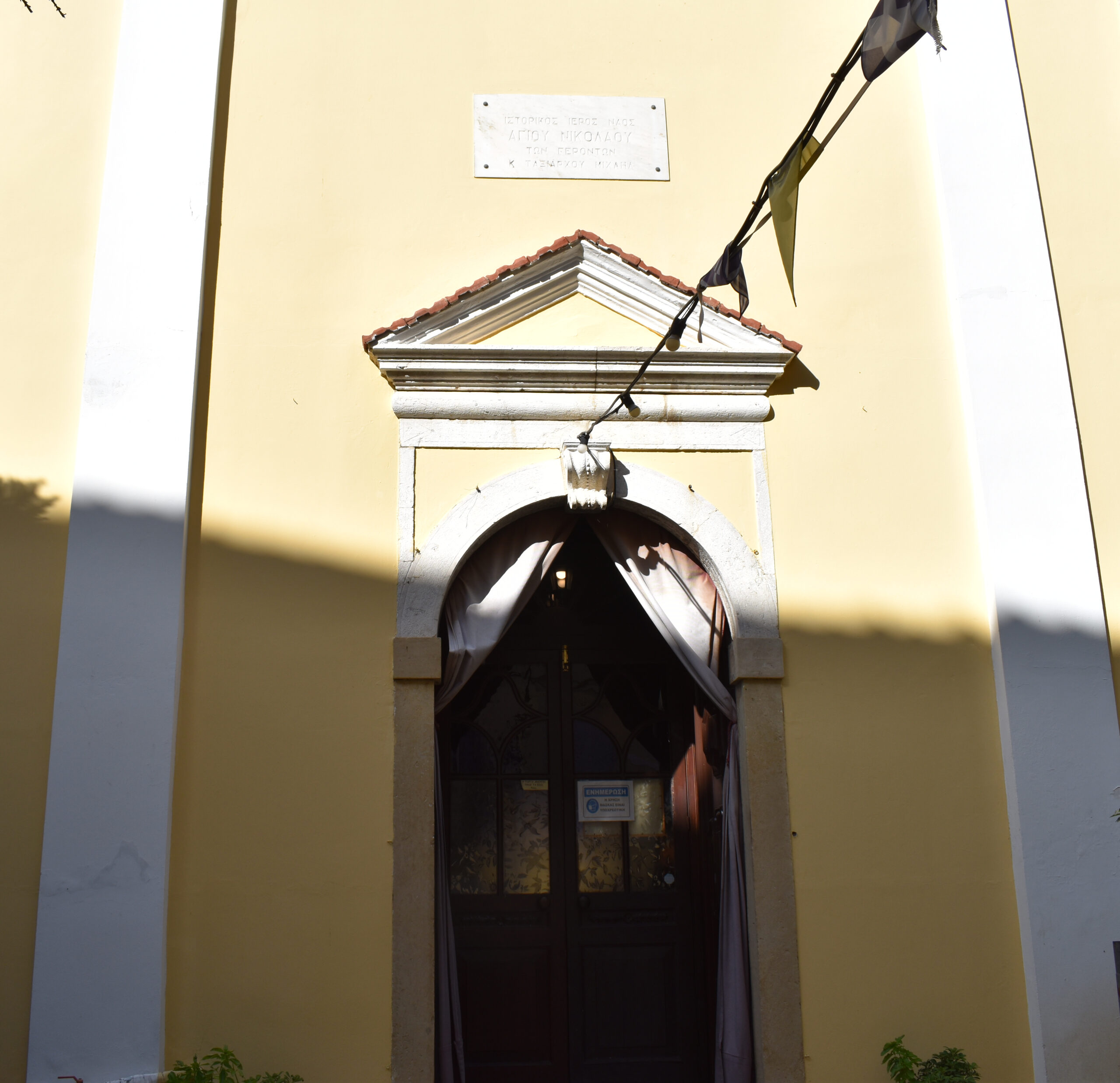 Ακριβώς απέναντι από την Παναγιά των Ξένων, μια ακόμη εκκλησία πλούσια σε ιστορία και θρησκευτικά κειμήλια και ακόμη παλαιότερη, καθώς χτίστηκε το 1480 από οικογένειες ανώτερων ευγενών του νησιού. Περνώντας κανείς στον βόρειο νάρθηκα μπορεί να δει να διασώζονται αν και όχι ολόκληρες, τοιχογραφίες του 15ου-16ου αιώνα, ενώ στρέφοντας το βλέμμα στο δάπεδο αυτής της ιδιόμορφης τετράπλευρης βασιλικής, εύκολα διακρίνει πλήθος ταφικά μνημεία της εποχής της Ενετοκρατίας.