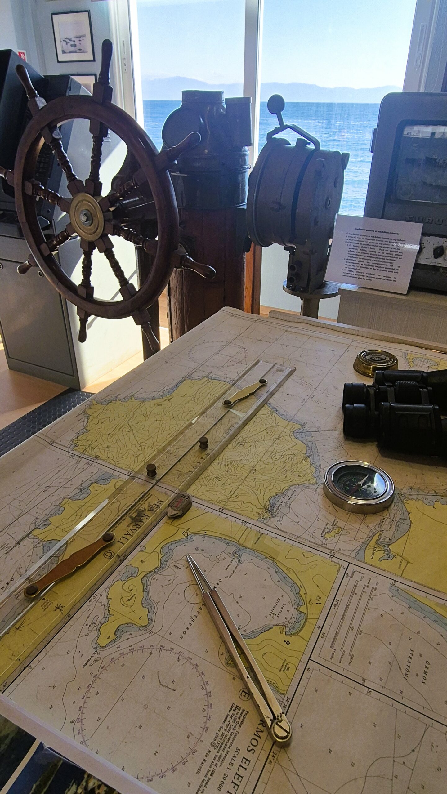 Στον πρώτο όροφο, ζωγραφικοί πίνακες αιχμαλωτίζουν το φως καθώς λαμπυρίζει στο νερό, ενώ πανέμορφα κοχύλια ενθουσιάζουν τα παιδιά, θυμίζοντας την οικεία σχέση μας με τη θάλασσα. Εδώ δεσπόζει και ο παλιός μηχανισμός του φάρου της πόλης που πιθανόν τοποθετήθηκε το 1926, αλλά την παράσταση κλέβει η αναπαράσταση της γέφυρας ενός πλοίου με τον χάρτη και τα ναυτιλιακά όργανα ένδειξης πορείας, στρατηγικά τοποθετημένη μπροστά στο παράθυρο και τη θέα στο πέλαγος. Νιώθοντας για λίγο κυβερνήτης ή αξιωματικός πλοίου, η περιήγηση κορυφώνεται και η Καβάλα μας υπενθυμίζει ότι παραμένει μια πόλη στραμμένη στους ανοιχτούς θαλάσσιους δρόμους.