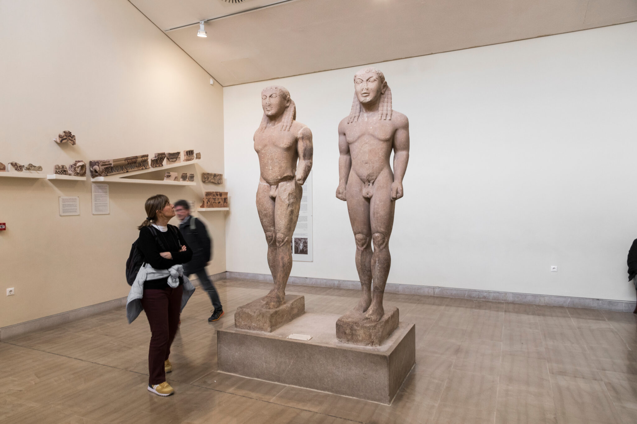 Αν και πρέπει να παραδεχθούμε ότι στερείται αρχιτεκτονικής ομορφιάς εντός και εκτός, τα εκθέματά του σε κάνουν να το παραβλέπεις. Είναι εξάλλου, συνδεδεμένα με ιστορίες και γνωστούς μύθους και δίνουν εξαιρετικά σημαντικές πληροφορίες για τη ζωή των αρχαίων χρόνων. Οι συλλογές του περιλαμβάνουν κυρίως αρχιτεκτονικά γλυπτά, αγάλματα και αφιερώματα των πιστών στο ιερό. Θα σταθείτε στον περίφημο Ηνίοχο που είναι αριστοτεχνικά φτιαγμένος, στους τόσο αρμονικούς δίδυμους Κούρους, στην εντυπωσιακή σφίγγα των Ναξίων και στον επιβλητικό αργυρό ταύρο και ας είναι μισός, στον περίτεχνο ομφαλό που όμοιό του δύσκολα θα ξαναδείτε καθώς και στα έργα μικροτεχνίας.