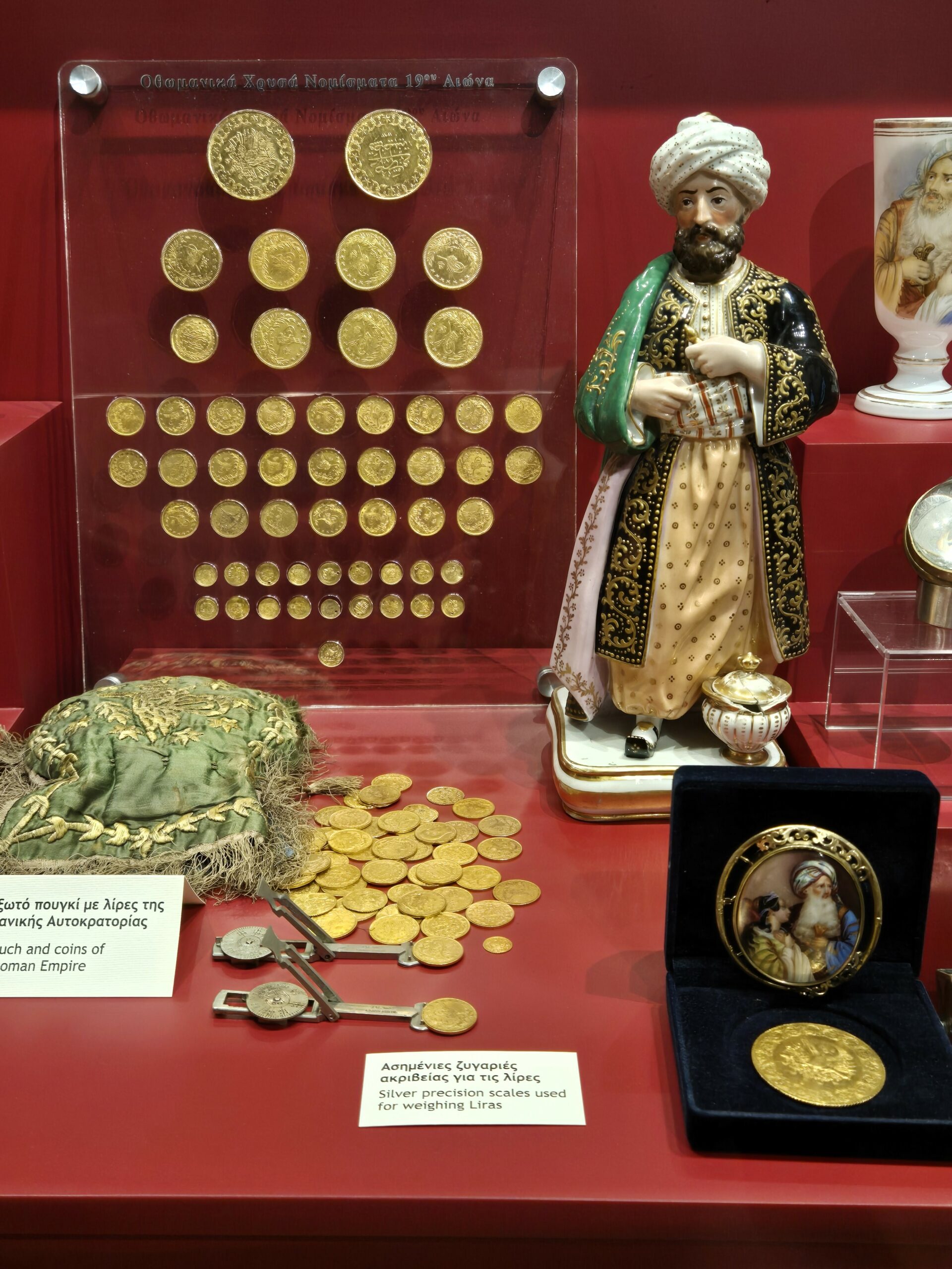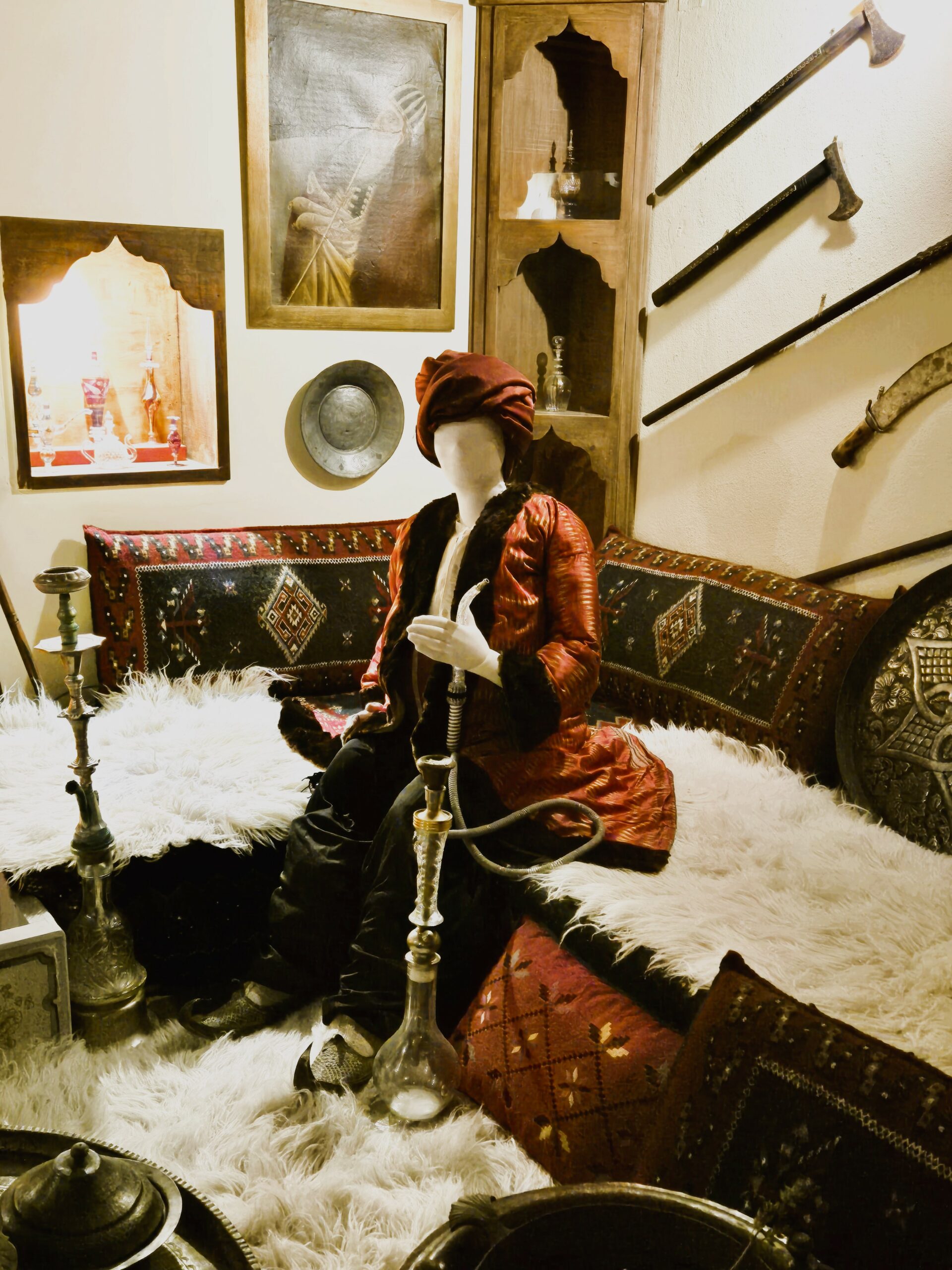 Ως μέρος αυτής της πραγματικής εξοχικής του κατοικίας βλέπουμε να αναπαρίσταται ένας χειμερινός οντάς, αλλά και να αναβιώνει η σκηνή που η κυρά Φροσύνη με 17 συντοπίτισσές της οδηγούνται στο δραματικό τους τέλος, παρατηρούμε τις περίτεχνες λεπτομέρειες αυθεντικών στολών των αξιωματούχων του Αλή Πασά αλλά και ενδύματα της τελευταίας συζύγου του, συγκρίνουμε ομοιότητες και διαφορές στην τεχνοτροπία ηπειρωτικών και οθωμανικών κοσμημάτων. Ανάμεσα σε αργυρές σκαλιστές ηπειρώτικες σπάθες και πιστόλες από επιχρυσωμένο ασήμι, ξυλόγλυπτες κασέλες και νομίσματα εποχής, ταπισερί και ζωγραφικούς πίνακες, μπακιρένια σκεύη και συλλογές κεραμικών 17ου-19ου αιώνα, αστικές και χωρικές φορεσιές της Ηπείρου και ασημένια στολίδια μαλλιών, όλοι στέκονται ιδιαίτερα σε δύο μοναδικά κειμήλια – και τα δύο προσωπικά αντικείμενα του λεγόμενου «Λέοντα των Ιωαννίνων»: το περίφημο μακρύ τσιμπούκι και το χρυσοποίκιλτο καριοφίλι του.