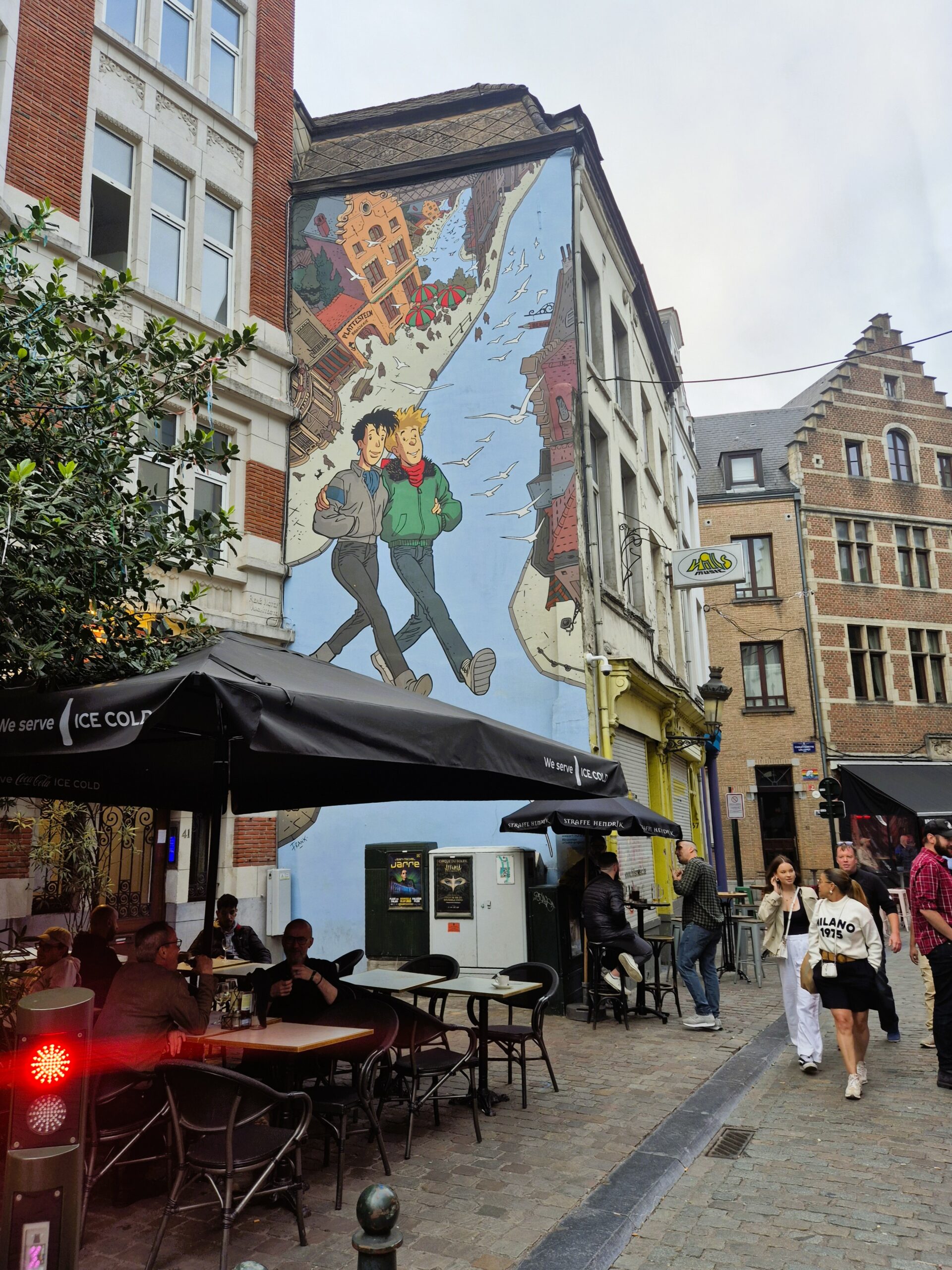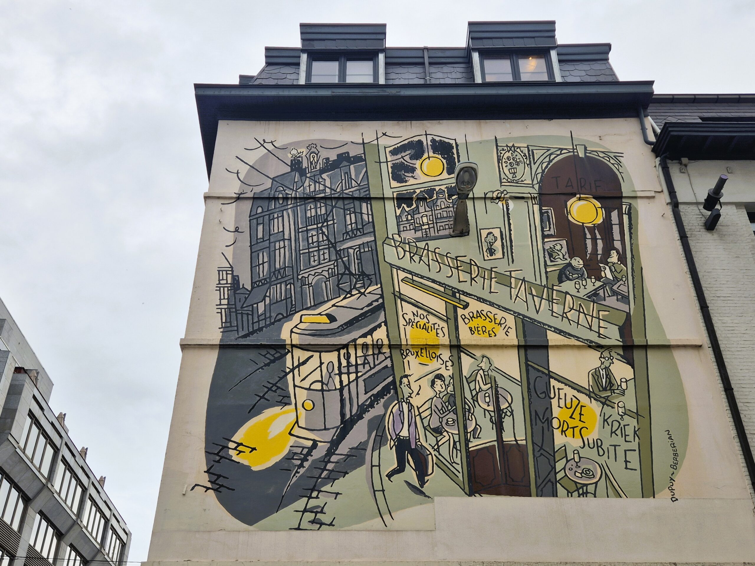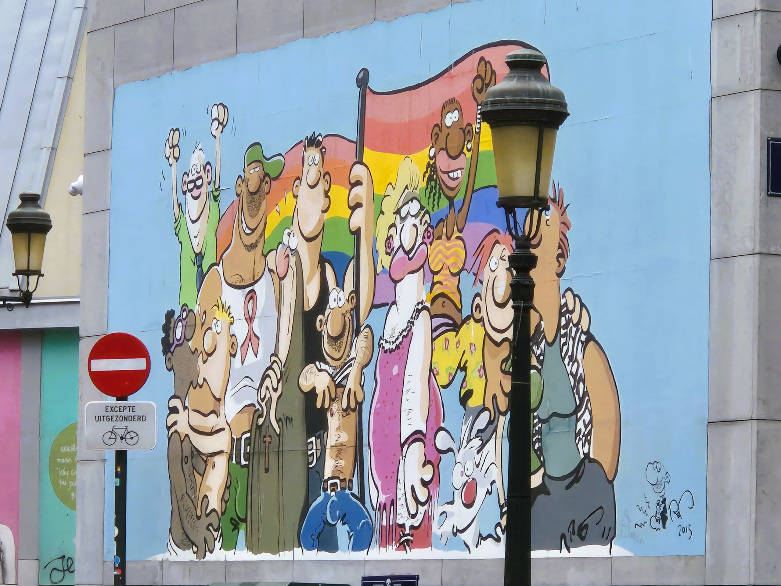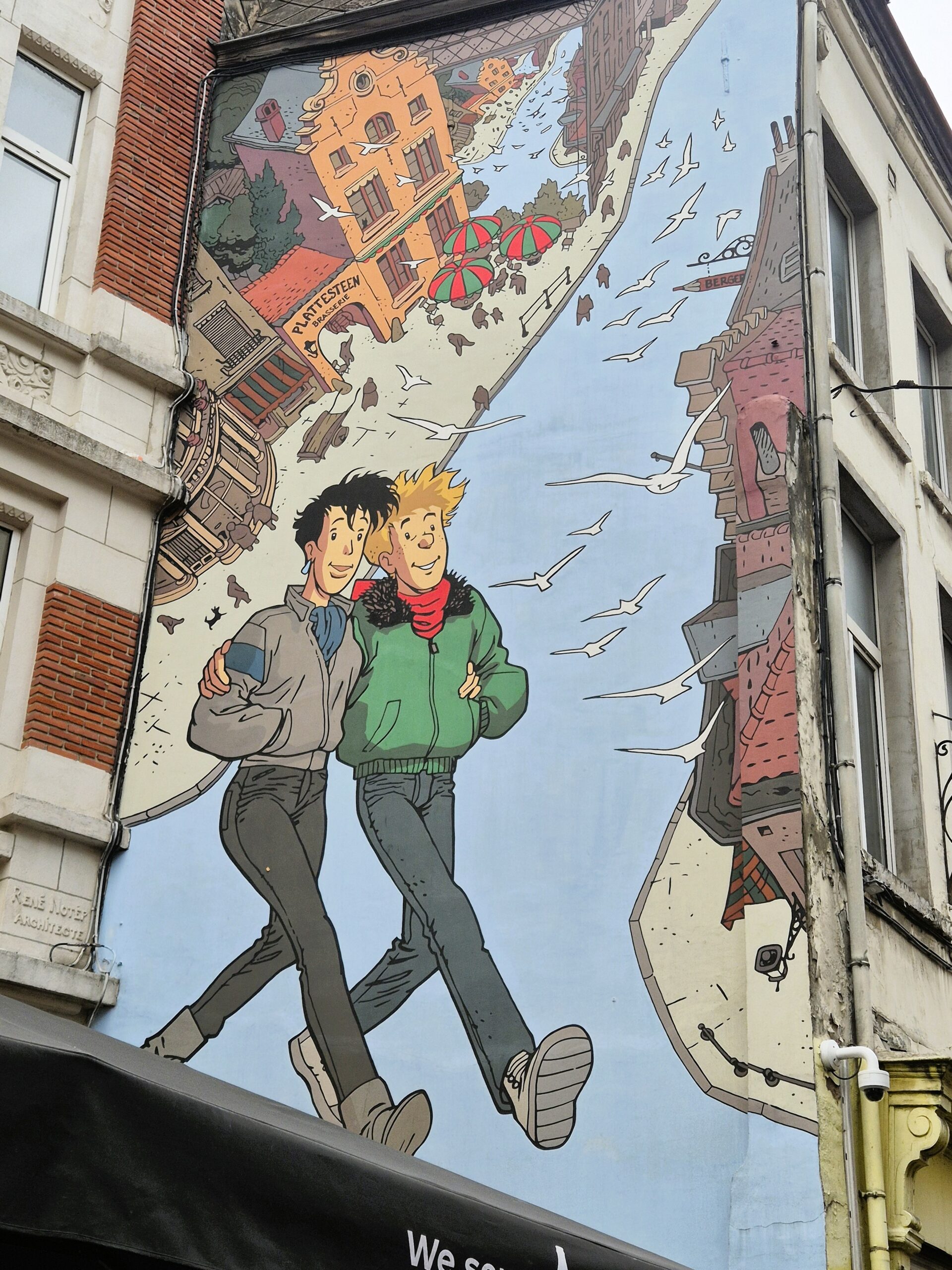 Φέροντας τον τίτλο της πρώτης τοιχογραφίας με έμπνευση από τον κόσμο των κόμικς, το Broussaille έχει κλείσει 34 χρόνια ζωής και το ανάλαφρο ύφος του συνεχίζει να αποτελεί σημείο αναφοράς της πολύβουης, γεμάτης καφέ και εστιατόρια γειτονιάς Saint-Jacques που απέχει ελάχιστα από την Grand Place. Υπογραμμίζοντας ότι βρισκόμαστε στο κέντρο της LGBTQ+ κοινότητας των Βρυξελλών, δύο νεαρά αγόρια απεικονίζονται να περπατούν αγκαλιά στους δρόμους της πόλης, με τα πουλιά γύρω τους να συμβολίζουν το πνεύμα ελευθερίας και ανεμελιάς που αποπνέει η περιοχή. (Rue du Marché au Charbon 41)