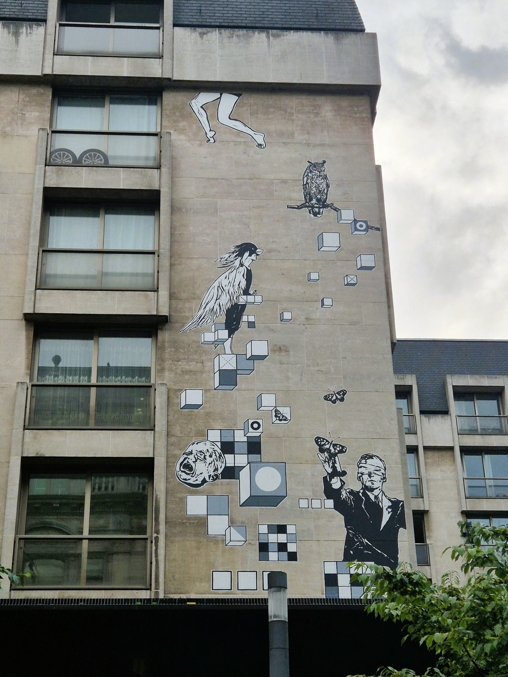 Για χάρη των Froud και Stouf είμαστε διατεθειμένοι να κατηφορίσουμε λίγο ακόμη, ως το σημείο που η Rue Philippe de Champagne συναντά τη λεωφόρο Maurice Lemmonier. Εδώ γινόμαστε για λίγο αδιάκριτοι κοιτάζοντας μέσα από τα υποτιθέμενα παράθυρα μιας τυπικής πολυκατοικίας, όπου οι μυημένοι καταρχήν θα αναγνωρίσουν τους δύο μικρούς μπλε σκύλους Froud και Stouf, που αρέσκονται να φιλοσοφούν επί παντός επιστητού. Στη συγκεκριμένη σκηνή, οι δύο ήρωες που αρχικά εμφανίστηκαν σε τηλεοπτική σειρά καρτούν και στη συνέχεια εκδόθηκαν ως κόμικ, κινδυνεύουν από μια πονηρή γάτα που μένει στον επάνω όροφο, ενώ κατά τα άλλα, μια ροκ μπάντα που κάνει πρόβες στο ρετιρέ τρελαίνει -με την καλή και την κακή έννοια- τους υπόλοιπους ενοίκους.