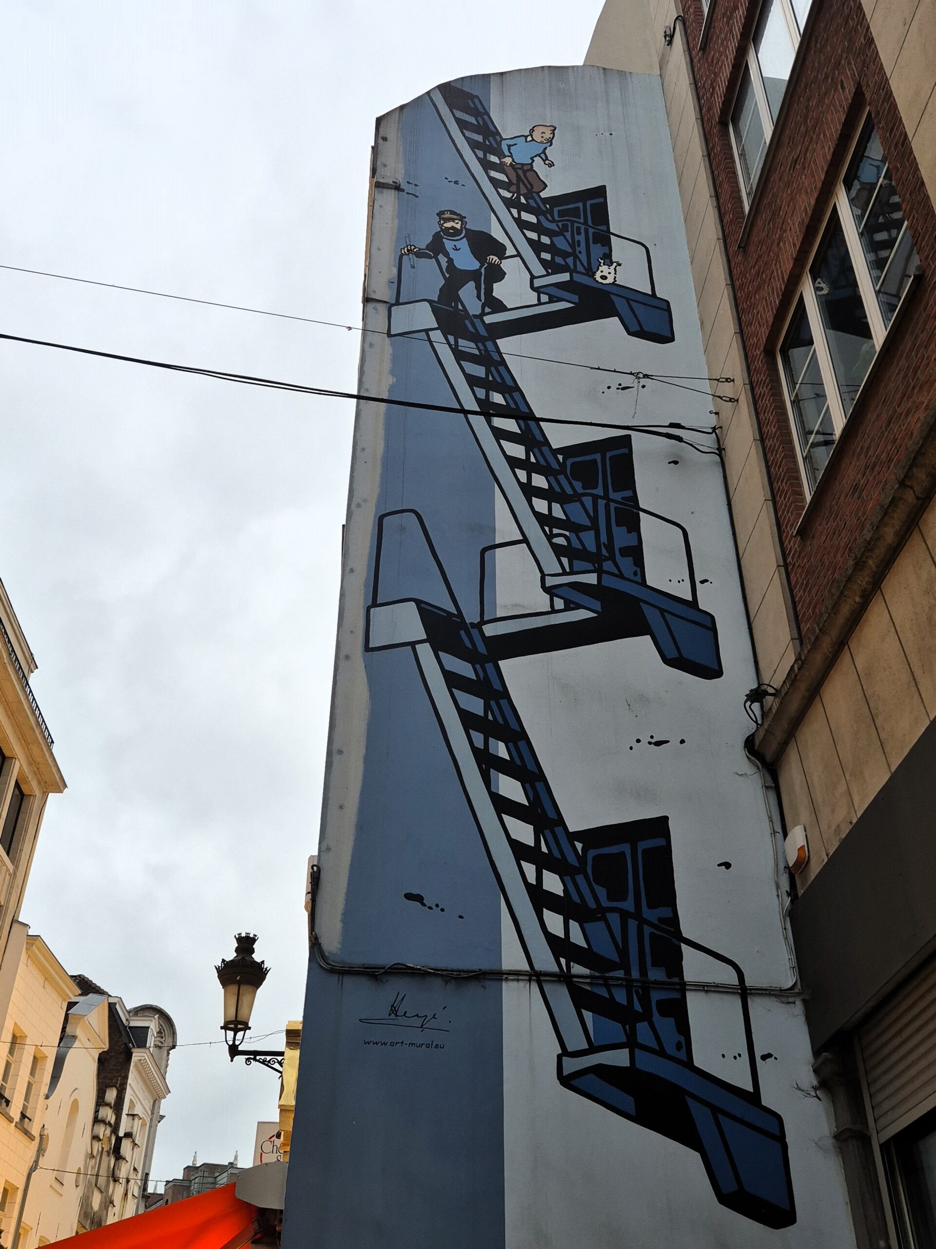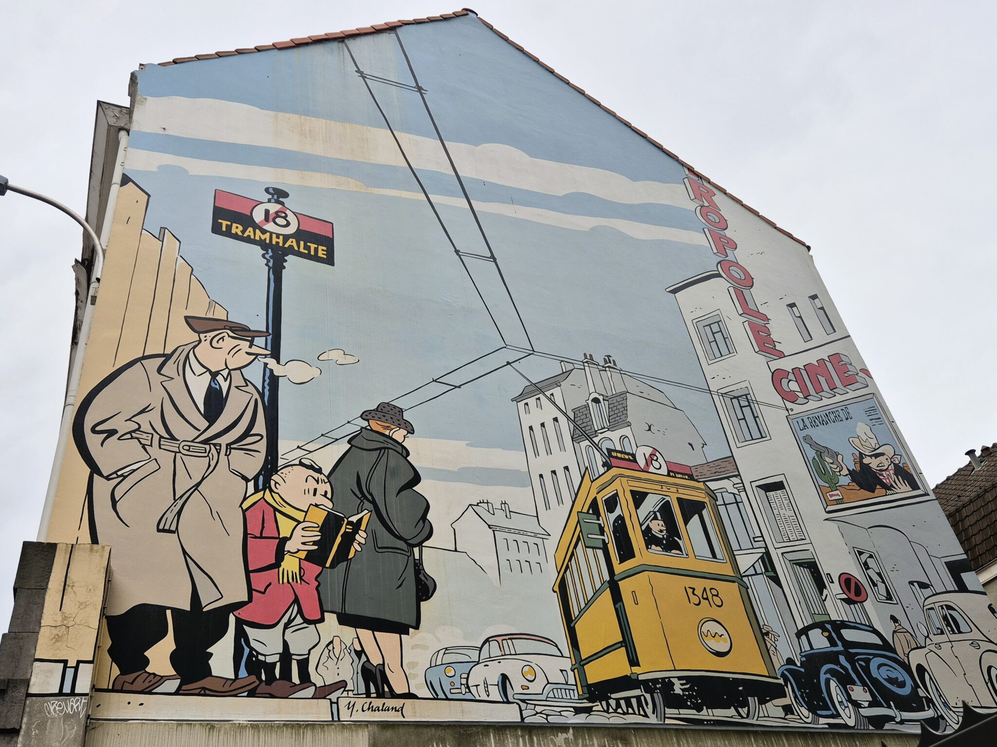 Μια ακόμη σκηνή δρόμου εκτυλίσσεται λίγο ανατολικότερα, φέρνοντάς μάς πρόσωπο με πρόσωπο με τον νεαρό Άλμπερτ, δημιούργημα του περίφημου Γάλλου καρτουνίστα Yves Chaland, του οποίου τα λιγοστά έργα πριν αποβιώσει πρόωρα, θεωρούνται συλλεκτικά. Φόρος τιμής στον ταλαντούχο καλλιτέχνη, η τοιχογραφία στη διεύθυνση Rue des Alexiens 49, αποδίδει επιτυχημένα την ατμόσφαιρα στις Βρυξέλλες του 1950 μέσα από λεπτομέρειες σαν το κίτρινο τραμ, τα παλιά αυτοκίνητα, το στυλ των ρούχων. Όσο για τον άτακτο, κατεργάρη, συχνά επαναστατικό και σκληρό Albert με το χαρακτηριστικό κόκκινο παλτό στη στάση του τραμ, πιθανόν ετοιμάζει κάποια από τις χοντροκομμένες φάρσες του – επινόηση του Chaland για να σατιρίσει τα υπερβολικά καθωσπρέπει κόμικς της εποχής του.