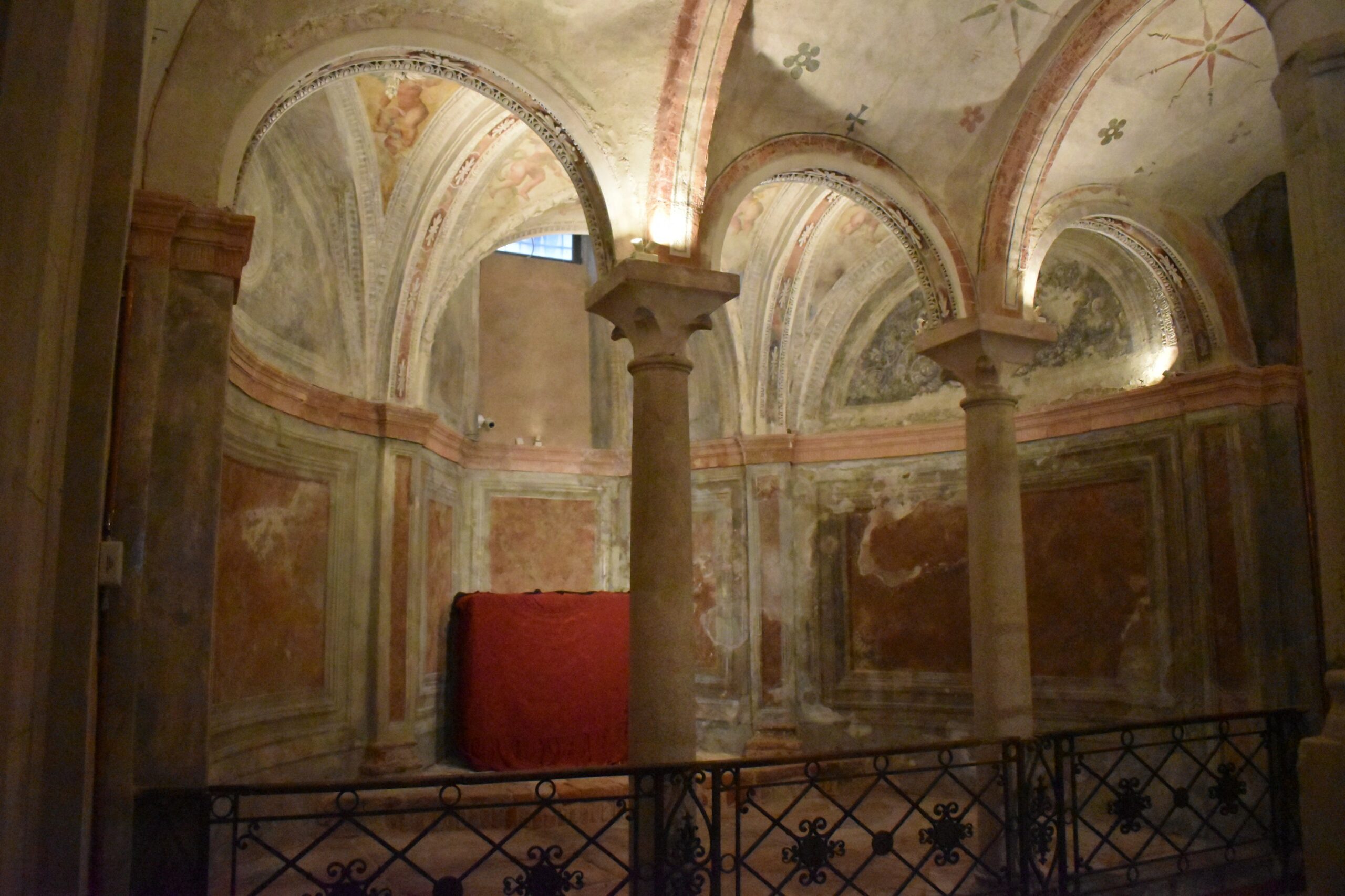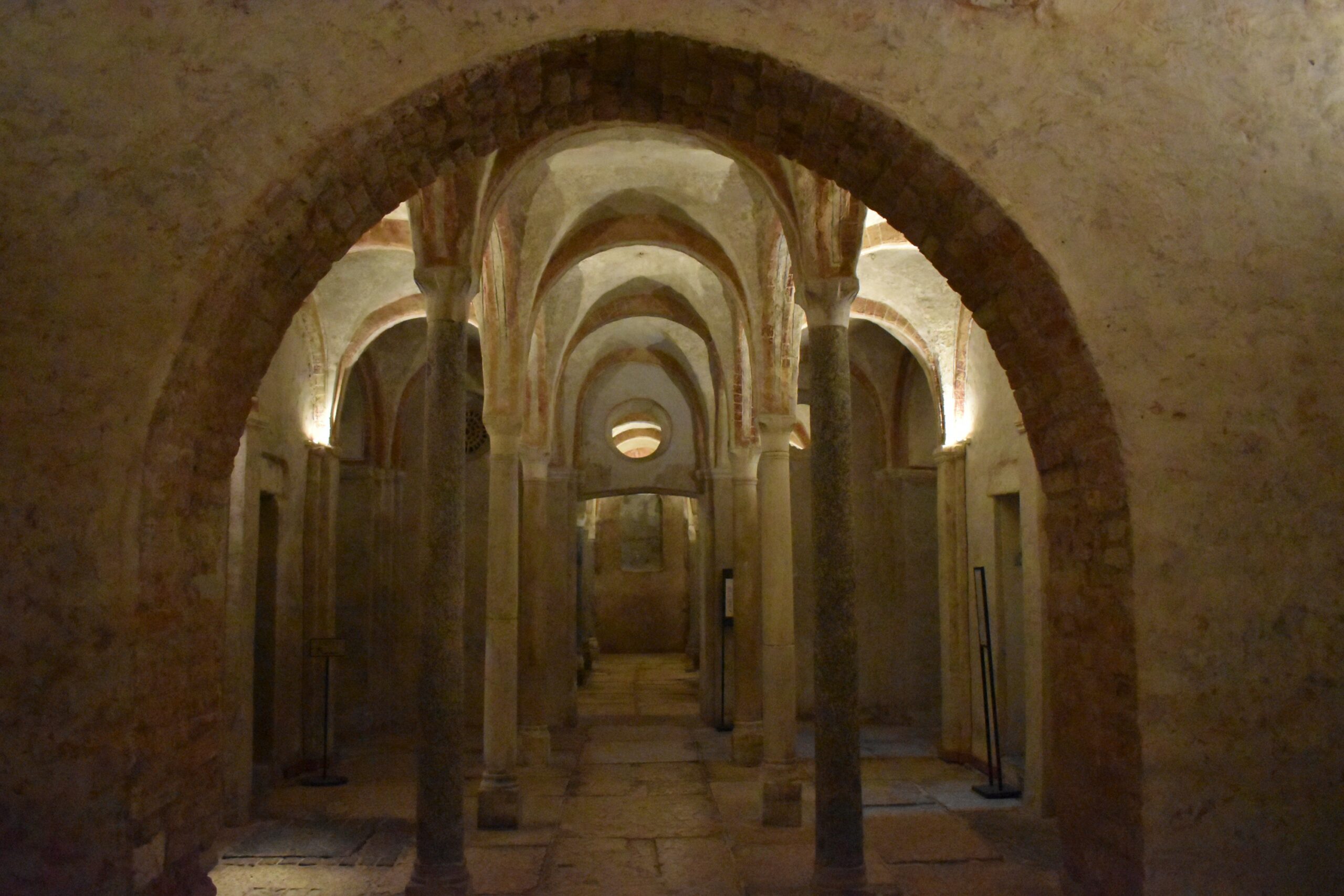 Αξίζει να κατεβείτε στους δαιδαλώδεις, θολωτούς χώρους όπου διατηρούνται κάποιες όμορφες τοιχογραφίες από την εποχή εκείνη, καθώς έτσι θα έχετε την ευκαιρία να δείτε και κάποια από τα αρχαιότερα τμήματα του Μιλάνου. Το δάπεδο αποτελείται από μεγάλα κομμάτια λευκής πέτρας από τη Βερόνα και στην ουσία δεν είναι παρά το λιθόστρωτο της αρχαίας ρωμαϊκής αγοράς του 4ου αιώνα, όπου λάμβαναν χώρα οι κύριες πολιτικές και θρησκευτικές δραστηριότητες. Αξίζει να σημειωθεί ότι η κρύπτη ξανάνοιξε για τους επισκέπτες το 2016, ύστερα από 50 χρόνια που παρέμενε κλειστή.