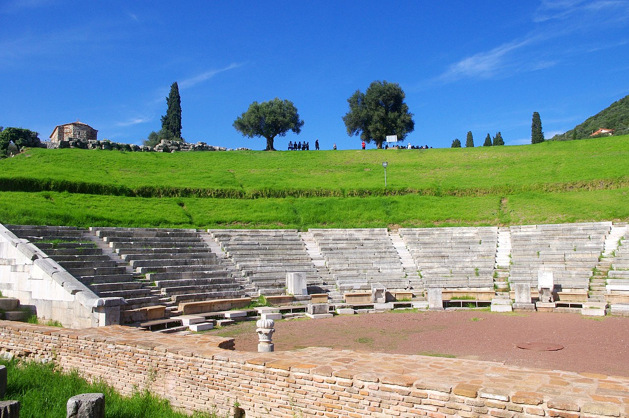 Στο αρχαιολογικό πάρκο των 400 στρεμμάτων βρίσκονται χιλιάδες κινητά ευρήματα, μνημεία, εσωτερικές διαδρομές, περιγραφές που δίνουν ενδιαφέρουσες πληροφορίες για ειδικό και μη κοινό, ακόμα και σκιά στα ελαιόδεντρα για τον επισκέπτη που θα θελήσει να περάσει πολύ ώρα εκεί για να εξερευνήσει αυτό τον πραγματικά πολύ μεγάλο αρχαιολογικό χώρο. Στο σημείο βρίσκεται, επίσης, ένα θέατρο στο οποίο κάποτε περίπου 10.000 θεατές παρακολουθούσαν ψυχαγωγικές παραστάσεις αλλά και πολιτικές συγκεντρώσεις. Χτίστηκε τον 3ο-2ο π.Χ. αιώνα και θεωρείται ένα από τα σημαντικότερα της ελληνικής αρχαιότητας. Σήμερα -όπως και το Στάδιο- χρησιμοποιείται για παραστάσεις, συναυλίες και άλλα πολιτιστικά δρώμενα. Είναι ένας τρόπος η πολύ σημαντική ανασκαφική δουλειά του Πέτρου Θέμελη να «συνομιλεί» με τη σημερινή εποχή.
