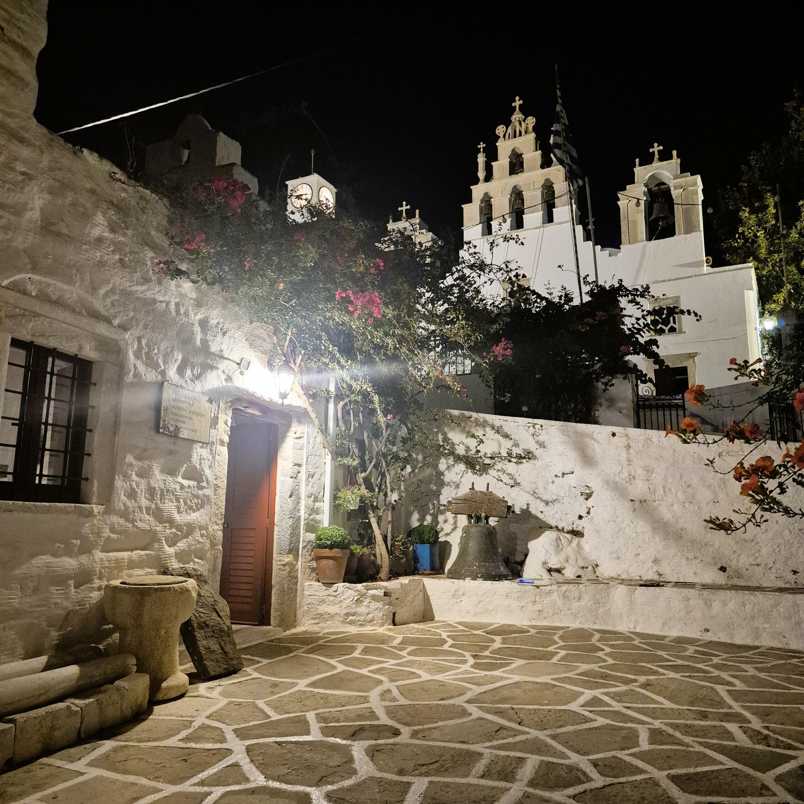 Και βέβαια, δεν λείπει η επιβλητική σιλουέτα της κεντρικής εκκλησίας του χωριού, της πανέμορφης Παναγίας της Φιλωτίτισσας, αφιερωμένης στην Κοίμηση της Θεοτόκου και επίκεντρο πανηγυρικών εορτασμών τον Δεκαπενταύγουστο, που κρατούν έως και τρεις μέρες με τη συμμετοχή και τη συρροή επισκεπτών από ολόκληρη τη Νάξο. Θα τη συναντήσουμε ανηφορίζοντας από την κεντρική «πλατεία της Γέφυρας» το φιδωτό σοκάκι που οδηγεί στην «πλατεία του Λαχαναριού». Το παράξενο όνομα οφείλεται στον ενετικό λαχανόκηπο που υπήρχε στη θέση της πλατείας και της εκκλησίας, η οποία εγκαινιάστηκε στην αρχή του 19ου αιώνα, έχοντας διανύσει πάνω από δύο αιώνες ιστορίας. Και ήταν, σύμφωνα με τις αφηγήσεις των Φιλωτιτών, η τελευταία Φραγκοπούλα της περιοχής, η ανιψιά του φεουδάρχη Barozzi, εκείνη που έκανε δωρεά τον λαχανόκηπο, παραχωρώντας τον χώρο όπου χτίστηκε και η εκκλησία αλλά και τα δύο ελαιοτριβεία του Φιλωτίου που λειτούργησαν ως τη δεκαετία του 1940.