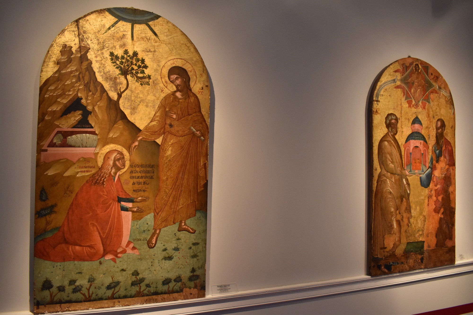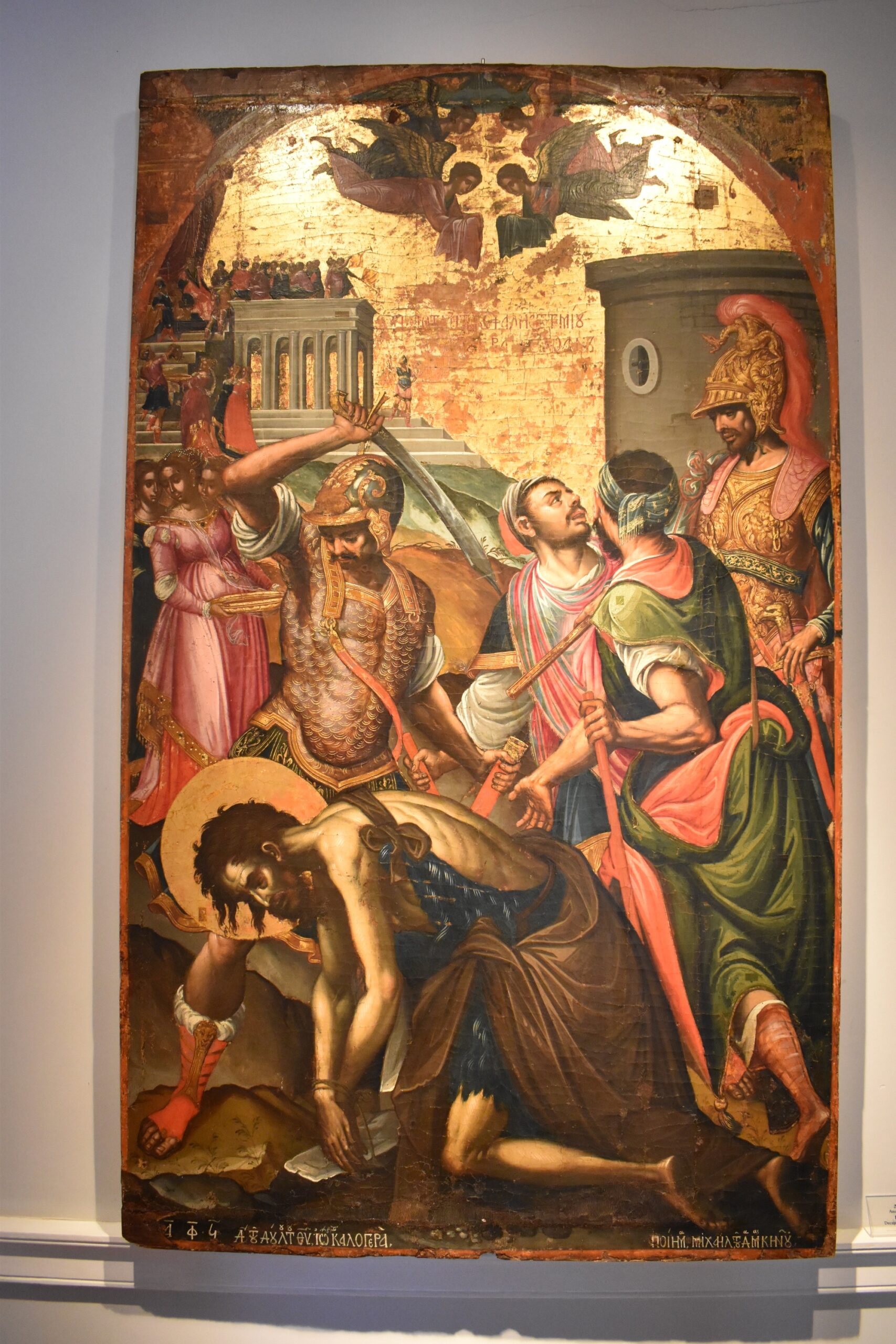 Το καλλιτεχνικό ταξίδι στις 9 αίθουσες της πινακοθήκης ξεκινά τον 16ο αιώνα, όταν πολλοί Κρητικοί ζωγράφοι αναζήτησαν καταφύγιο από το νησί τους, που βρισκόταν υπό Οθωμανική κυριαρχία, στην Ενετοκρατούμενη Κέρκυρα. Οι καλλιτέχνες αυτοί, εκπρόσωποι της Κρητικής Σχολής, εργάστηκαν στην Κέρκυρα και επηρέασαν τους Κερκυραίους καλλιτέχνες τόσο ως προς τη θρησκευτικού περιεχομένου θεματολογία, όσο και ως προς τη Βυζαντινή τεχνοτροπία που εφάρμοζαν. Ωστόσο, οι Κερκυραίοι δημιουργοί καθιέρωσαν το δικό τους στυλ, συνδυάζοντας την παραδοσιακή Βυζαντινή εικονογραφία και χαρακτηριστικά της δυτικής τέχνης. Στην πρώτη αίθουσα της πινακοθήκης, σε έργα θρησκευτικού περιεχομένου, όπως το «Λιθοβολισμός του Αγ. Στεφάνου» από τον σπουδαίο Κρητικό ζωγράφο Μιχαήλ Δαμασκηνό και το «Μη μου άπτου» του Εμμανουήλ Λαμπάρδου, μπορούμε ευδιάκριτα να παρατηρήσουμε αυτή τις διαφορές στις τάσεις και την αισθητική.
