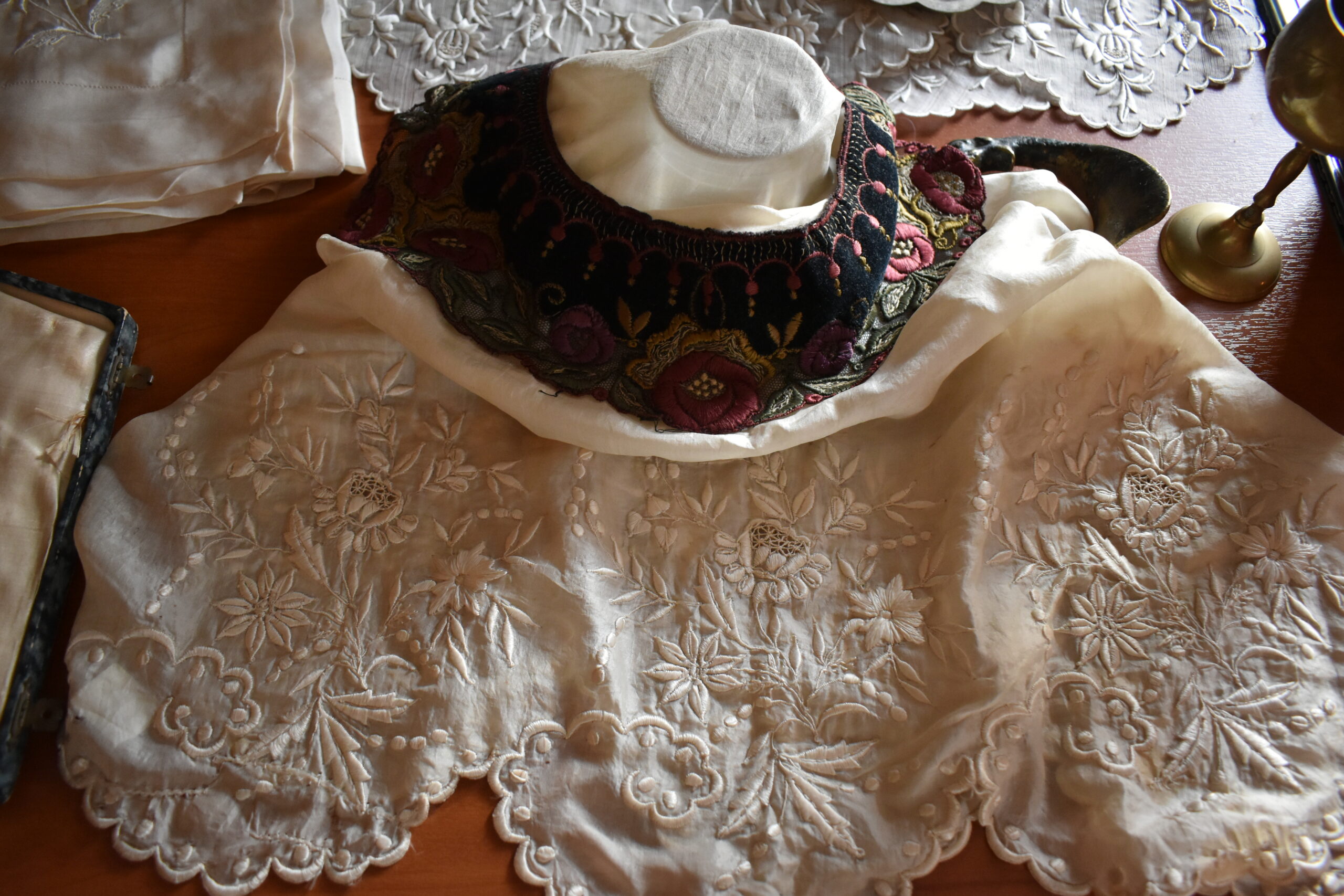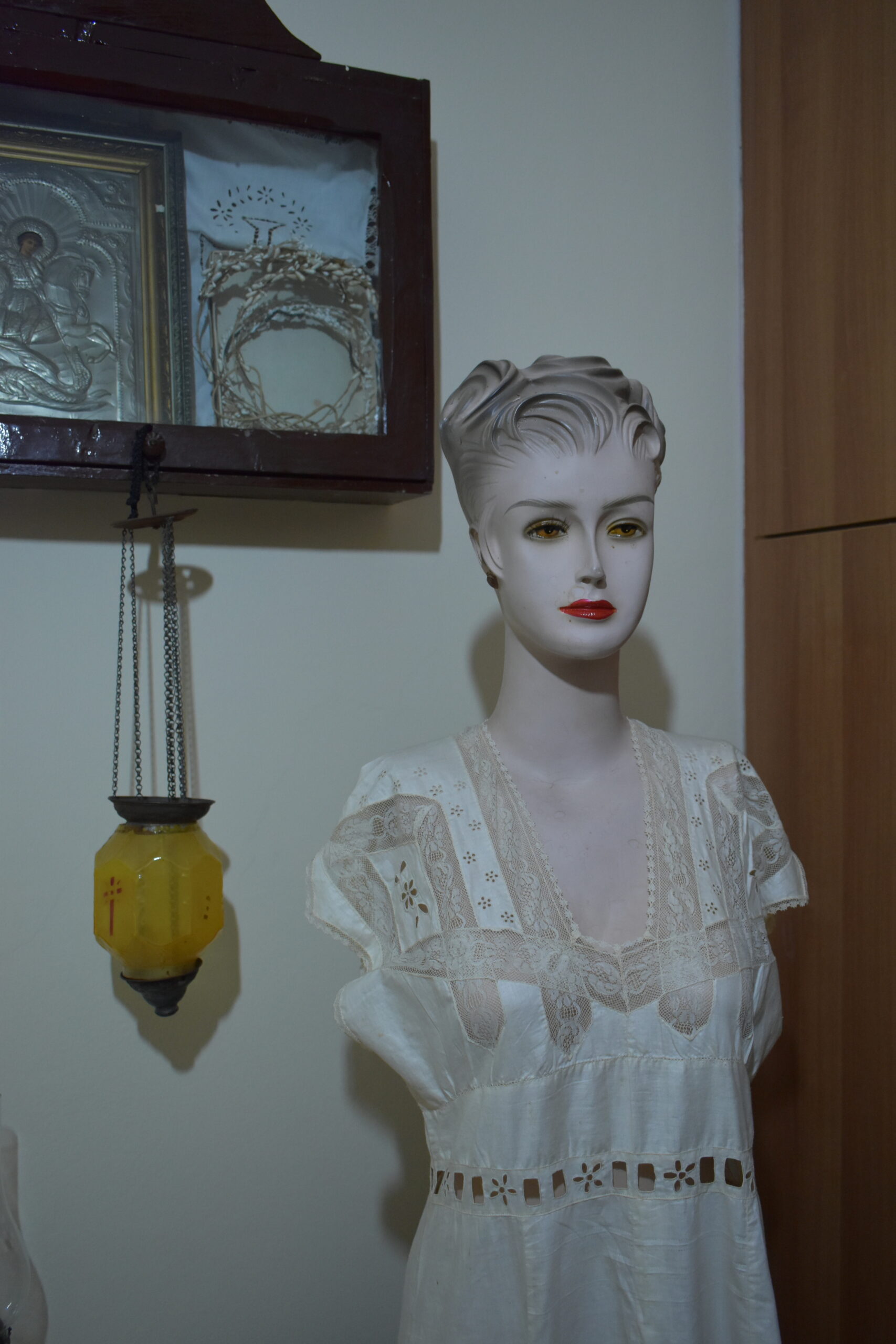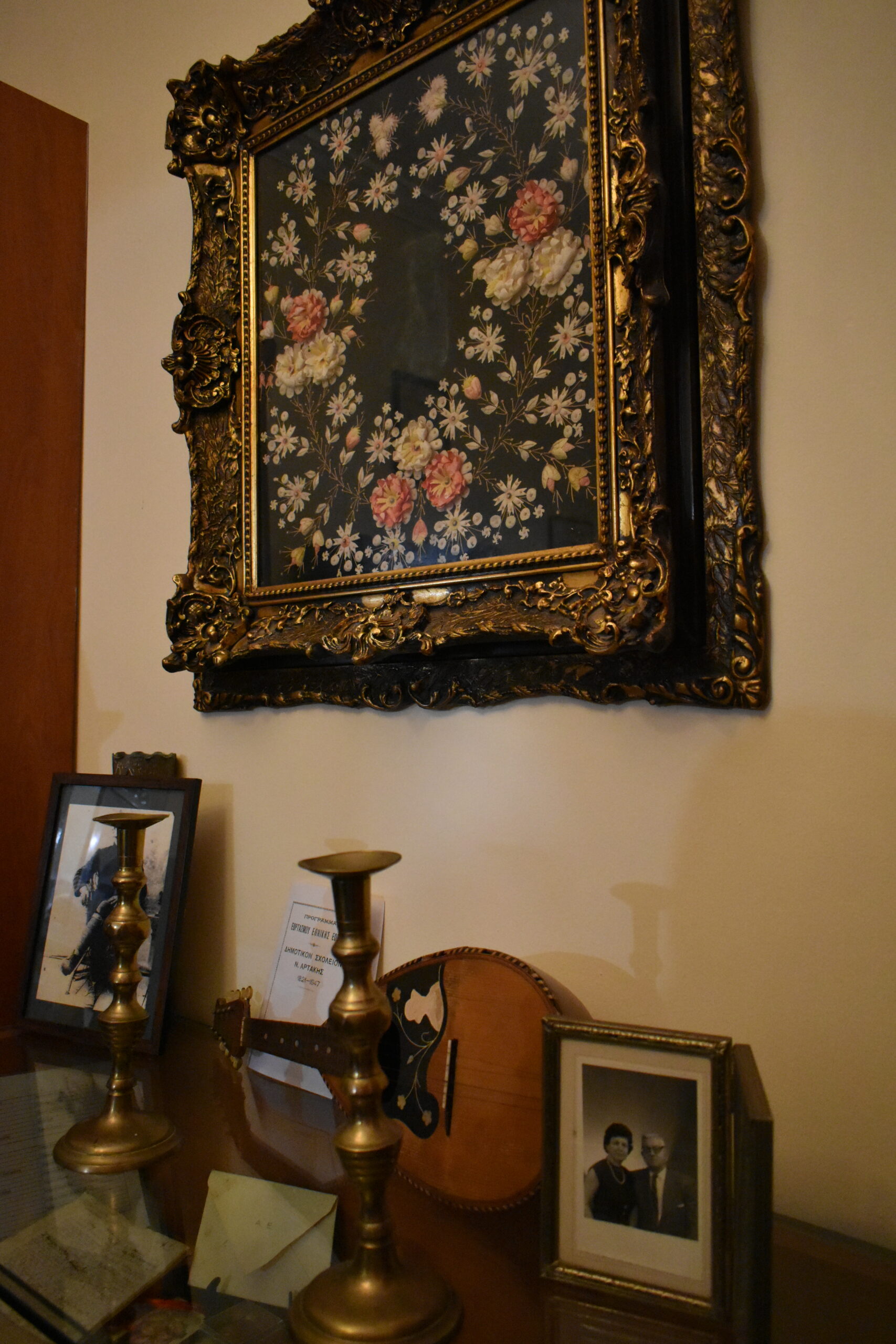 Από δωμάτιο σε δωμάτιο, ο επισκέπτης μπορεί να παρατηρήσει τις λεπτομέρειες ενός αυθεντικού δεύτερου νυφικού ενδύματος, που προκαλεί εντύπωση με το ασυνήθιστο σκούρο χρώμα του και τις ευρωπαϊκές επιρροές στο στυλ του, ένα γαμπριάτικο ζωνάρι και ένα ζευγάρι κεντητές παντόφλες που κατά το έθιμο προσφέρονταν στο μέλλοντα σύζυγο, λεπτοδουλεμένους δαντελένιους γιακάδες, μωρουδιακά ρούχα, ακόμη κι ένα ιερατικό άμφιο. Στην τραπεζαρία με τις ασπρόμαυρες φωτογραφίες και τα βιβλία, τα πορσελάνινα σερβίτσια μοιάζουν έτοιμα να τρατάρουν τους επισκέπτες, ένα Κωνσταντινοπολίτικο ούτι διατηρείται σε άψογη κατάσταση, ενώ το πιο σπάνιο έκθεμα είναι ένα κοριτσίστικο λεύκωμα του 1906 που εντυπωσιάζει με την καλλιγραφία του.