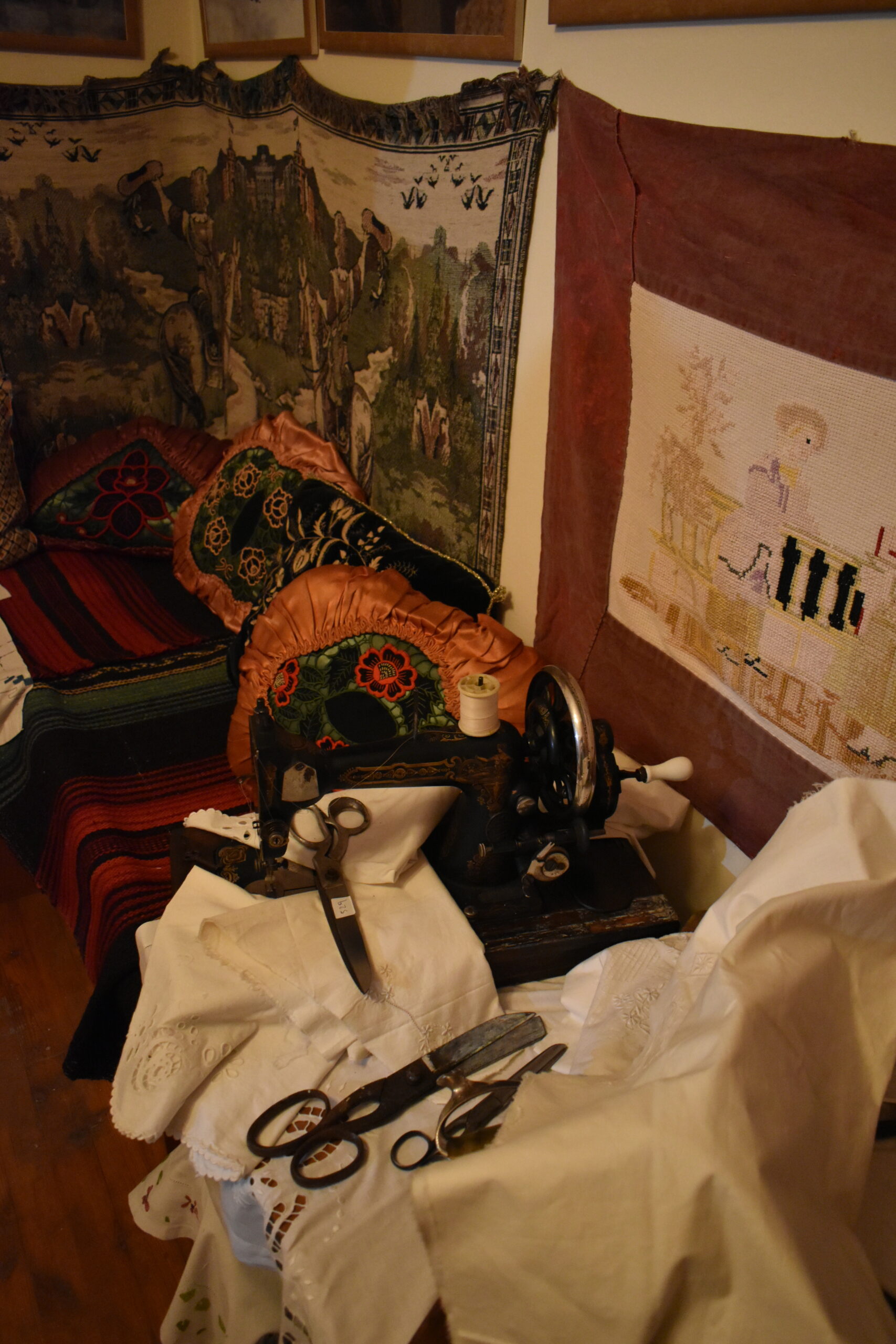 Περνώντας στο υπνοδωμάτιο, δίπλα στο καλοκαιρινό νυφικό κρεβάτι θα δείτε μια παλιά κούνια μωρού και υπέροχα κεντημένα στο χέρι νυχτικά και εσώρουχα εποχής. Η οικογενειακή ραπτομηχανή βρίσκεται στο ζεστό καθιστικό με το μαγκάλι και τις πολύχρωμες υφαντές μαξιλάρες, αλλά αυτό που τραβά το βλέμμα είναι το μεγάλο καλάθι με τα σύνεργα ύφανσης του μεταξιού. Εξάλλου η παραγωγή μεταξιού ήταν προσοδοφόρο επάγγελμα για τους Κυζικινούς και την τέχνη καλλιέργειας των μεταξοσκωλήκων και της ύφανσης έφεραν μαζί τους στην Εύβοια.