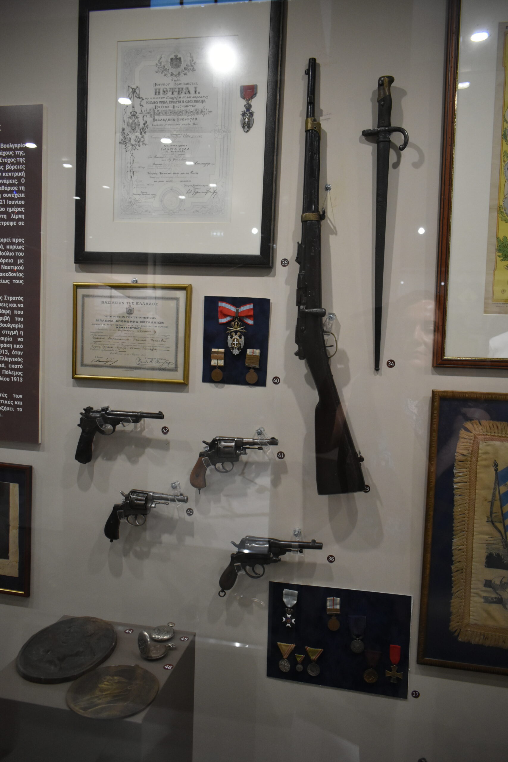 Την περίοδο του Καποδίστρια και του Όθωνα διαδέχονται στολές αγωνιστών από τις Κρητικές Επαναστάσεις και τον Μακεδονικό Αγώνα, ενώ μερικές ακόμη στολές πλαισιώνονται από λάφυρα όπως σημαίες, τυφέκια και ξίφη αξιωματικών από τις αντίπαλες δυνάμεις στο κομμάτι της έκθεσης που αφιερώνεται στους Βαλκανικούς Πολέμους. Τα μετάλλια όσων συμμετείχαν στον Α΄ Παγκόσμιο Πόλεμο παρουσιάζουν μεγάλο ενδιαφέρον, αλλά αυτό που σίγουρα συγκινεί είναι οι αυθεντικές κάρτες και φωτογραφίες με αφιερώσεις – κυρίως από τη Γαλλία – που λάμβαναν από αγαπημένα τους πρόσωπα οι στρατιώτες στο μέτωπο. Και η Μικρασιατική Εκστρατεία έχει τη δική της εκπροσώπηση με στολές αξιωματικών, αλλά αυτή που τραβά το βλέμμα και ξεχωρίζει είναι εκείνη με το χαρακτηριστικό κιλτ ενός Σκωτσέζου στρατιώτη των συμμαχικών δυνάμεων από τον Β’ Παγκόσμιο Πόλεμο. Εκτίθεται μαζί με άλλες επώνυμες στολές που ανήκαν σε αγωνιστές του μετώπου της Πίνδου, τους Συνταγματάρχη Δαβάκη και Αντισυνταγματάρχη Μισύρη, και εκείνη του Ιωάννη Μεταξά.