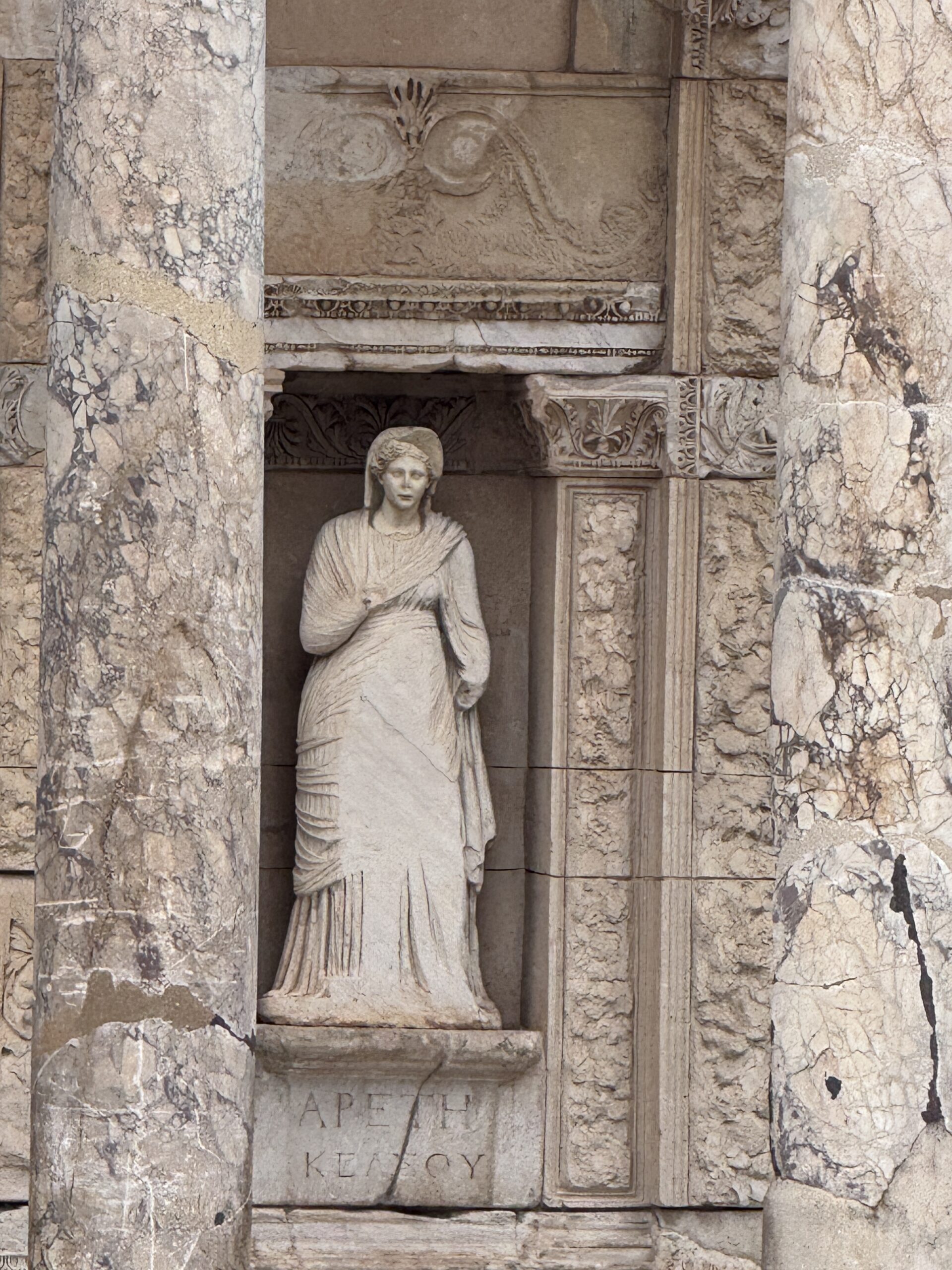 Ίσως το πιο εμβληματικό κτίριο της Εφέσου, αυτή η μεγαλοπρεπής πρόσοψη χτίστηκε το 114-117 μ.Χ. τόσο ως βιβλιοθήκη όσο και ως μνημειώδης τάφος για τον Κέλσο, τον κυβερνήτη της Ρωμαϊκής Ασίας. Ο διώροφος σχεδιασμός της με κομψές κολώνες και εξαιρετικά γλυπτά αντιπροσωπεύει το αποκορύφωμα της ρωμαϊκής αρχιτεκτονικής.