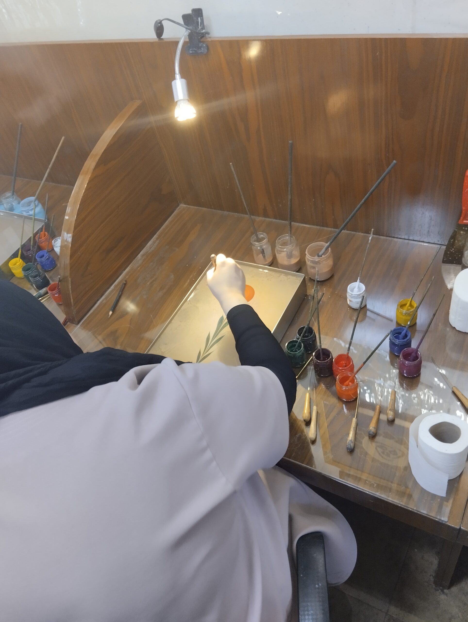 Η κυρία Ραμπία μας υποδέχεται στην είσοδο του Πολιτιστικού Κέντρου Irfan. Με ένα ελαφρύ χαμόγελο, κουνάει το χέρι της και μας λέει «Buyurun» καλωσορίζοντάς μας στο μικρό ατελιέ της στο ίδιο κτήριο. Γεμάτο ξύλινους ατομικούς πάγκους και πρωτότυπα έργα με οθωμανικά και ισλαμικά μοτίβα, το μικρό εργαστήριο είναι ένα ολάνοιχτο παράθυρο στον κόσμο της ζωγραφικής της Ανατολής και σίγουρα ο χρόνος που θα περάσουμε εδώ δεν θα πάει χαμένος.
