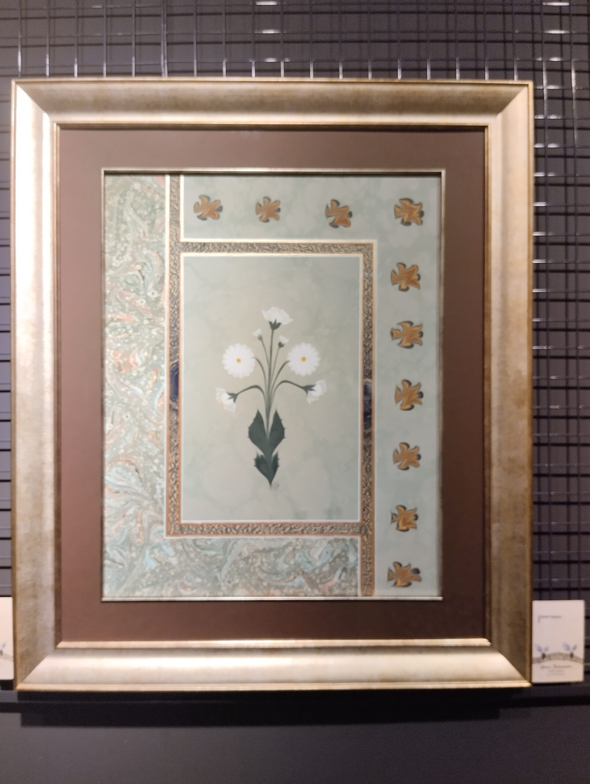 Μέσα σε λιγότερο από δέκα λεπτά, το γαρύφαλλο μας είναι έτοιμο και το αφήνουμε να στεγνώσει στο ειδικό δίχτυ μαζί με άλλα σχέδια που είχε κάνει νωρίτερα η ίδια. Μετά τα αρχικά αναφωνήματα και χειροκροτήματα, η κυρία Ραμπία μας λέει ευγενικά να περάσουμε ξανά σε λίγα λεπτά, ώστε να ετοιμάσει τον χώρο, για να δοκιμάσουμε κι εμείς με τη σειρά μας την τύχη μας στο υγρό καλούπι που η ίδια λίγα λεπτά πριν έκανε τόσο εύκολα ένα φανταστικό σχέδιο.