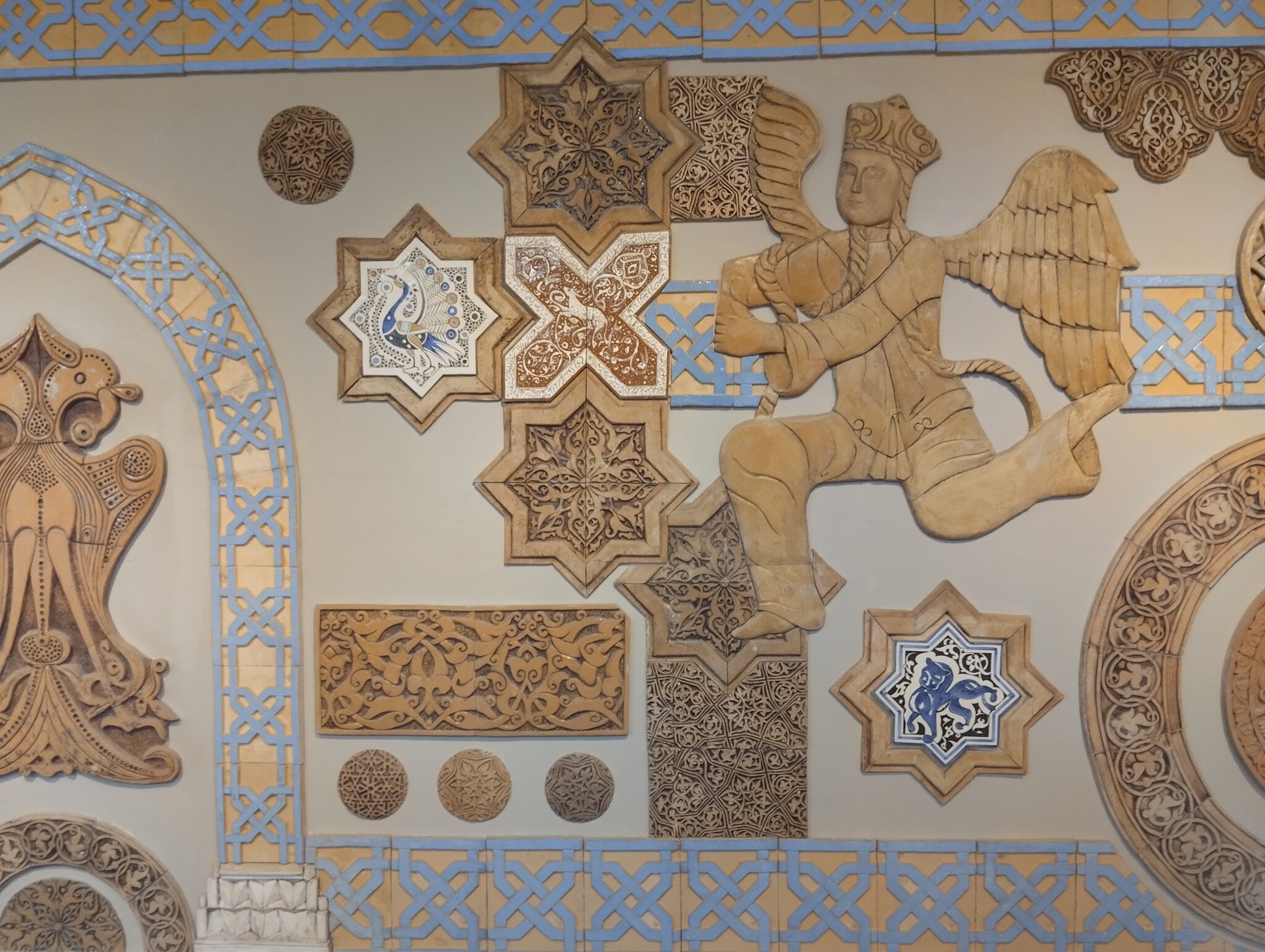 Περπατάμε στους διαδρόμους του πολιτιστικού κέντρου και παραδίπλα στο μεγάλο αμφιθέατρο με τον αντίλαλο του ρεμπάμπ να ακούγεται στο βάθος, βρίσκουμε σφηνωμένο ένα ακόμη μικρό εργαστήριο που κάνει μπαμ από μακριά χάρη στη γεμάτη ζωγραφιστά κεραμικά βιτρίνα του. Αν και την επίσημη πρωτιά στα ζωγραφιστά κεραμικά την κατέχει δικαιωματικά η μικρή πόλη Ιζνίκ κοντά στην Προύσα, φαίνεται ότι και το Ικόνιο έχει το δικό του μερίδιο στην διάσημη τέχνη της Ανατολής που άκμασε και στην Ελλάδα, αλλά έσβησε τελειωτικά στον βωμό του αστικού εκσυγχρονισμού. Στο εσωτερικό του μικρού εργαστηρίου, ένας ηλικιωμένος κύριος ζωγραφίζει με πολλή προσοχή ένα τεράστιο κεραμικό πιάτο σχεδιάζοντας με μολύβι ατελείωτα φυτικά- γραμμικά μοτίβα που λίγα λεπτά αργότερα θα γεμίσει με μπλε μπογιά.