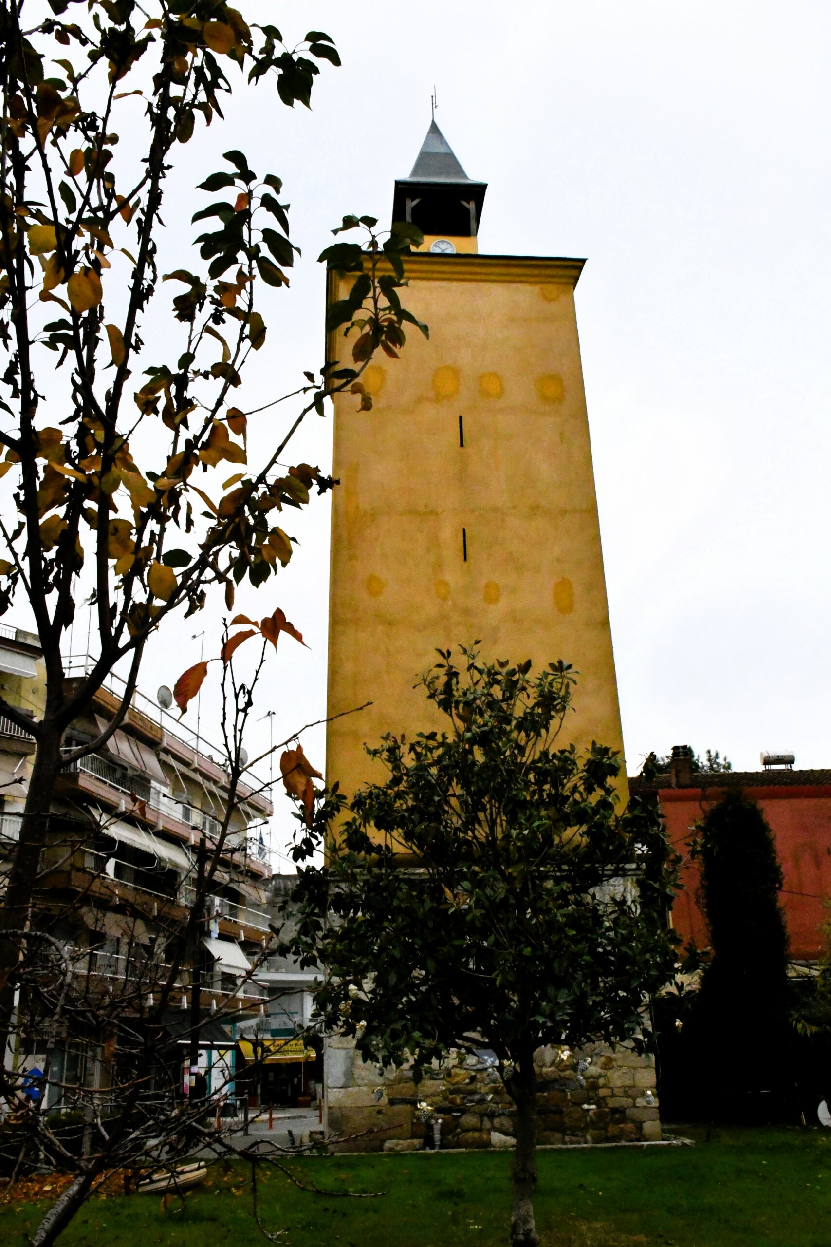Πιο πάνω από το Μαυσωλείο δεσπόζει το σήμα κατατεθέν της πόλης. Ο Πύργος Ρολογιού που χτίστηκε τον 18ο αιώνα από τον Σερίφ Αχμέτ Εβρενόσογλου, απόγονο του Γαζή Εβρενός, και ξεχωρίζει για την ιστορική και αρχιτεκτονική αξία του. Είναι τετράγωνης κάτοψης και αποτελείται από τρία κύρια τμήματα: τη βάση, τον κορμό και τη στέγη. Η βάση είναι λιθόκτιστη, ενώ ο κορμός είναι πλινθόκτιστος και επιχρισμένος με κονίαμα, προσδίδοντας στο κτίριο την ιδιαίτερη εμφάνισή του. Η στέγη του πύργου διαμορφώνεται σε ξύλινο, κωνικό πυργίσκο, μέσα στον οποίο βρίσκονταν οι δύο καμπάνες του ρολογιού.