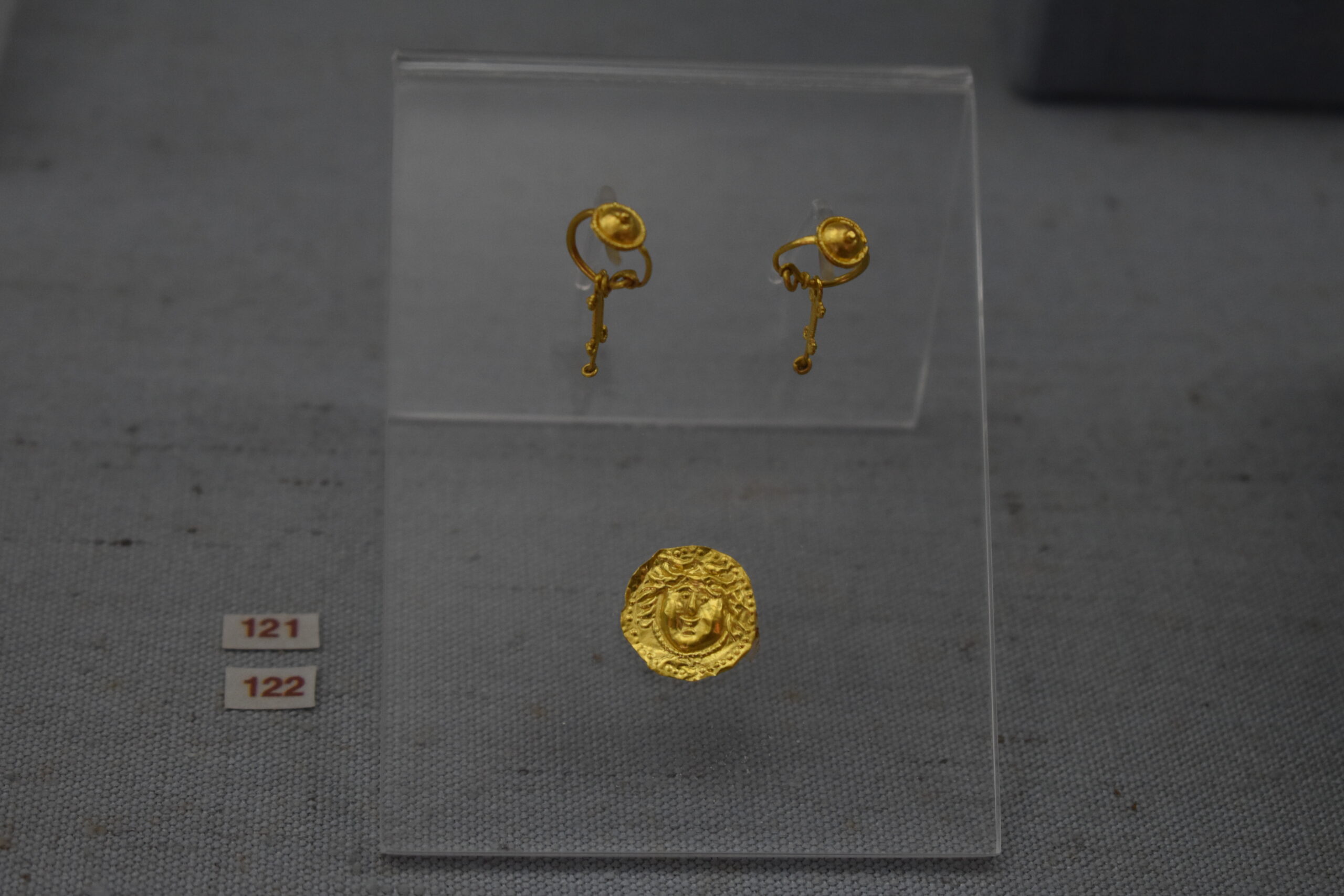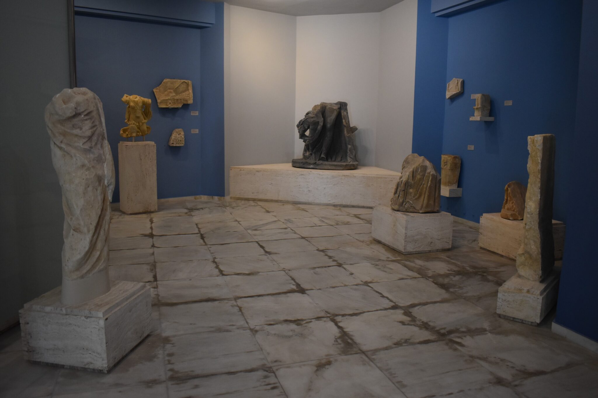 Μια πλούσια συλλογή από επιγραφές, κιονόκρανα, αναθηματικά ανάγλυφα, μαρμάρινα εδώλια και αγαλματίδια, κοσμήματα και ένας ιδιαίτερα ενδιαφέρων εμπορικός αμφορέας με χαραγμένο σε κορινθιακή αλφάβητο το όνομα του ιδιοκτήτη, εκτίθενται στην πρώτη αίθουσα του μικρού αλλά περιεκτικού μουσείου.