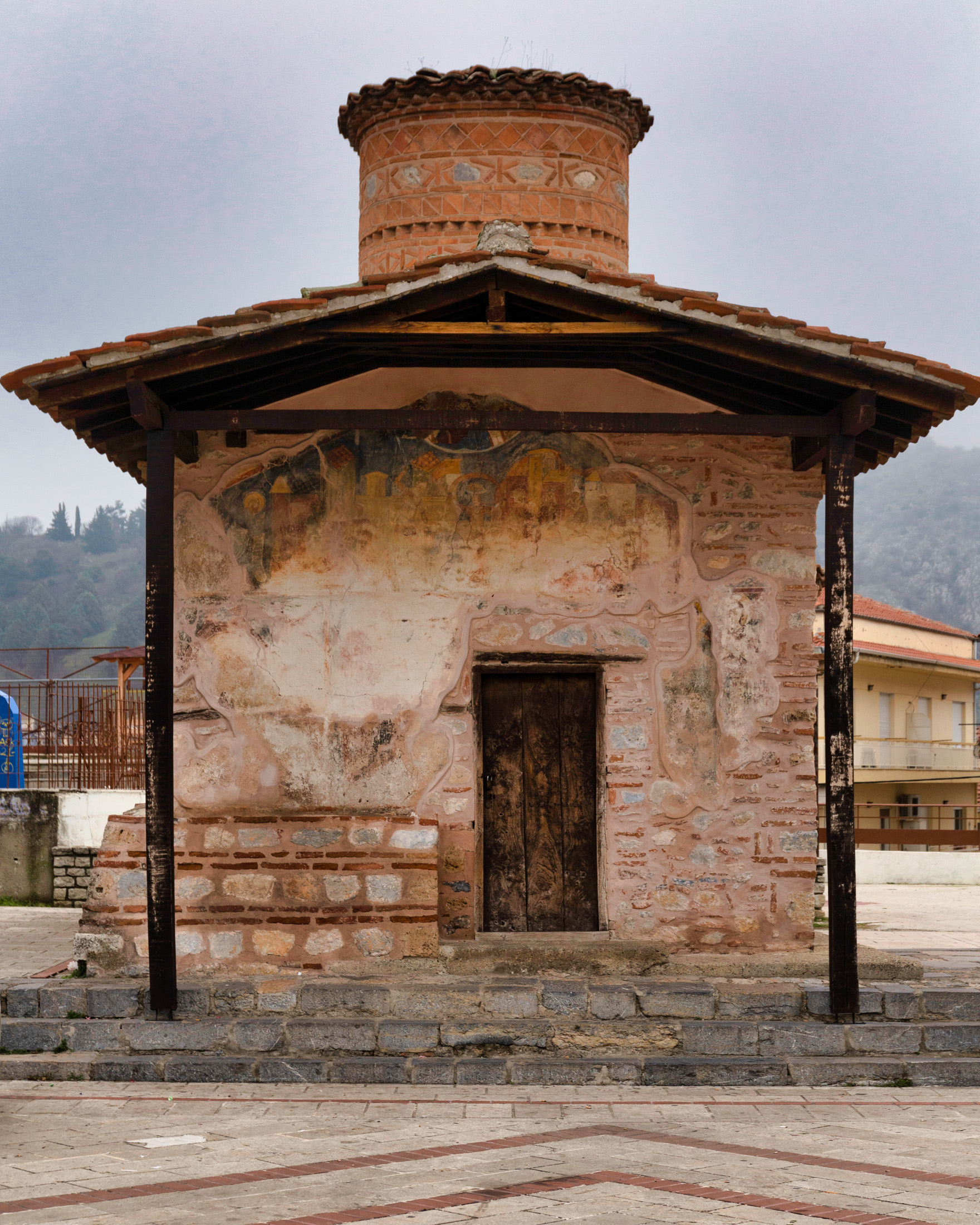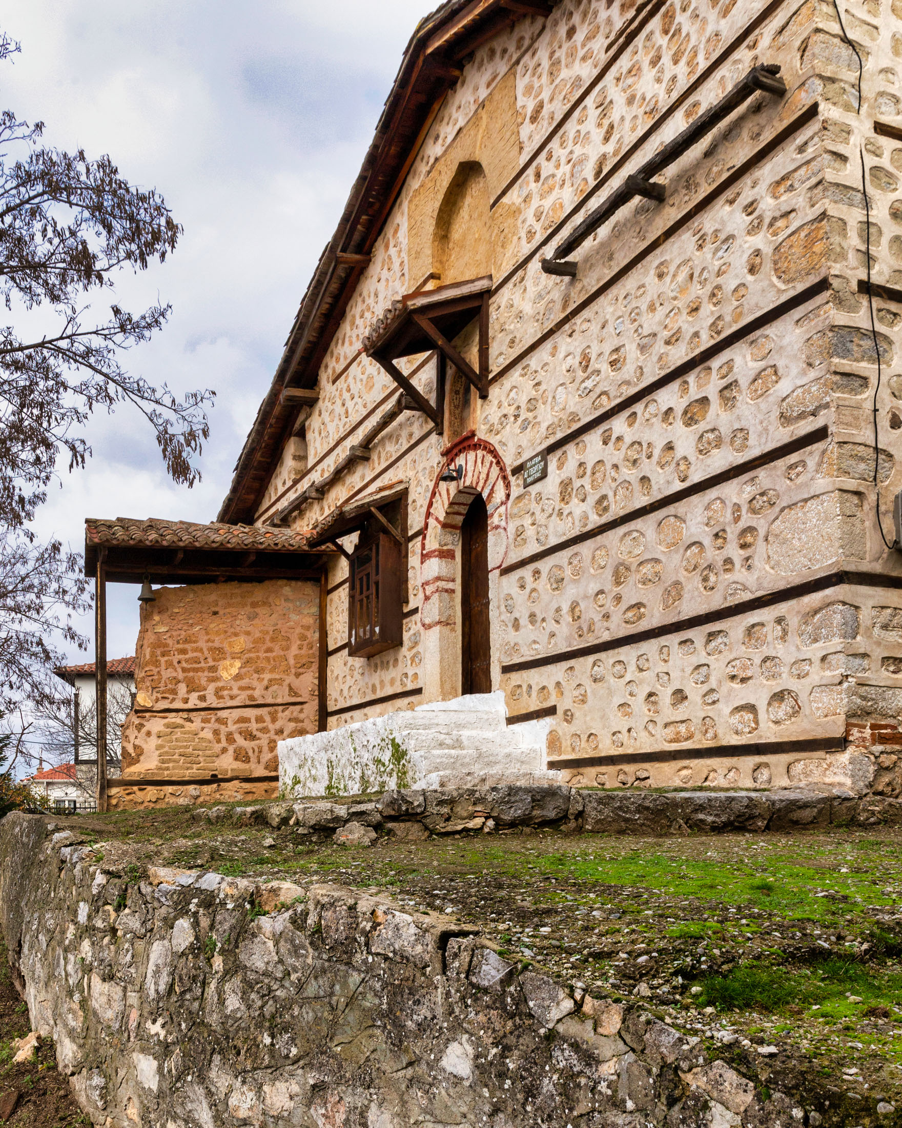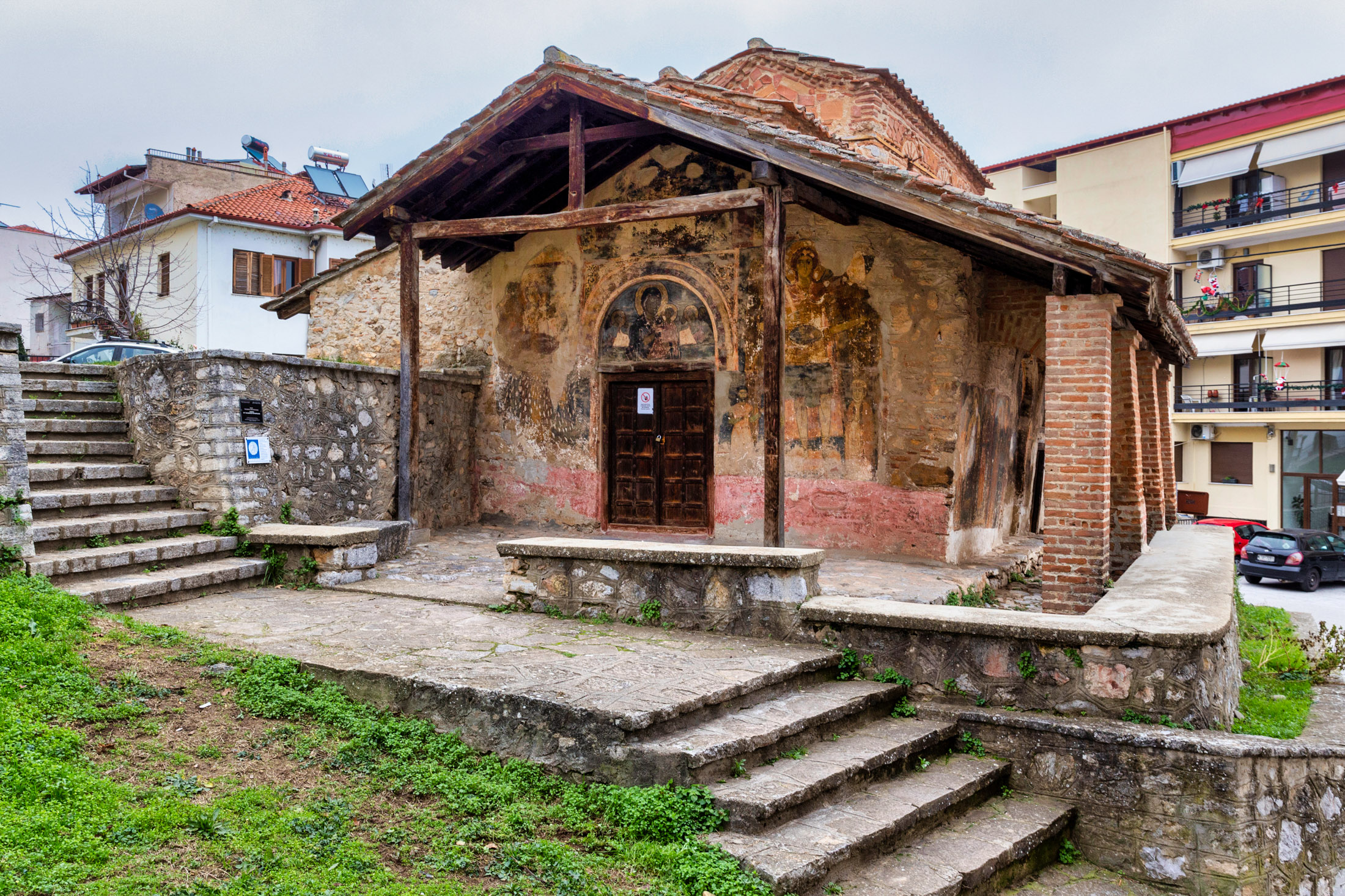 Είναι κτισμένος επάνω στα θεμέλια παλαιοχριστιανικού ναού, στο εσωτερικό διασώζονται οι αρχικοί κίονες σε δεύτερη χρήση, σε ρυθμό τρίκλιτης βασιλικής με νάρθηκα. Κτίστηκε και τοιχογραφήθηκε πρώτη φορά κατά τον 10ο αιώνα, ενώ ακολούθησε ένα δεύτερο στρώμα τοιχογράφησης τον 14ο αιώνα. Στην κόγχη του Ιερού, κάτω από την Πλατυτέρα των Ουρανών, σώζεται η μοναδική παράσταση του λεγόμενου Μελισμού. Δηλαδή της Θείας Κοινωνίας, του σώματος και του αίματος του Ιησού. Αριστερά της εισόδου βρίσκεται ο τάφος του Μακεδονομάχου Παύλου Μελά και της συζύγου του Ναταλίας.