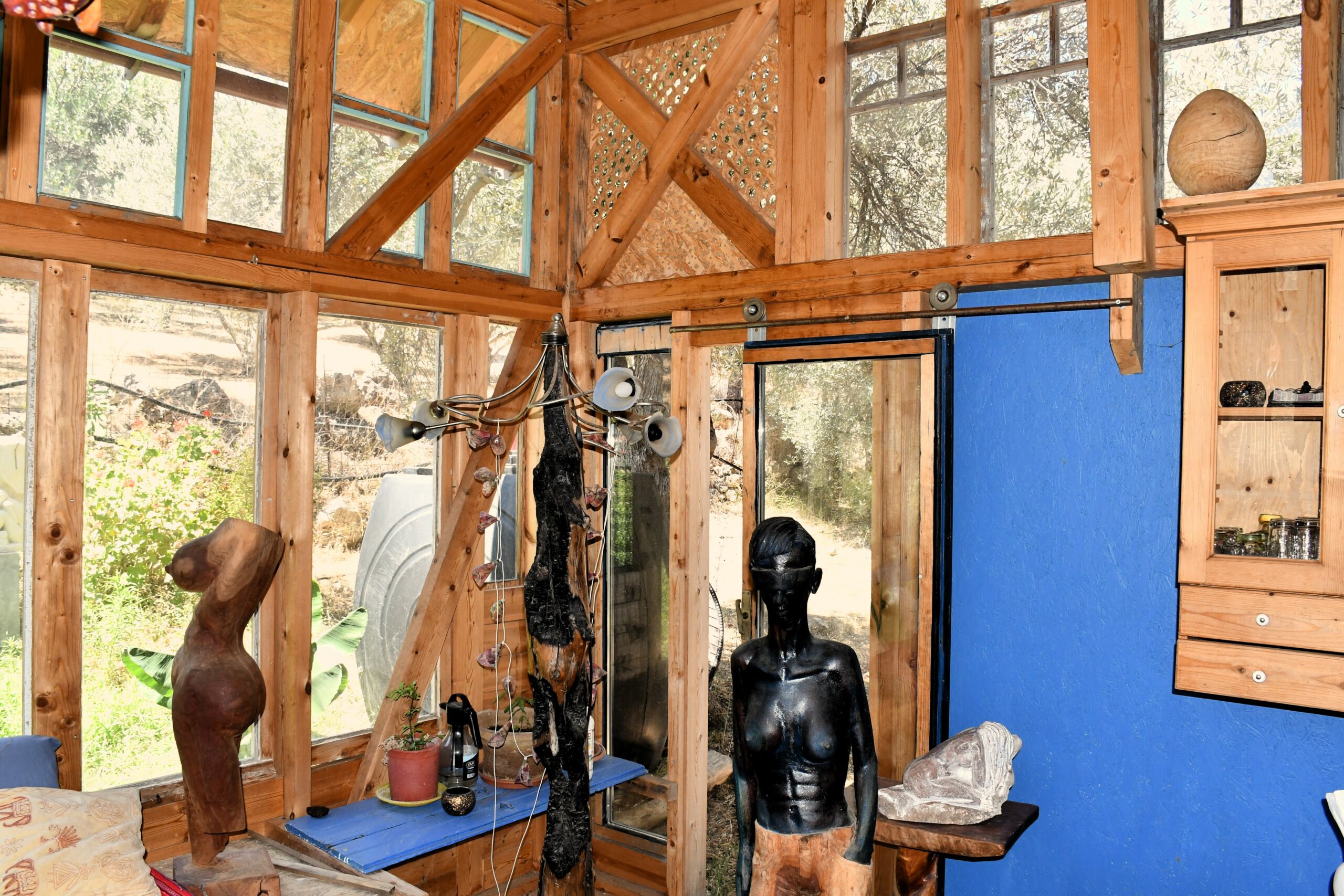 Το 2021 κατασκεύασε ο ίδιος με ξύλο, στο κέντρο του ελαιώνα, το «γυάλινο σπίτι» που υποδέχεται και ενημερώνει τους επισκέπτες του, αλλά εκτίθεται και προφυλάσσονται τα έργα που φιλοτέχνησε από ντόπιο ξύλο. «Ένας χώρος για την τέχνη. Ένας χώρος όπου οι σκέψεις μπορούν να πετάξουν ψηλά. Ένας χώρος για να νιώθεις καλά» όπως συνηθίζει να λέει.
