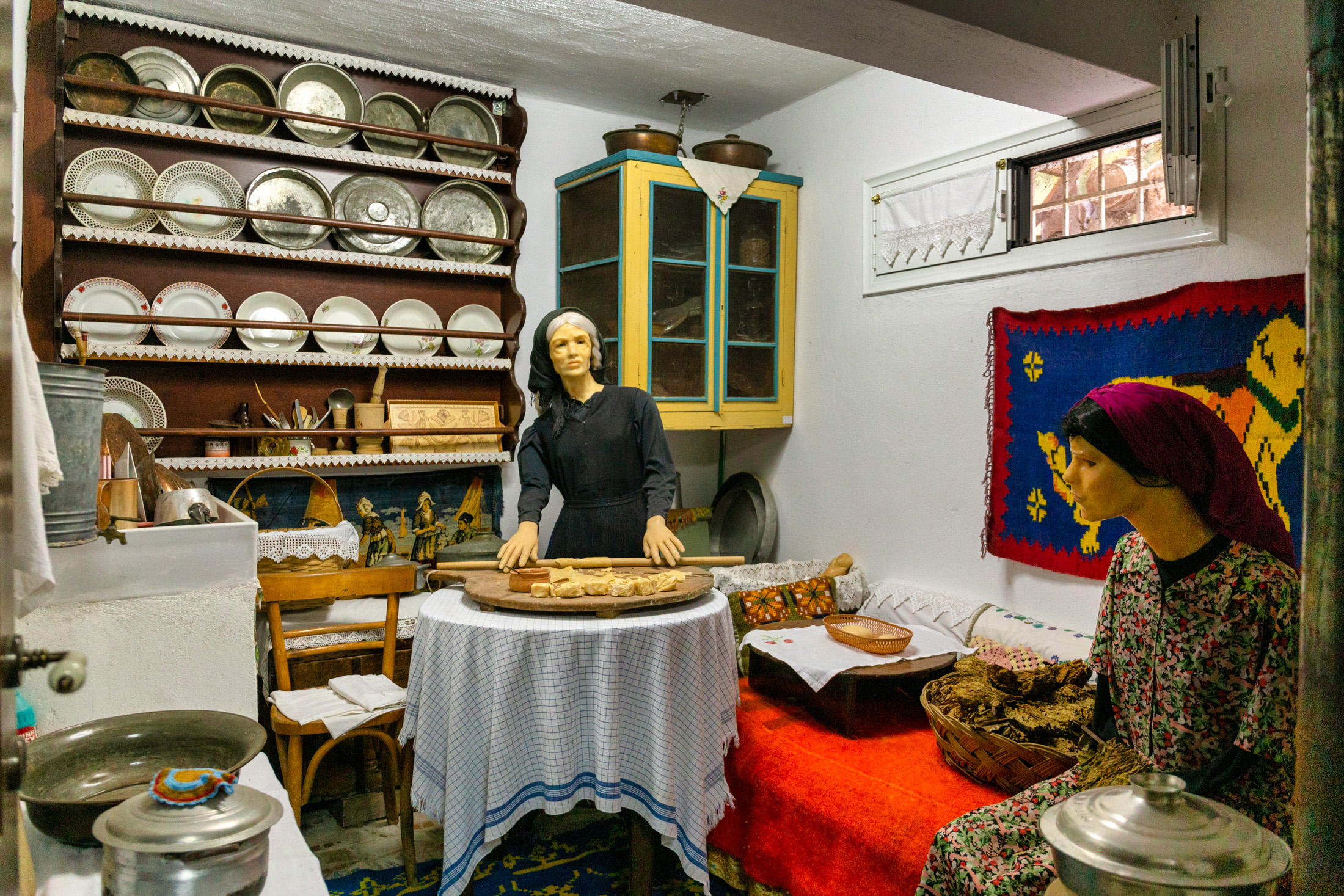 Η γιαγιά Ευαγγελία παραδίπλα πλάθει χυλοπίτες ενώ το κελάρι είναι γεμάτο με τα τρόφιμα του χειμώνα, καθώς και βαρέλια με κρασί και τσίπουρο. Στο ζυμωτάρι οι γυναίκες ζυμώνουν για να πλάσουν ψωμιά, για να τα ψήσουν στη συνέχεια στον παραδοσιακό φούρνο. Οι άντρες ασχολούνται -μεταξύ άλλων- με τον μούστο και την παραγωγή τσίπουρου στα ρακοκάζανα.