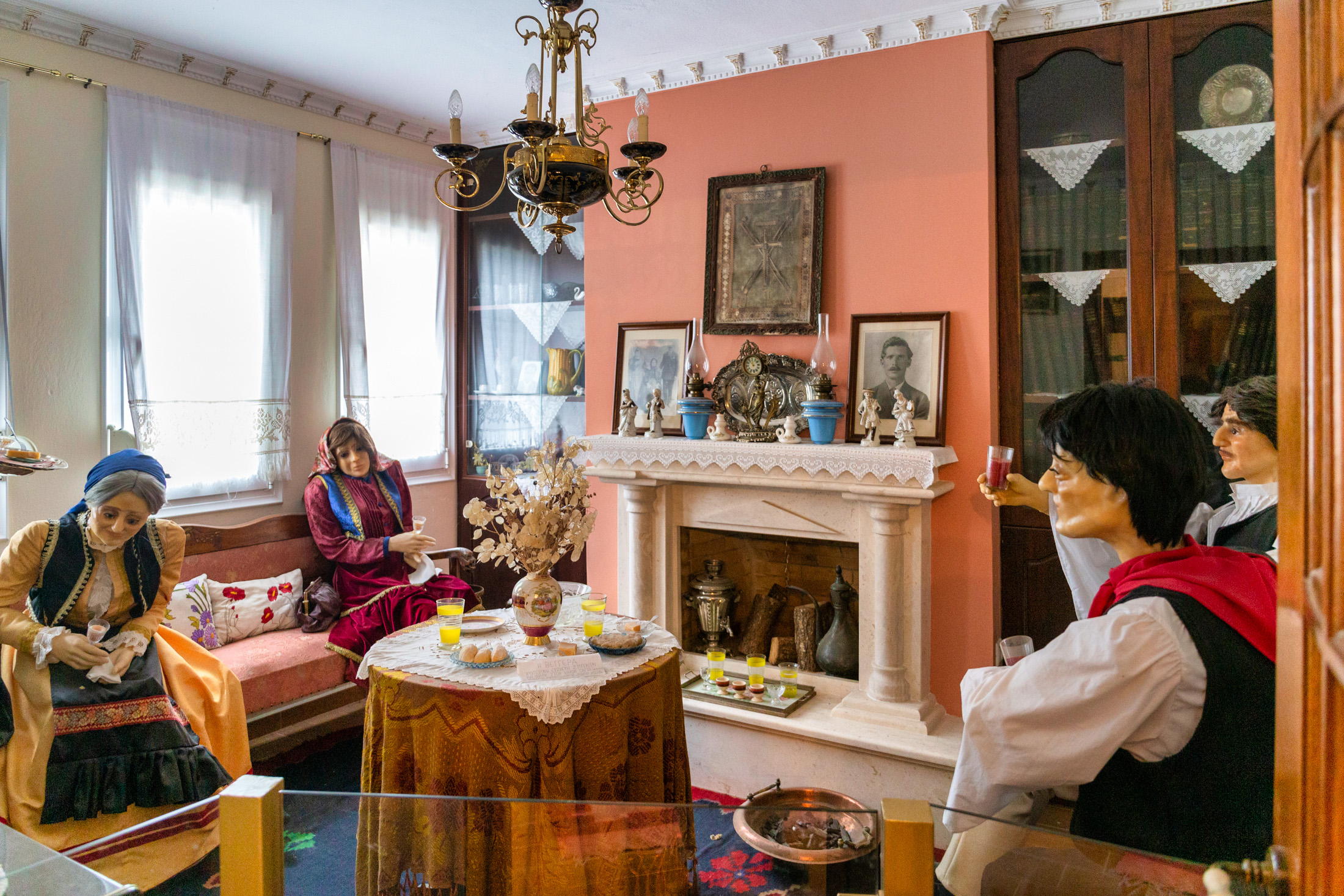 Στο ισόγειο του μουσείου παρουσιάζεται το παραδοσιακό γλέντι μετά τον γάμο του γιού της οικογένειας με μια κοπέλα έπειτα από προξενιό. Η ορχήστρα με χάλκινα παίζει μουσική και όλοι οι συγγενείς γλεντούν και συγχαίρουν το ζευγάρι. Δίπλα είναι το δωμάτιο με την προίκα, ενώ στο υπόγειο το μαγειρείο μαζί με την εστία φωτιάς και το κουζινάκι, όπου η κυρία Γιαννούλα πίνει καφέ με συγχωριανές της που -όπως συνηθιζόταν τότε- σχολίαζαν τα «δρώμενα» στο χωριό.