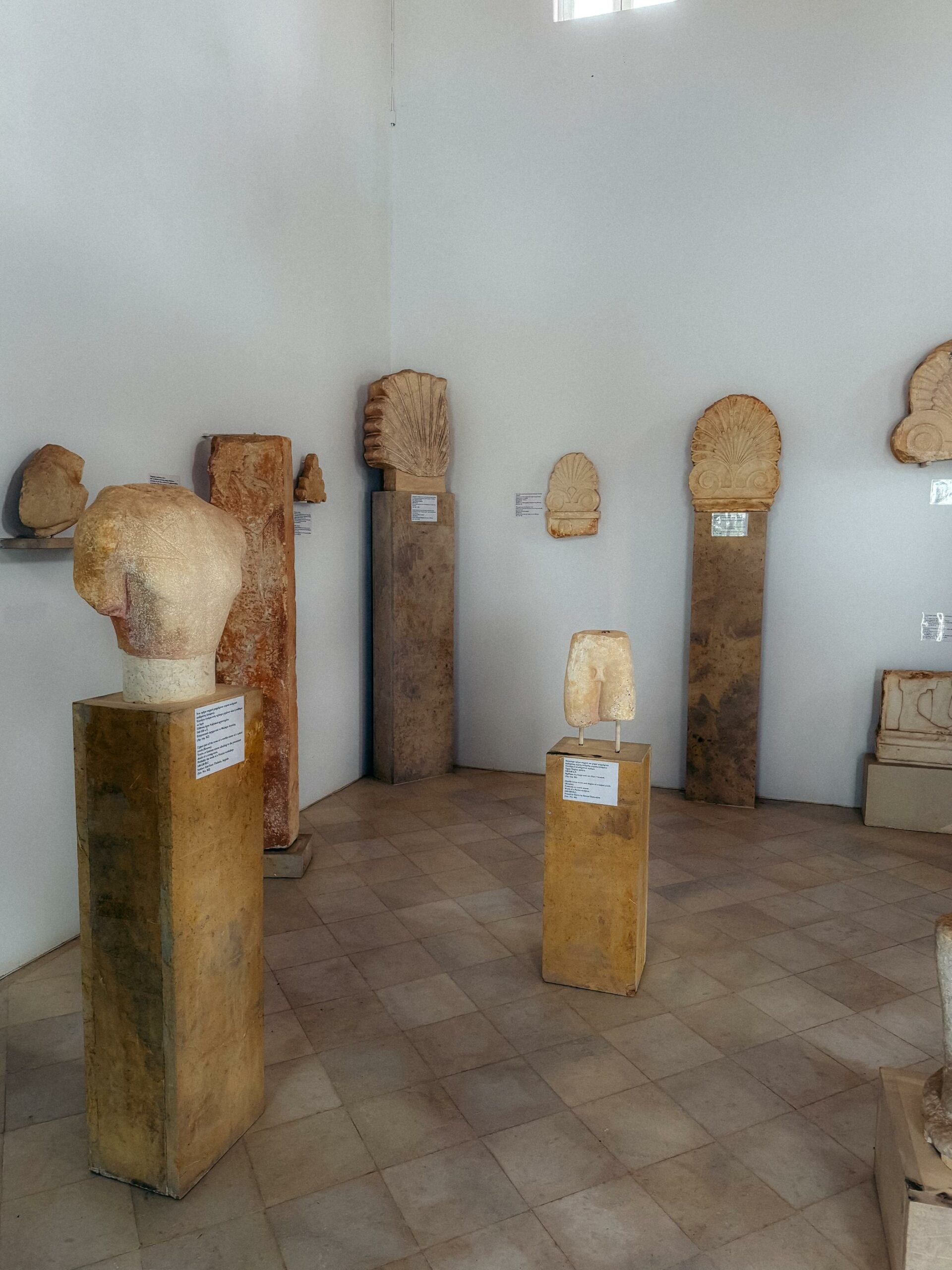 Στον δεύτερο όροφο παρουσιάζονται έργα γλυπτικής από την αρχαϊκή περίοδο (6ος αιώνας π.Χ.) έως και τη ρωμαϊκή εποχή (3ος αιώνας μ.Χ.), μαζί με λιγοστά δείγματα μικροτεχνίας. Στον αύλειο χώρο εκτίθενται επίσης επιγραφές, ανάγλυφα και αγάλματα της ίδιας περιόδου.