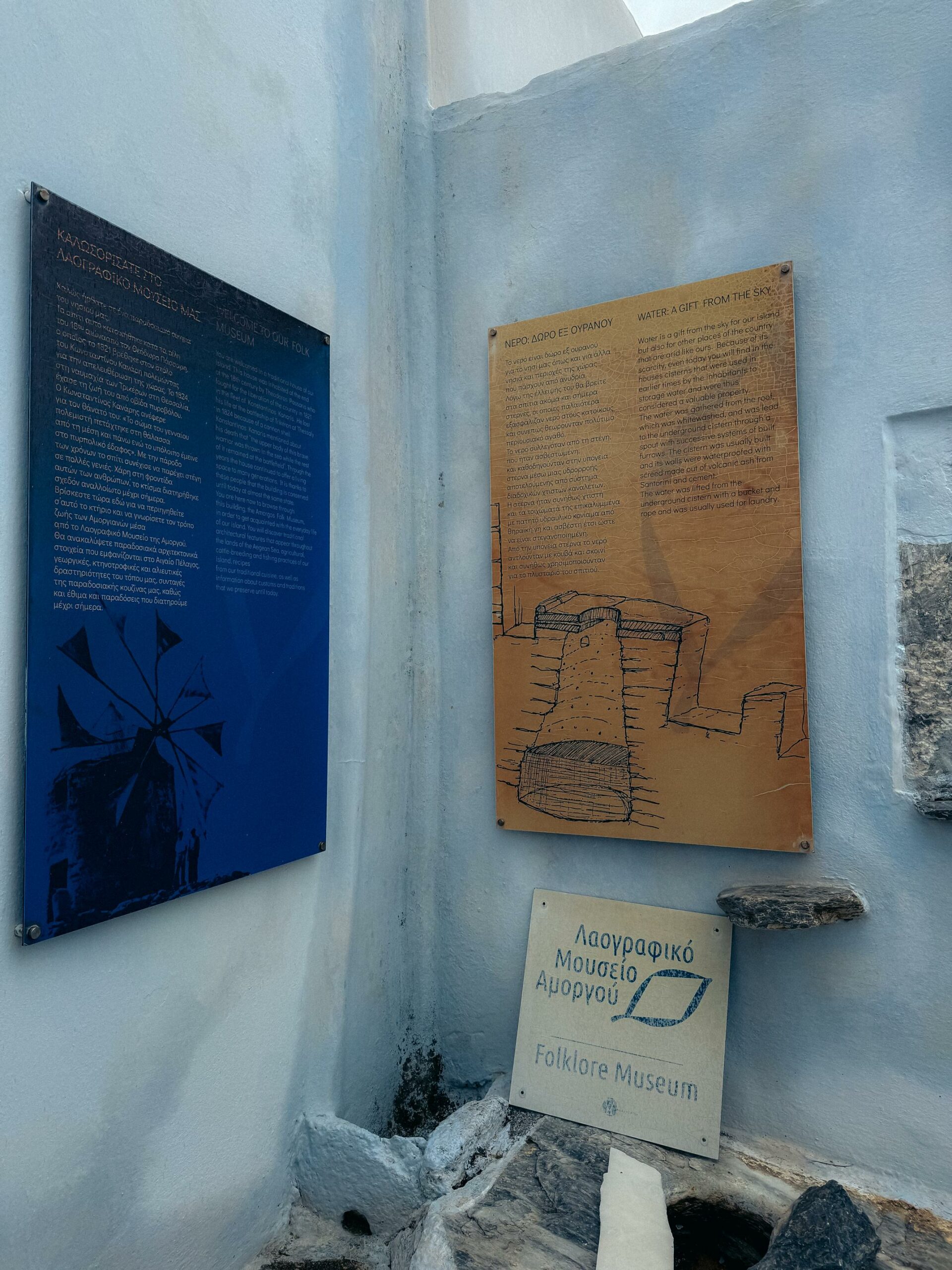 Λιθόστρωτα καλντερίμια με χρωματιστά παράθυρα, πέτρινα δρομάκια με κληματαριές και μικρά ανοίγματα συνθέτουν το σκηνικό της μικρής Χώρας της Αμοργού, που πλαισιώνεται αρμονικά από τους ανεμόμυλους στον ορίζοντα, ένα από τα πιο χαρακτηριστικά τοπόσημα της περιοχής, σύμβολα του βουκολικού χαρακτήρα του νησιού, όπως αυτός αποτυπώνεται και στο Λαογραφικό Μουσείο της Αμοργού.