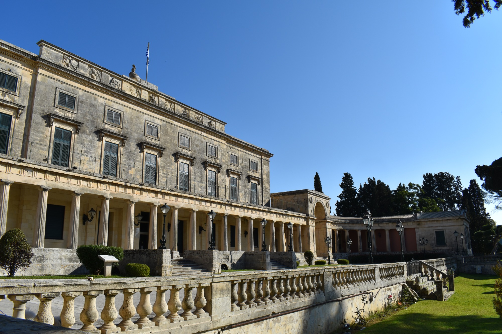Το ιστορικό αυτό παλάτι είναι ένα από τα πιο κομψά, μεγάλης κλίμακας κτήρια στην παλιά πόλη της Κέρκυρας και αποτελούσε την έδρα τόσο του βρετανικού Τάγματος των Αγίων Μιχαήλ και Γεωργίου, όσο και της Ιόνιας Γερουσίας. Από τα επίσημα εγκαίνια του μουσείου το 1927, στο οποίο ο Γρ. Μάνος ορίστηκε δια βίου διευθυντής, έχει υπάρξει ο μόνιμος χώρος όπου εκτίθενται οι Ασιατικές συλλογές. Στην πορεία του χρόνου, αποκτήθηκαν πολλά ακόμη αντικείμενα τα οποία εμπλούτισαν τη συλλογή, προερχόμενα και αυτά από γενναιόδωρες προσφορές, με πιο σημαντικές αυτές του Ν. Χατζηβασιλείου το 1974 και του Χ. Χιωτάκη το 1983. Σήμερα το μουσείο μπορεί να περηφανεύεται ότι είναι το μοναδικό στον Ελλαδικό χώρο αποκλειστικά αφιερωμένο σε τόσους σημαντικούς Ασιατικούς πολιτισμούς, όπως τον κινεζικό, ιαπωνικό, ταϊλανδέζικο, κορεάτικο, πακιστανικό και ινδικό.