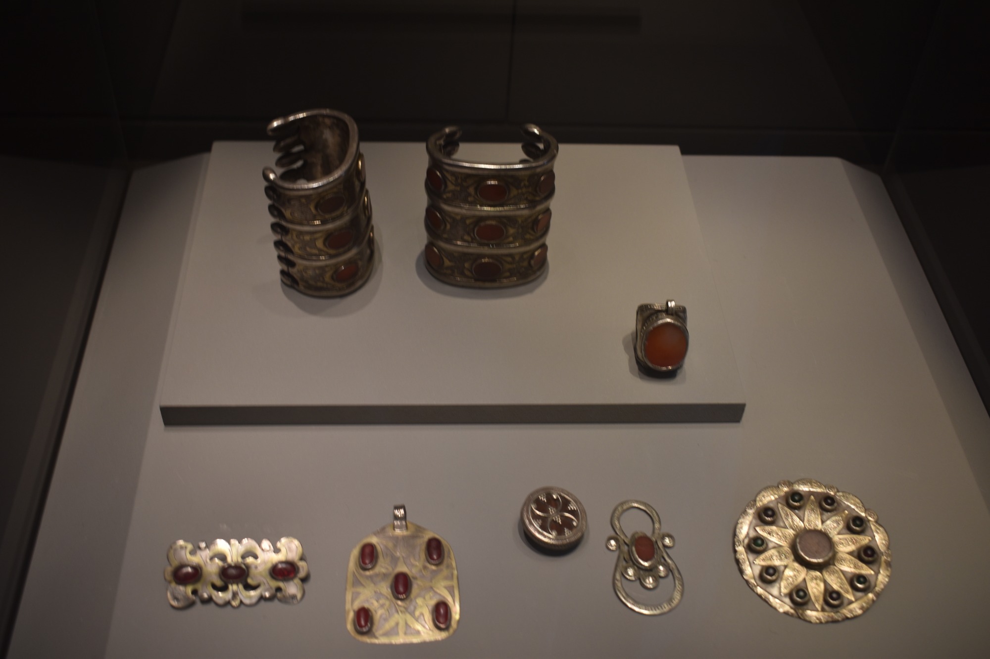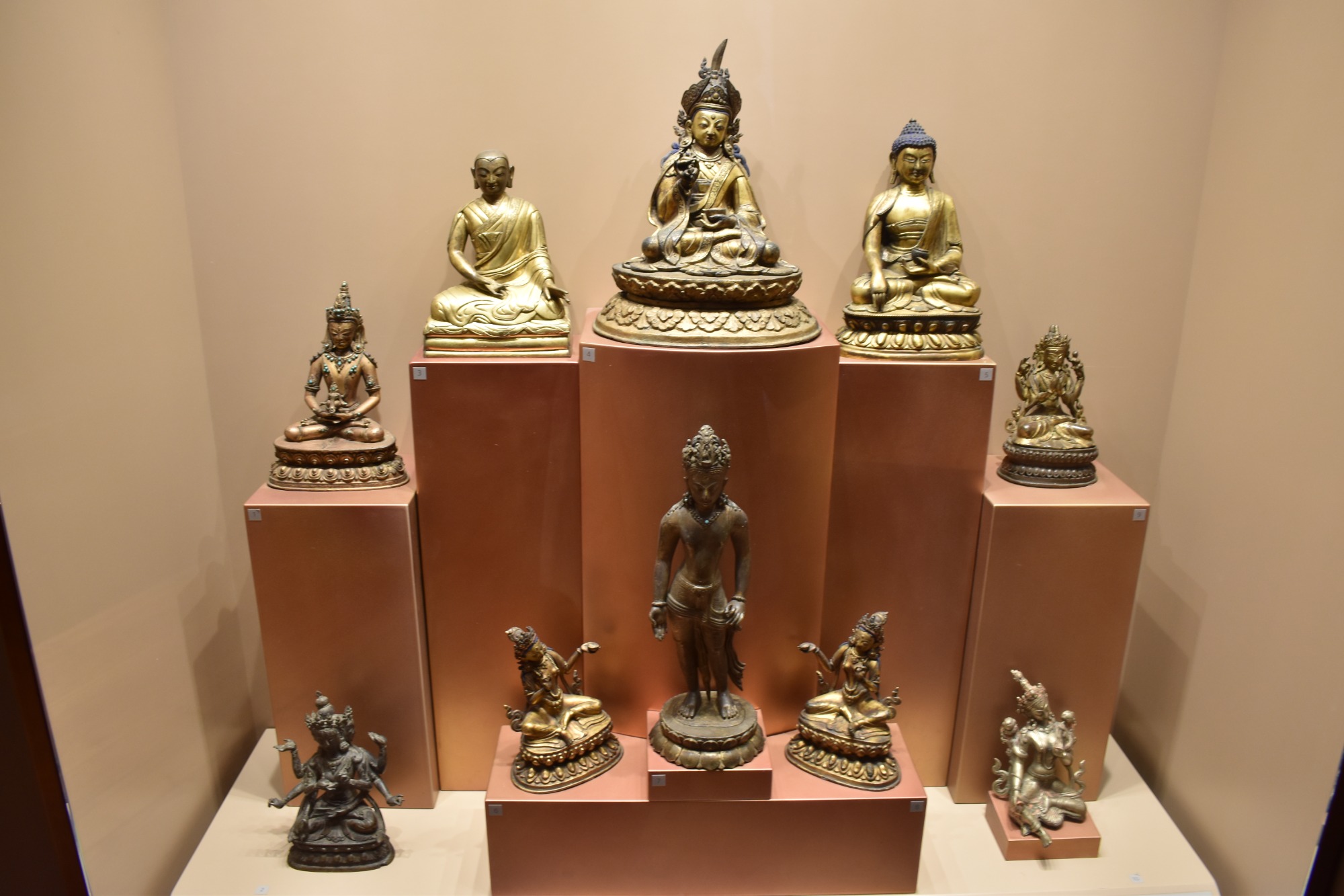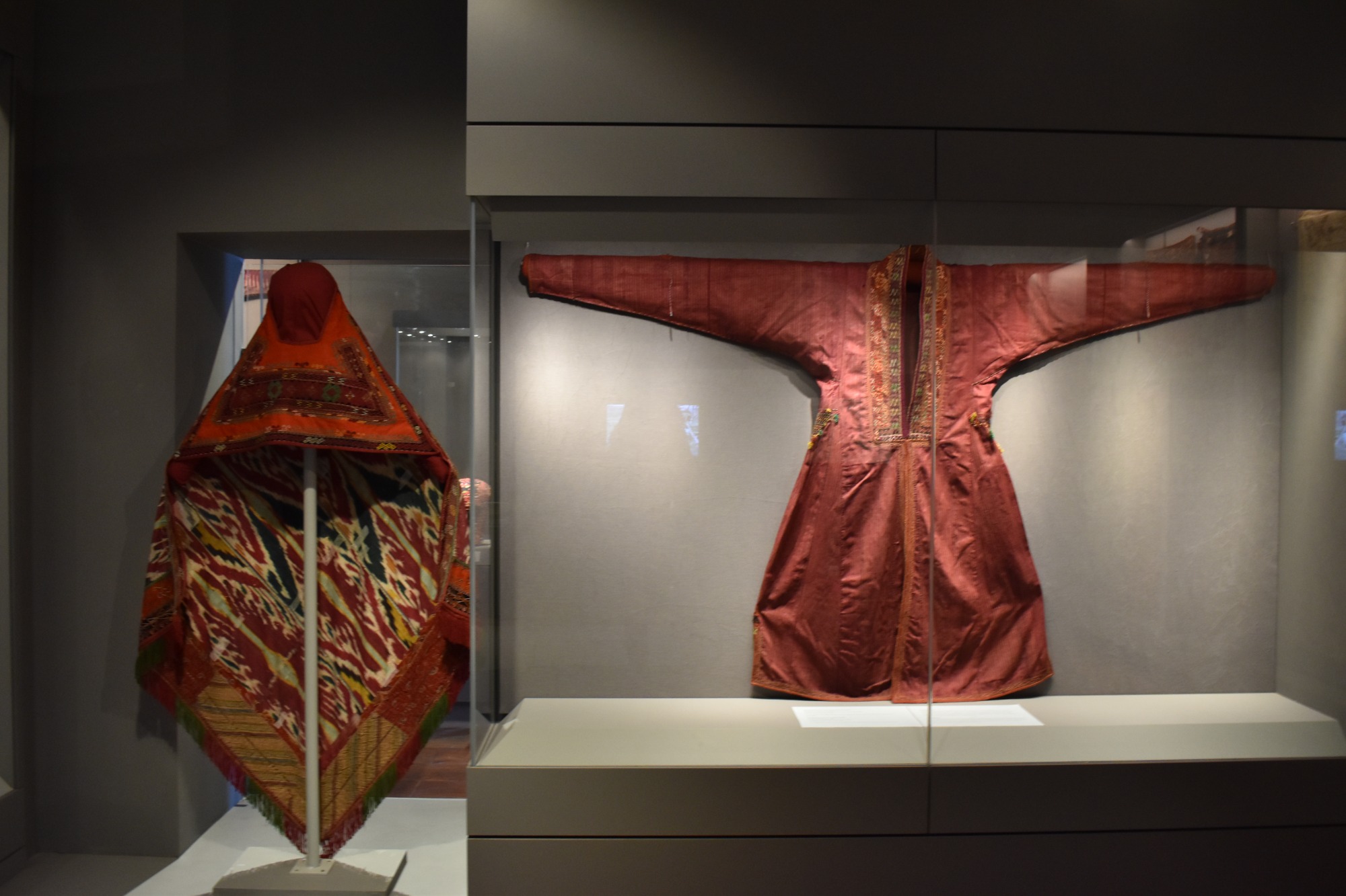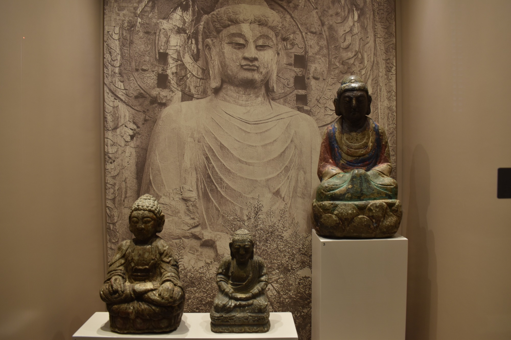 Ιδιαίτερα καλοφτιαγμένες είναι οι κεφαλές του Βούδα, με το σύμβολο της σοφίας σε σχήμα ψηλής φλόγας. Περισσότερες κεφαλές του Βούδα, αυτή τη φορά λαξευμένες σε πέτρα, εκτίθενται από την Καμπότζη, το πιο σημαντικό καλλιτεχνικό κέντρο της νοτιοανατολικής Ασίας από τον 9ο έως τον 13ο αιώνα. Τέλος, ακολουθούμε τα ίχνη των Τουρκομάνων στις στέπες της ανατολικής Ασίας και γινόμαστε μάρτυρες της λιτής ομορφιάς της υφαντικής τους τέχνης, που έχει τις ρίζες της στο νομαδικό τους παρελθόν. Πολύχρωμα υφαντά, κεντήματα, κοσμήματα και ιδιαίτερα κιλίμια διαφόρων φυλών μαγνητίζουν το βλέμμα με τα ζωηρά τους χρώματα και τα επαναλαμβανόμενα μοτίβα τους, δίνοντάς μας μια γεύση από τη ζωή των νομάδων στην κεντρική Ασία.
