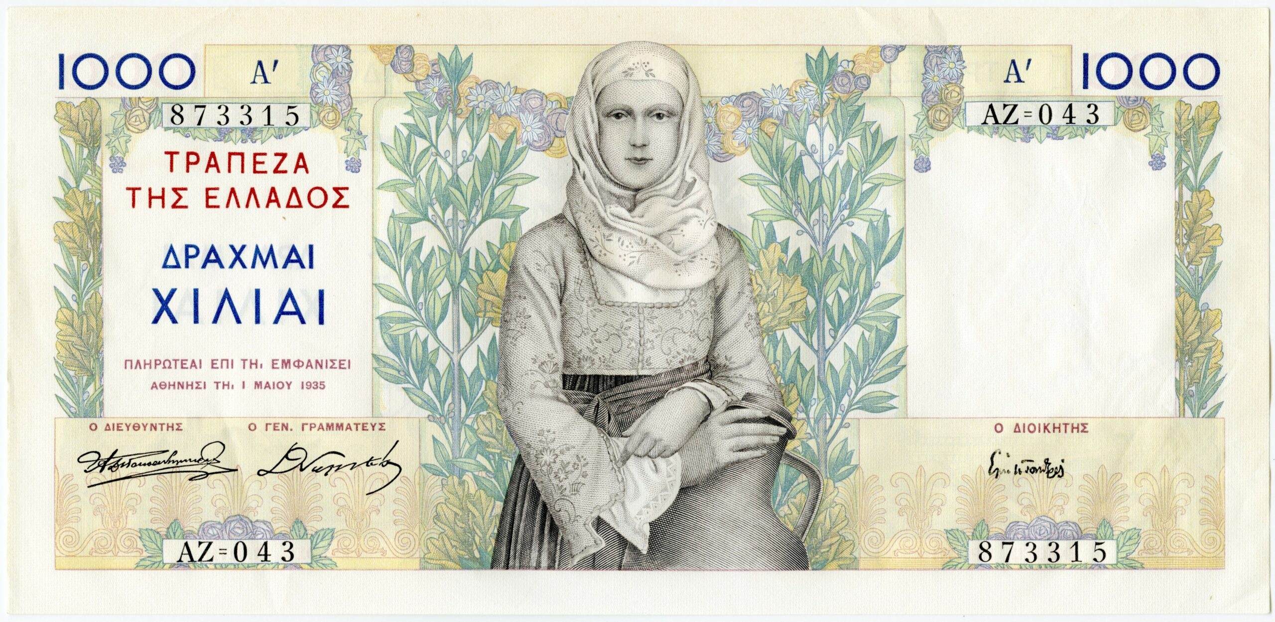 Παρά την πτώχευση του Ελληνικού κράτους το 1893, η αυγή του 20ου αιώνα βρίσκει την Ελληνική οικονομία να ανακάμπτει με ταχείς ρυθμούς και από την περίοδο αυτή εκτίθενται χαρτονομίσματα των 25, 100 και 500 δραχμών, καθώς και το πρώτο των 1.000δρχ., που εκδόθηκε για την επέτειο των 60 χρόνων από την ίδρυση της Εθνικής Τράπεζας της Ελλάδος. Οι θετικές αυτές εξελίξεις ωστόσο, δεν διήρκησαν πολύ, καθώς η συμμετοχή της χώρας σε 3 συνεχόμενους πολέμους – Βαλκανικοί Πόλεμοι, Α΄ Παγκόσμιος και Μικρασιατική καταστροφή – είχαν σαν αποτέλεσμα την οικονομική επιδείνωση και την υποτίμηση του νομίσματος. Σε αυτό το τμήμα της συλλογής, παράλληλα με χαρτονομίσματα της περιόδου του Α’ Π.Π., βλέπουμε και άλλα κομμένα σε δύο μέρη. Αυτό το παράδοξο φαινόμενο οφείλεται στο ασυνήθιστο μέτρο που υιοθετήθηκε λόγω του αναγκαστικού εσωτερικού δανεισμού: όλα τα χαρτονομίσματα που κυκλοφορούσαν στην αγορά κόπηκαν σε δύο μισά, το ένα παρέμενε στον κάτοχο διατηρώντας τη μισή του αξία και τα άλλα μισά ανταλλασσόταν με έντοκα 20ετή γραμμάτια του Δημοσίου με επιτόκιο 6,5%. Προχωρώντας προς την τρίτη δεκαετία του 20ου αιώνα, βλέπουμε χαρτονομίσματα της περιόδου που η δημοκρατία είχε πλέον ανακηρυχθεί σε νέο πολίτευμα, οπότε και αφαιρέθηκε πλέον ο βασιλικός θυρεός από τις εκτυπώσεις, χαρτονομίσματα που εκδόθηκαν στις ΗΠΑ από την American Bank Note Company για λογαριασμό της νεοϊδρυθείσας Τράπεζας της Ελλάδος, καθώς και άλλα, τυπωμένα στο Παρίσι, σύμφωνα με τα νέα αισθητικά πρότυπα.