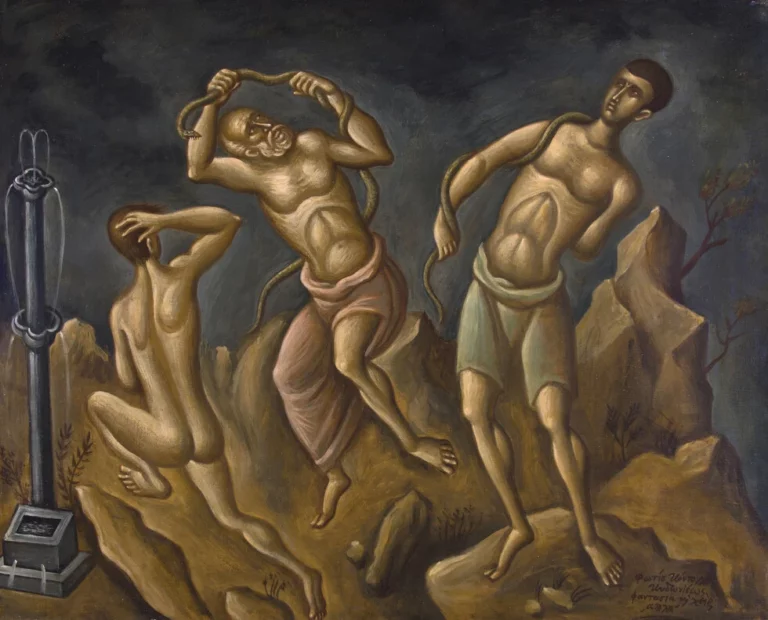 Στην έκθεση συμμετέχουν με έργα τους οι καλλιτέχνες Ιωάννης Βαμπούλης, Πέτρος Βαμπούλης, Σπύρος Βασιλείου, Φώτης Βάρθης, Νίκος Βέλμος, Κωνσταντίνος Γεωργακόπουλος, Γεώργιος Γλιάτας, Στέφανος Δασκαλάκης, Διαμαντής Διαμαντόπουλος, Νίκος Εγγονόπουλος, Μάρκος Καμπάνης, Ανδρέας Κοντέλλης, Φώτης Κόντογλου, Γεώργιος Κόρδης, Ράλλης Κοψίδης, Αλέκος Κυραρίνης, Αλέκος Λεβίδης, Κλέαρχος Λουκόπουλος, Νεκτάριος Μαμάης, Τάσος Μαντζαβίνος, Ιωάννης Μητράκας, Γιάννης Μόραλης, Νίκος Μόσχος, Εμμανουήλ Μπιτσάκης, Χρήστος Μποκόρος, Γιάννης Παπαδέλης, Σπύρος Παπαλουκάς, Κωνσταντίνος Παπαμιχαλόπουλος, Κώστας Παπανικολάου, Σπύρος Παπανικολάου, Γιώργος Ρόρρης, Εδουάρδος Σακαγιάν, Παύλος Σάμιος, π. Σταμάτης Σκλήρης, Σωτήρης Σόρογκας, Γιάννης Τσαρούχης, Στέλιος Φαϊτάκης, Φίκος, Νικόλαος Χούτος, Γιώργος Χοχλιδάκης και Klaus Vrieslander.