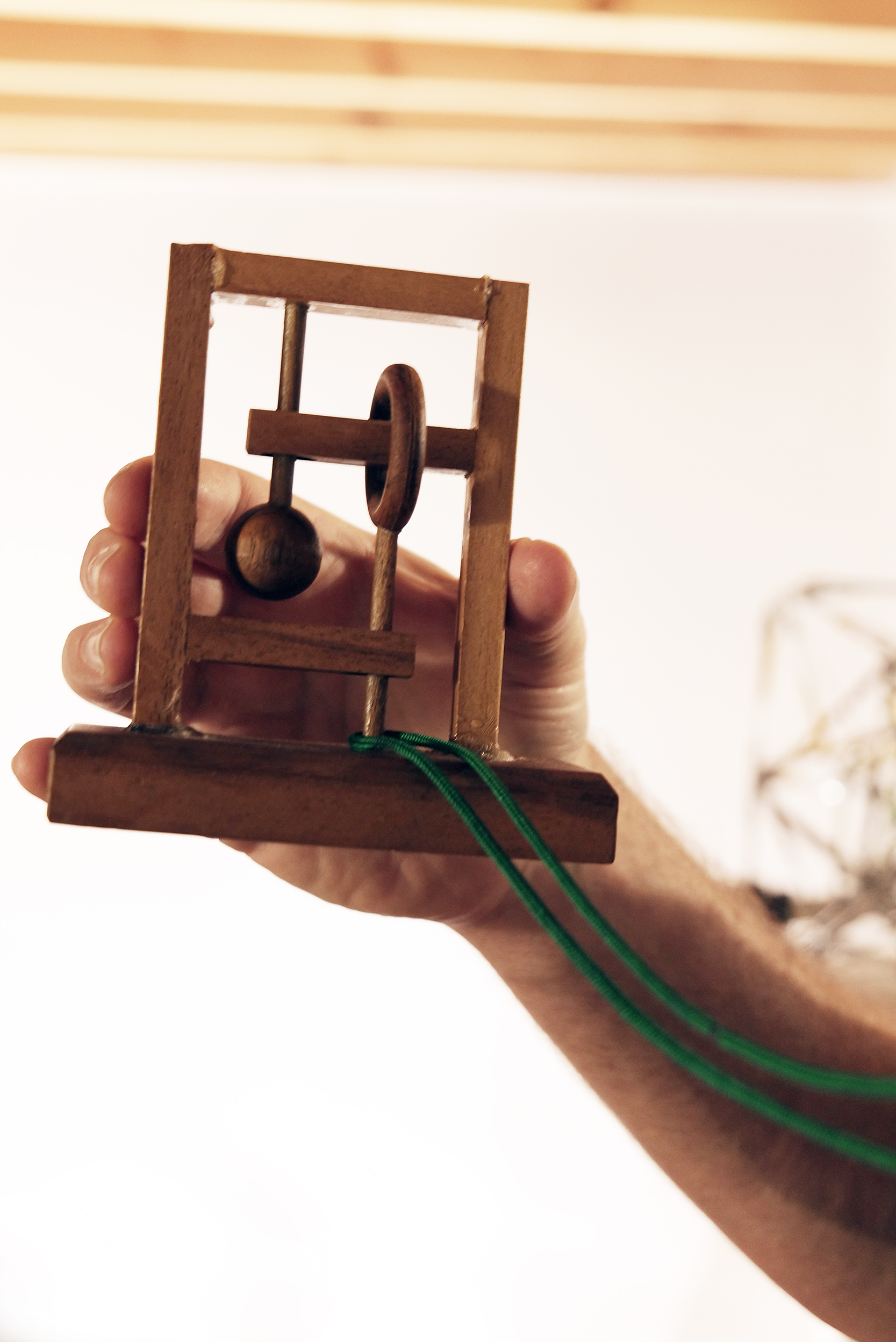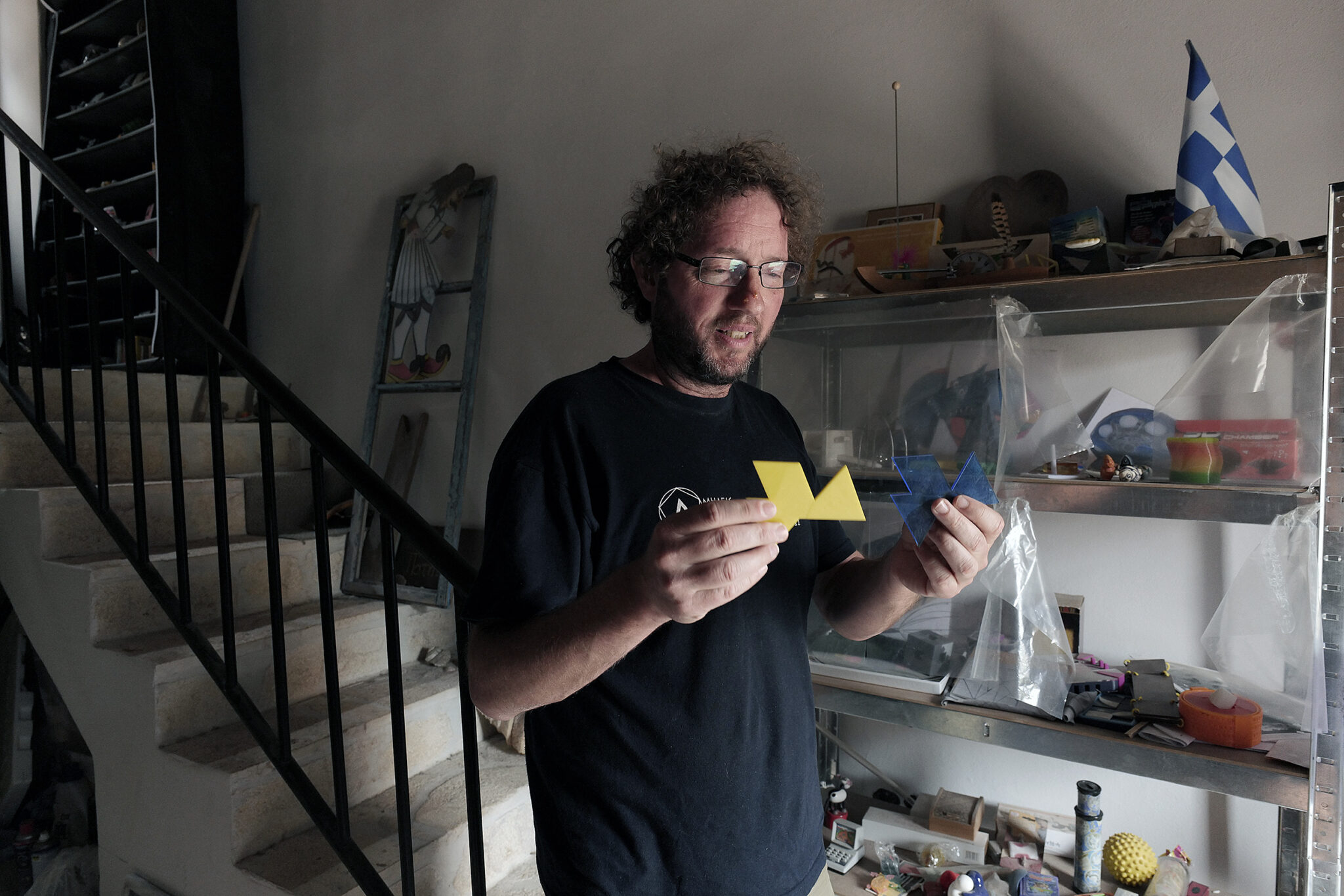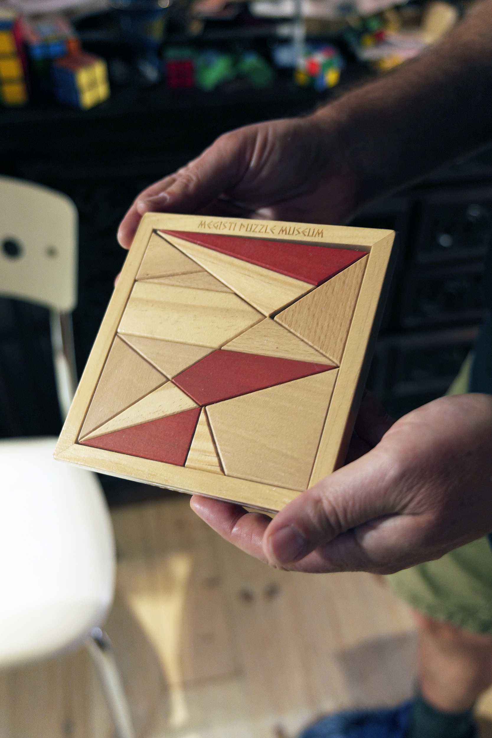 Μπαίνουμε σε ένα χώρο γεμάτο πληροφορίες. Αντικείμενα παντού, μικρές και μεγαλύτερες κατασκευές, κάποιες ξεκάθαρες, κάποιες τελείως σπαζοκεφαλιές. Ο χώρος δεν είναι ιδιαίτερα μεγάλος παρότι μοιράζεται σε δυο ορόφους, για τους περίπου 5000 γρίφους και παιχνίδια νόησης που φιλοξενεί. Είναι ξεκάθαρο πως μόνο ο Πανταζής γνωρίζει πού βρίσκεται τι μέσα στο φαινομενικό χάος. Έχει αρχίσει ήδη να μου μιλά, με ρυθμό γοργό, ασταμάτητο, γεμάτο πληροφορίες καθώς στερεώνει ένα ταμπλό στην πόρτα «…για να μη μπει μέσα κάποιο κατσίκι», μου λέει. Σταματώ τον καταιγιστικό του ρυθμό, μια από τις ουκ ολίγες φορές που θα το κάνω στη διάρκεια της συνάντησής μας, για να πάρουμε τα πράγματα από την αρχή. Σαν να πιάνουμε την άκρη του νήματος για να προσπαθήσουμε να λύσουμε το γρίφο του ίδιου του Πανταζή.
