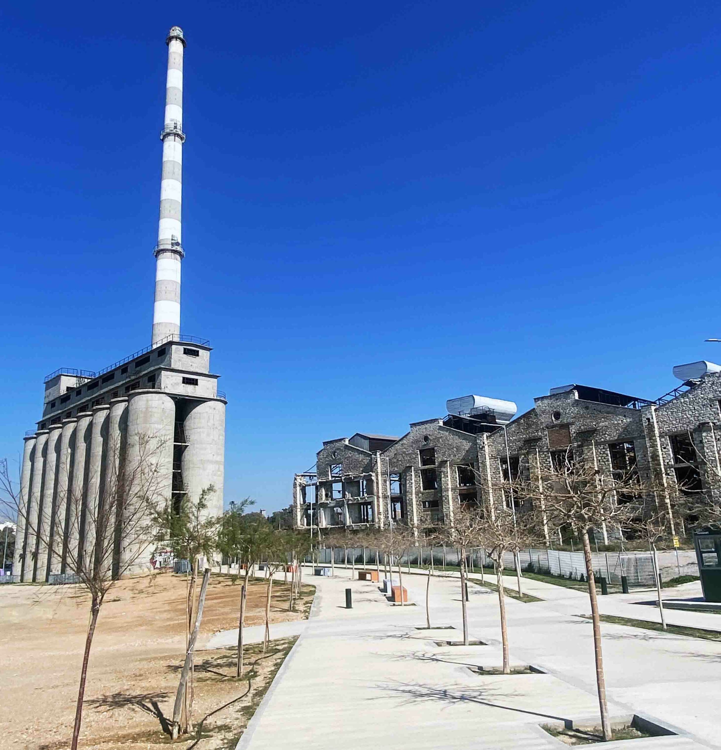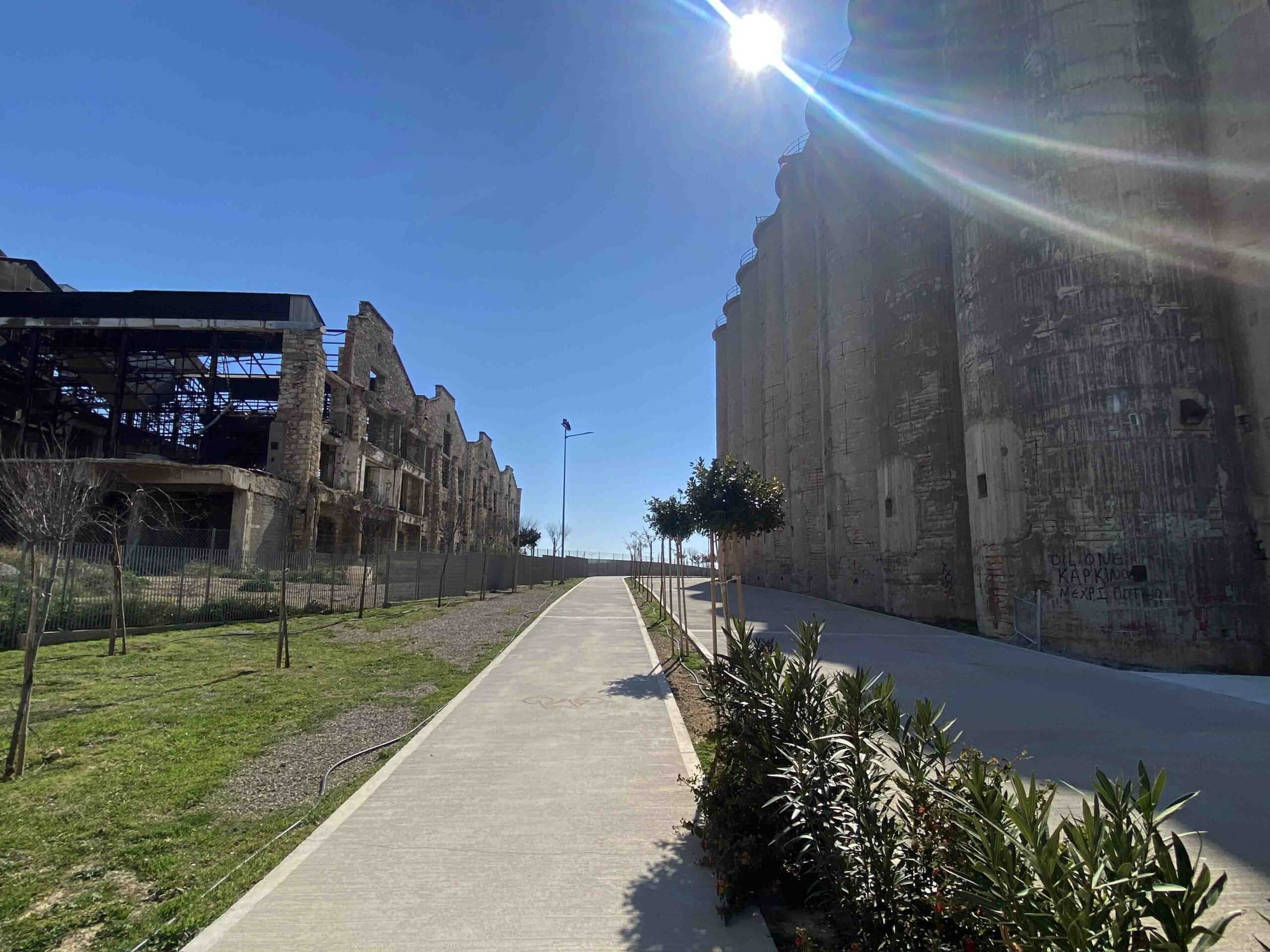 Περπατάμε ανάμεσα στα σωζόμενα μεν, κουφάρια δε, κτίρια του ιστορικού εργοστασίου, του Υαλουργείου αλλά και του Ινστιτούτου Χημείας και Γεωργίας. Θαυμάζουμε το πελώριο και εμβληματικό ερυθρόλευκο φουγάρο που ξεπερνά τα 100 μέτρα σε ύψος. Οικογένειες με μικρά παιδιά σε μία συμφιλίωση με την απλότητα, ποδηλάτες, νεανικές παρέες που βρίσκουν χρόνο και χώρο να συναντηθούν. Ξέχασα να πω, φτάνοντας εδώ με αυτοκίνητο, παρκάρεις εύκολα και άνετα, σε χώρο δίπλα στη βόρεια είσοδο.