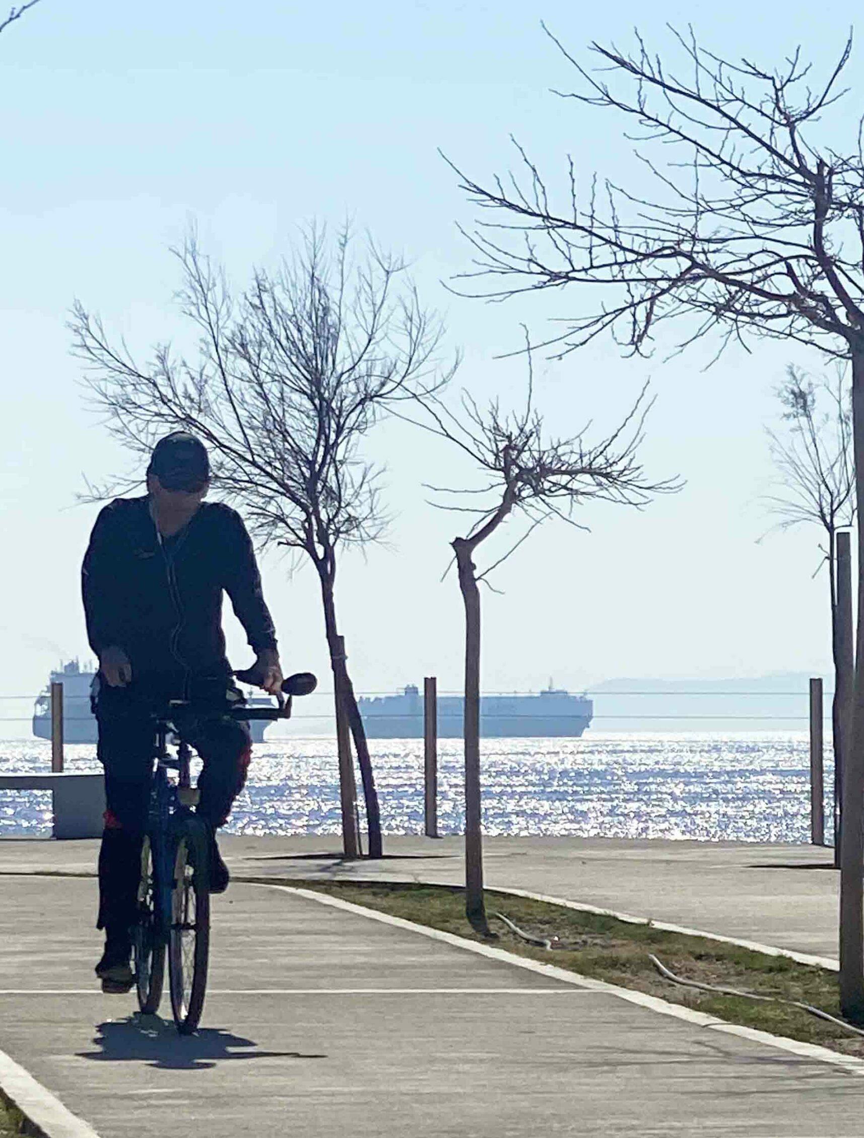 Οι ποδηλάτες πάνε και έρχονται, ενώ κάποιοι άλλοι έχουν βγει βόλτα με τα σκυλιά τους. Εμείς σταματάμε σε μία από τις καντίνες και παίρνουμε να πιούμε από μία ζεστή σοκολάτα. Καθόμαστε για λίγο στα διάσπαρτα καθίσματα με θεά στη θάλασσα και συνεχίζουμε τη βόλτα μας παράλληλα με την ακτογραμμή. Περνάμε από τα παλιά σφαγεία του Πειραιά και συνεχίζουμε προς τα σιλό. Σε αυτό το χώρο, δίπλα στα σιλό και το θεόρατο φουγάρο, το καλοκαίρι πραγματοποιούνται σειρά από πολιτιστικές εκδηλώσεις, με έμφαση στις συναυλίες. Φτάνουμε στον τάφο του Θεμιστοκλή, του διορατικού πολιτικού ο οποίος κατέστησε την Αθήνα πρώτη ναυτική δύναμη.