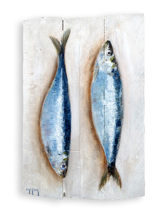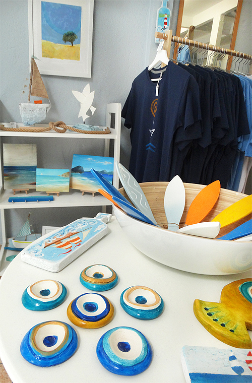 «Πάντοτε, μου άρεσε να καταπιάνομαι με κατασκευές, να δημιουργώ αντικείμενα με απλά υλικά, να παίζω με τα χρώματα, ζωγραφίζοντας ή σκιτσάροντας», μου λέει ο Παναγιώτης, στο κατάφωτο μαγαζί του. «Και αποφάσισα να κάνω το χόμπι μου επάγγελμα, φτιάχνοντας κατασκευές που απευθύνονται σε ντόπιους και επισκέπτες της πόλης, με προσωπική σφραγίδα, από τη σύλληψη της ιδέας ως την υλοποίηση της». Μικροί πίνακες ζωγραφικής με βασικό θέμα τα ψάρια, ψάρια σε t-shirt, ψάρια σε κοσμήματα και σε κλειδοθήκες.