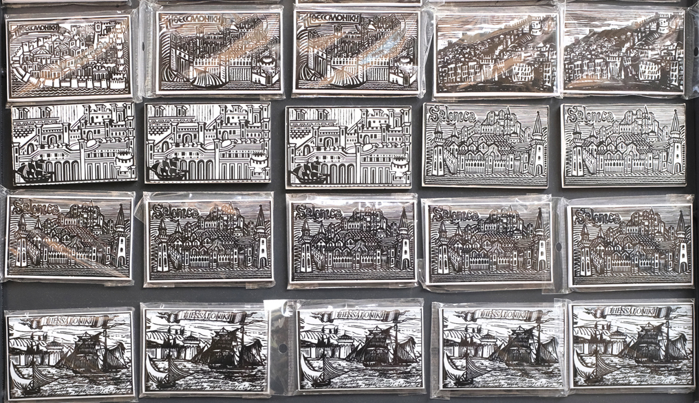 Σήμερα, στην ατμοσφαιρική γκαλερί, που διατηρεί μαζί με την κόρη του, αυτά τα χαρακτικά γίνονται διακοσμητικά πιάτα, κούπες, t-shirt, μαγνητάκια, καρτ ποστάλ. Μικρά ενθυμήματα της πόλης, αλλά και πρωτότυπα έργα τέχνης, με μαστοριά, ευαισθησία και τη δύναμη που διαθέτουν τα καλά έργα τέχνης, διηγούνται όχι μόνο την ιστορία της Θεσσαλονίκης, αλλά και τις περιπέτειες της αποτύπωσή της.