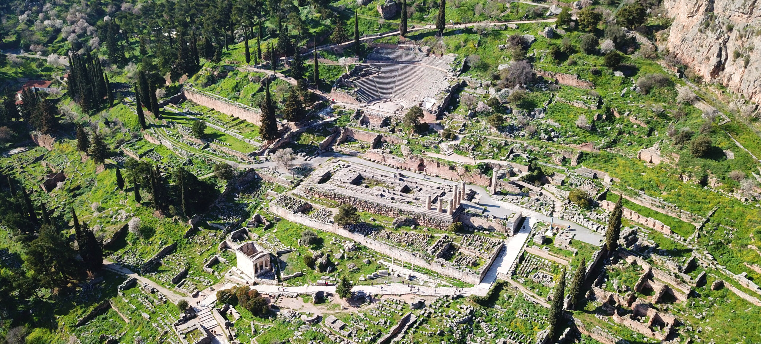 Το πανελλήνιο ιερό των Δελφών με το ξακουστό μαντείο του ιδρύθηκε στους πρόποδες του Παρνασσού, του Ιερού Όρους των αρχαίων, μέσα στο υποβλητικό τοπίο που σχηματίζεται ανάμεσα στους δύο πανύψηλους βράχους των Φαιδριάδων.