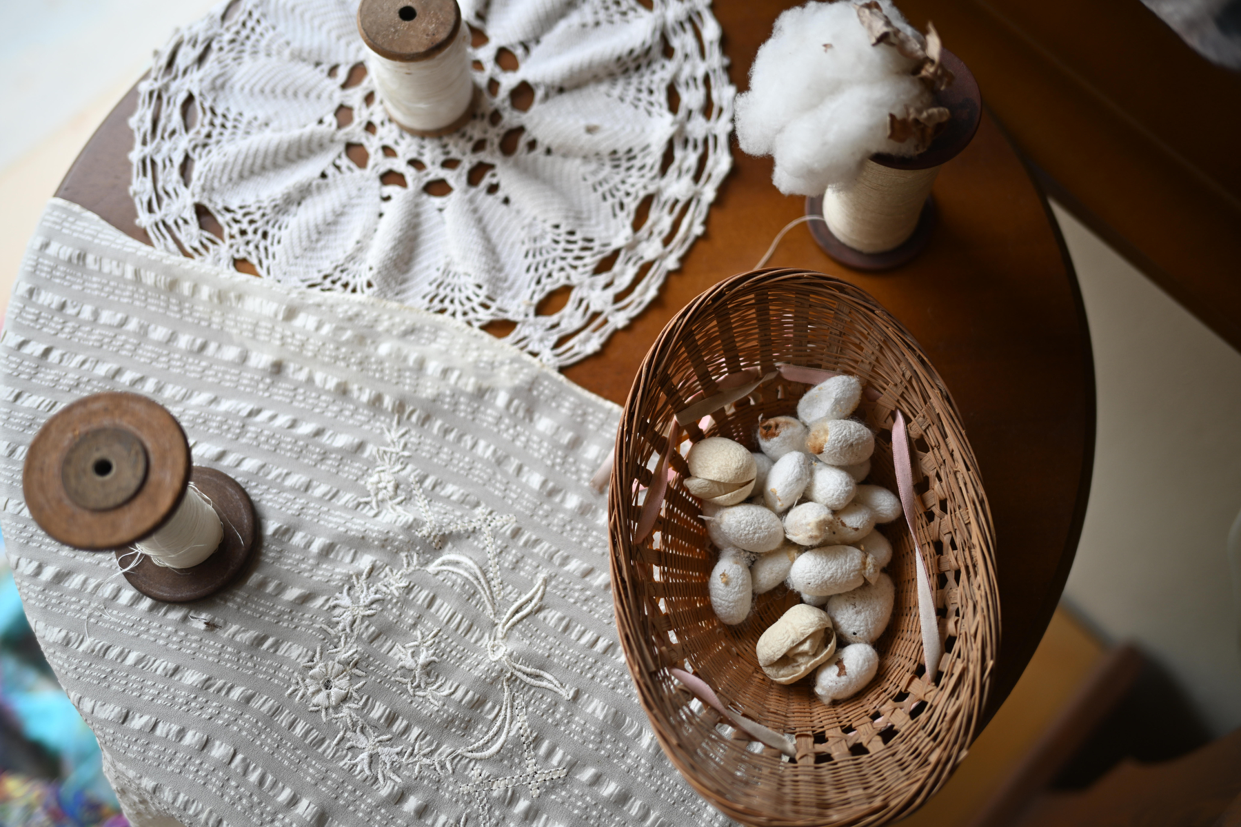 Καθώς ο καφές άχνιζε μπροστά μας, ο κύριος Γκόνος άρχισε να ξετυλίγει το νήμα της ιστορίας. «Όλα ξεκίνησαν το 1895», είπε με μια νότα περηφάνιας στη φωνή του. «Η προγιαγιά μου, η Αγγελική Γκόνου, άρχισε να εκτρέφει μεταξοσκώληκες και να υφαίνει το μετάξι σε χειροκίνητους αργαλειούς». Η οικοτεχνία της Αγγελικής ξεκίνησε όπως πολλές άλλες εκείνη την εποχή -με την εκτροφή μεταξοσκωλήκων, την επεξεργασία των κουκουλιών και την ύφανση του μεταξιού, που στη συνέχεια πουλούσε στα πανηγύρια. Μια απλή αλλά επίπονη διαδικασία που απαιτούσε υπομονή, δεξιοτεχνία και αφοσίωση.