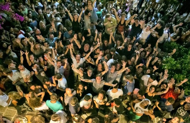 Όπως, κάθε χρόνο, τόπος αυτής της διάσημης σε όλο το Αιγαίο μέθεξης, βρίσκεται στο πλακόστρωτο γραφικό στενάκι του οικισμού πλάι στα εμβληματικά αρχοντόσπιτα με τους ολάνθιστους κήπους. Κι αφού οι μαζικά προσερχόμενοι γεμίσουν ασφυκτικά το χώρο, το κοινό εξαπλώνεται για να διασκεδάσει μέχρι τα χαράματα σε όλη τη παραδοσιακή πλατεία του Αρτεμώνα.