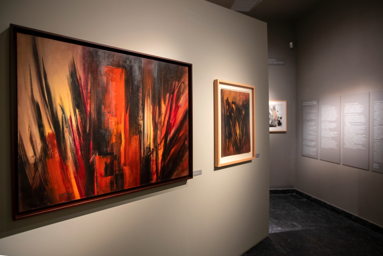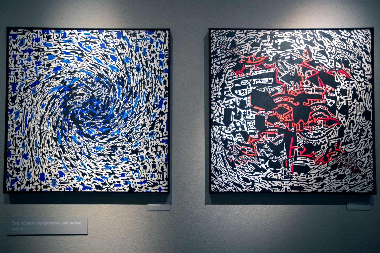 Η αριστερόστροφη είσοδος στον κυρίως εκθεσιακό χώρο αρχίζει με την 1η Ενότητα ‘Ορια της τέχνης: Η αφαίρεση, το φως η κίνηση: 1955-70’ και επικεντρώνεται στα πρώτα του έργα που χαρακτηρίζονται από αντισυμβατικές εικαστικές μεθόδους εκτέλεσης. Ακολουθεί μια έγχρωμη προβολή, σηματοδοτώντας την χρήση του φωτός και της κίνησης που ακολουθεί αμέσως μετά τα έργα του τελάρου. Το προοίμιο αυτό ολοκληρώνεται με την παρουσίαση των τρισδιάστατων ηλεκτροκινητικών του έργων σε ένα ιδιαίτερο χώρο, όπου ο επισκέπτης τα βιώνει εν συνόλω και εν λειτουργία.