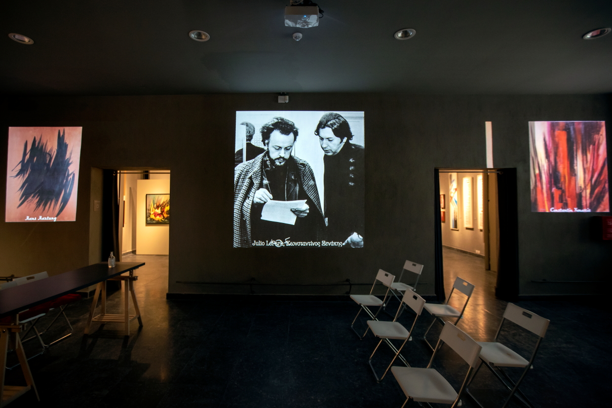 Μπαίνοντας στον χώρο του μουσείου, ο επισκέπτης εισέρχεται στην πραγματικότητα στο «Σύμπαν του Ξενάκη»: Ψηφιακές προβολές φωτογραφιών του δημιουργού και των ανθρώπων που τον περιέβαλλαν από την παιδική του ηλικία κατακλύζουν το τοίχο απέναντι από την είσοδο, δημιουργώντας ένα αλληλοεμπλεκόμενο σύμπαν ανθρώπων και τόπων.