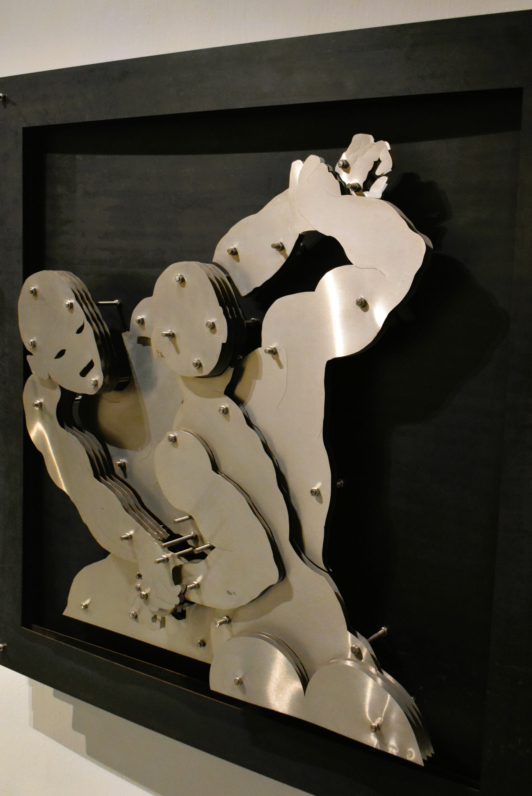 Το αντιλαμβάνεσαι περιηγούμενος και στις υπόλοιπες θεματικές της έκθεσης «Εξομολόγηση», με έργα που στηλιτεύουν, σχολιάζουν, αγγίζουν με χιούμορ και ειρωνεία κάποιες φορές ζητήματα που αφορούν το σημερινό άνθρωπο, με βαθιές κοινωνικές προεκτάσεις: οι ανθρώπινες σχέσεις, ο ρόλος της εκκλησίας, τα πολιτικά συμφέροντα, ο ατομικισμός, η μαζική κατανάλωση εικόνων και τάσεων από τα μέσα ενημέρωσης. Γροθιά στο στομάχι τα στημένα σαν οθόνες τηλεόρασης άδεια, σκουριασμένα εικονοστάσια, παρατεταγμένα απέναντι από έναν βελούδινο καναπέ παλιάς αστικής κατοικίας, ένα έργο που μας υπενθυμίζει την απάθεια με την οποία συχνά παρακολουθούμε τα γεγονότα από τους δέκτες μας, στην άνεση και την ασφάλεια του δικού μας μικρόκοσμου.