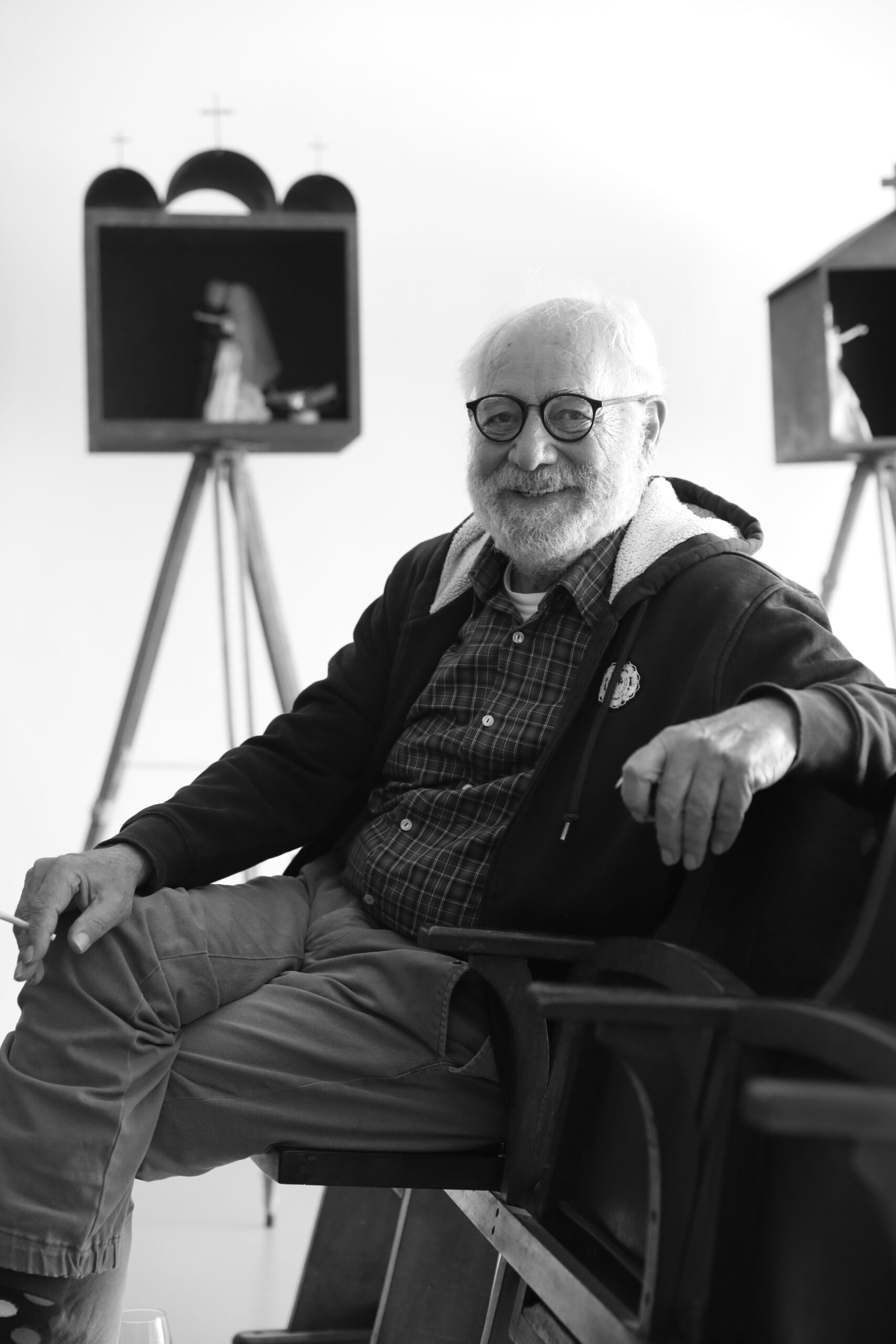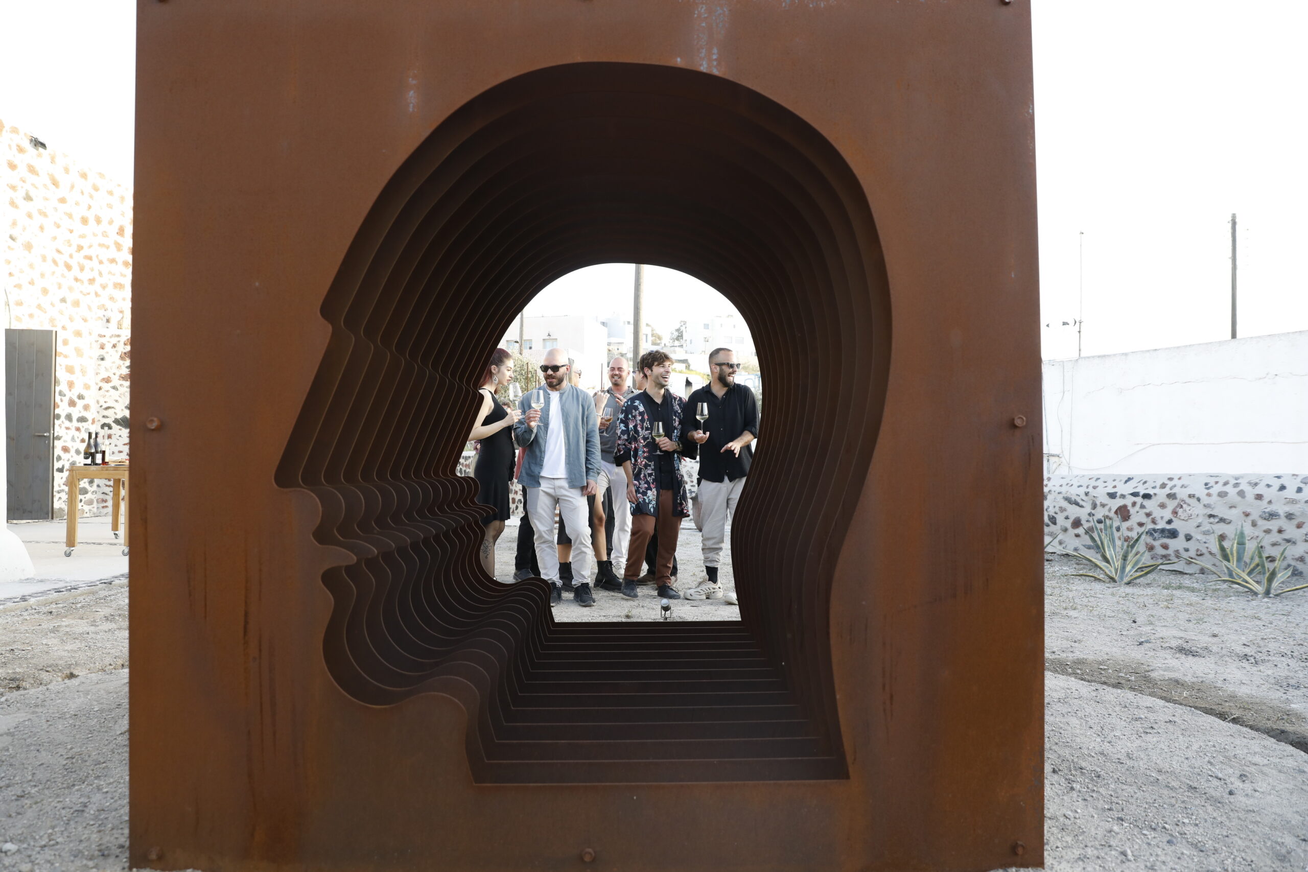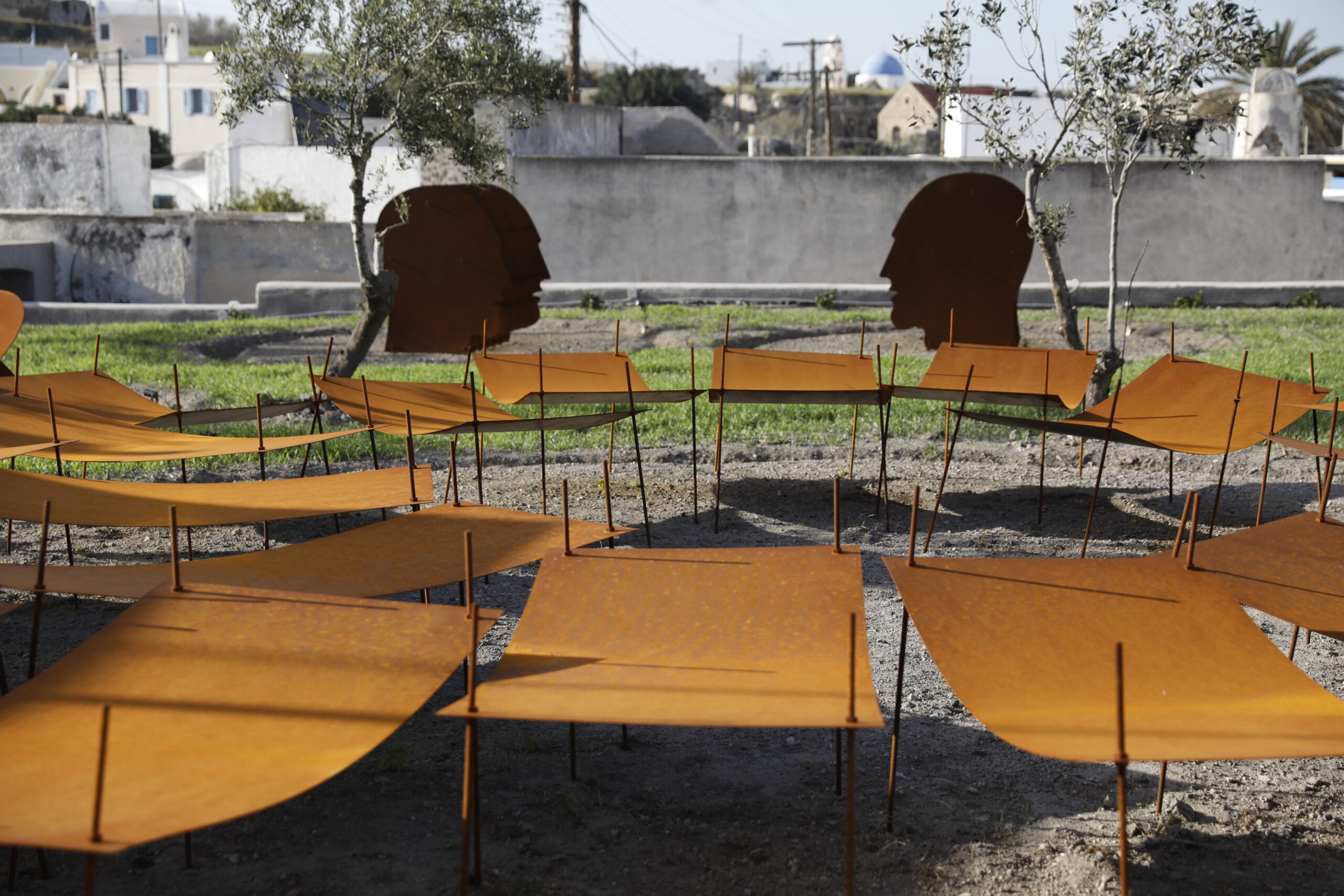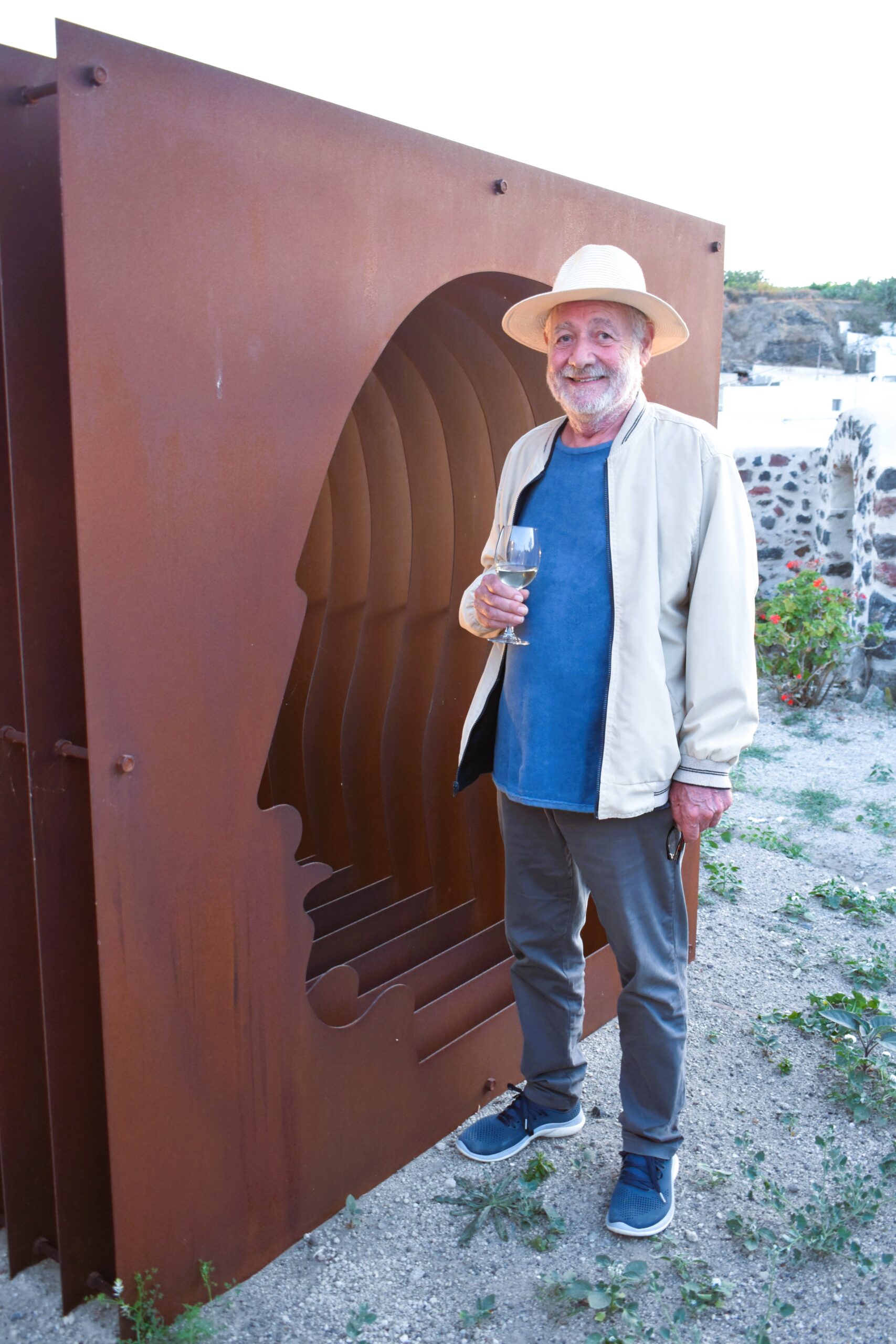 Περιπλανιέται ανάμεσα στα στάχυα που ο ίδιος φύτεψε για να πλαισιώνουν το γεμάτο δύναμη έργο του «Κρεβάτια», κοντοστέκεται μπροστά στην «Πύλη της γνώσης», μιλά με ενθουσιασμό για την υλοποίηση του οράματός του για αυτόν το μοναδικό χώρο, αλλά και για τις ελιές και τις συκές του κήπου, τις επιβλητικές κολώνες της αυλής, τον τρόπο που ο ήλιος φωτίζει και αλλάζει, μαλακώνει ή σκληραίνει τις εντυπώσεις των εξωτερικών installations, για το χρόνο που αφήνει τα ίχνη του στα οξειδωμένα μέταλλα όπως και στις ζωές μας. Ο λόγος του ποιητικός, ο ίδιος ένας γνήσιος ρομαντικός της τέχνης και της ζωής, συνάμα ένας άνθρωπος βαθιά στοχαστικός κι οξυδερκής.