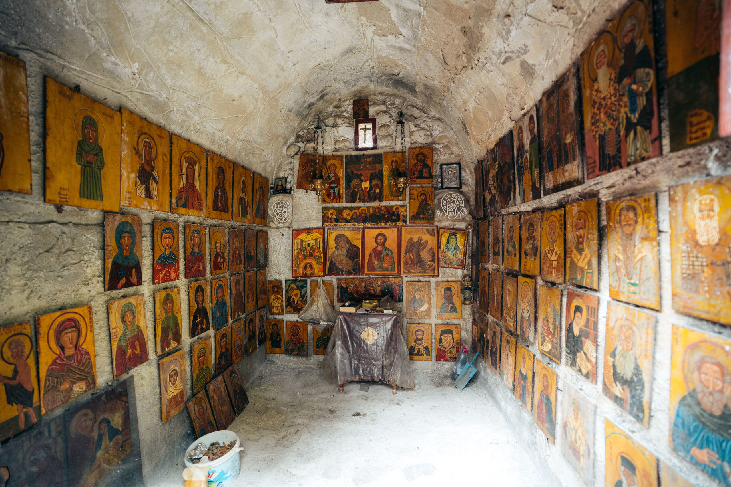 Η ιδιαιτερότητα του ξωκλησιού δεν περιορίζεται μόνο στην κατασκευή του. Πολλές από τις πέτρες φέρουν καλλιτεχνικές παρεμβάσεις: άλλες είναι χαραγμένες με καλέμι, ενώ άλλες είναι ζωγραφισμένες, δημιουργώντας μια σειρά από πρωτότυπες απεικονίσεις αγίων. Το εσωτερικό του ναού είναι εξίσου εντυπωσιακό, με κάθε διαθέσιμη επιφάνεια να καλύπτεται από εικόνες, προσφέροντας στον επισκέπτη μια μοναδική οπτική εμπειρία.