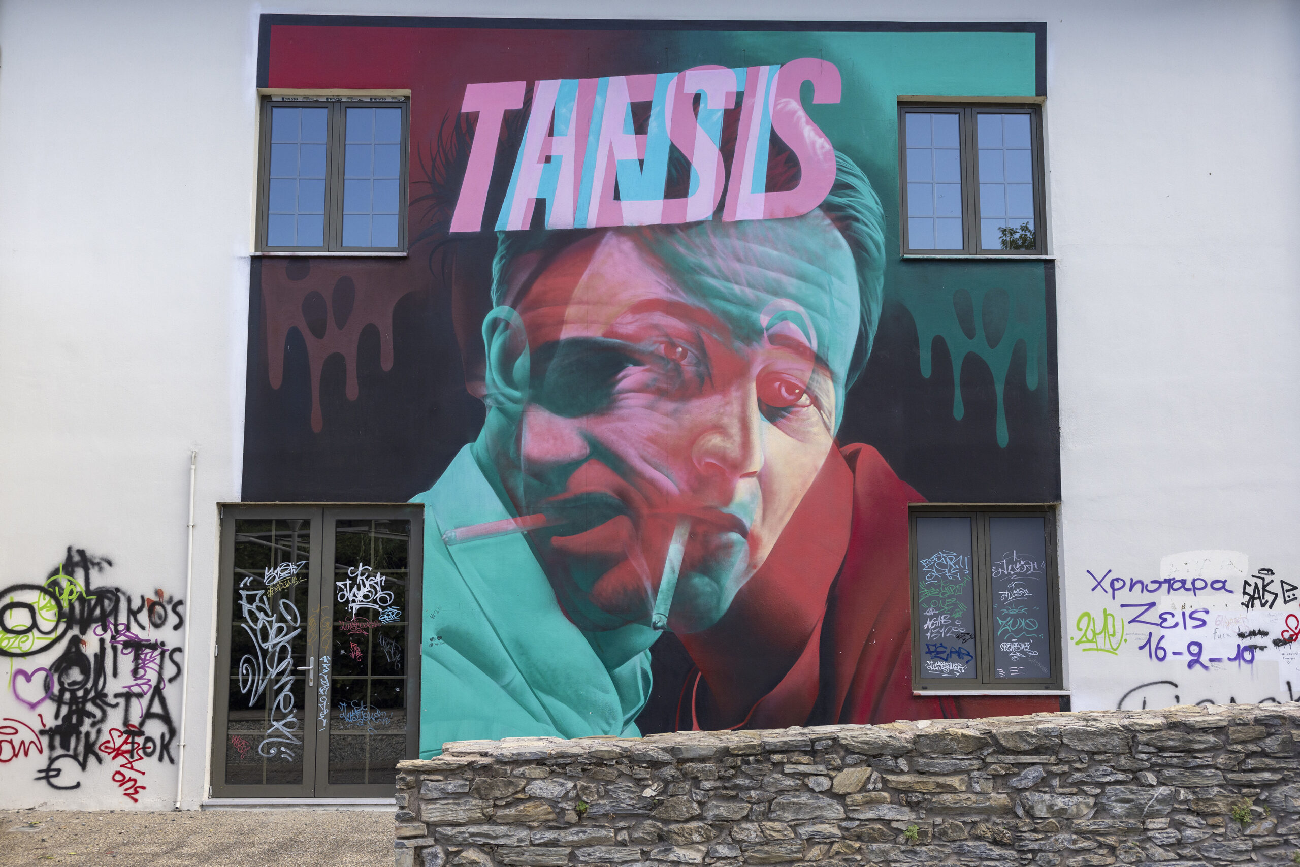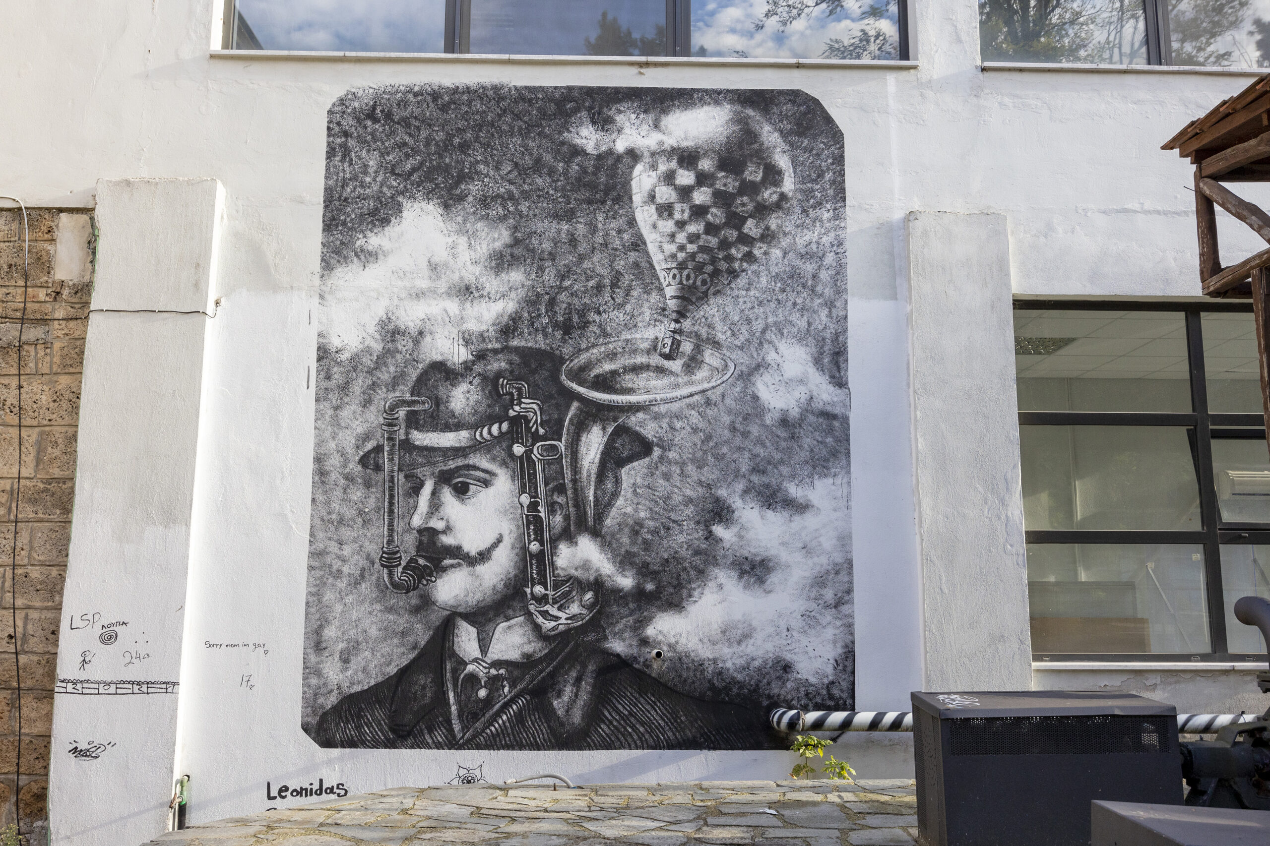 Εντυπωσιακό είναι επίσης και το graffiti στο οποίο απεικονίζεται ένας άντρας με τη μορφή μιας βιομηχανίας, του οποίου το πνεύμα αφήνεται ελεύθερο. Φιλοξενείται επίσης στο παλιό υφαντουργείο και δημιουργήθηκε το 2016 από τον Λεωνίδα Γιαννακόπουλο. Το έργο βέβαια το οποίο έχει αγαπηθεί από τους ντόπιους, για προφανείς λόγους, είναι αυτό που προβάλλει έναν «Γενίτσαρο» και μία «Μπούλα» σε κεντρικό σχολείο της Νάουσας. Είναι το σήμα κατατεθέν της πόλης και της ιστορίας της και είναι έργο του Ναουσαίου Αλέξανδρου Τσάκωνα, το οποίο ολοκληρώθηκε το 2016.