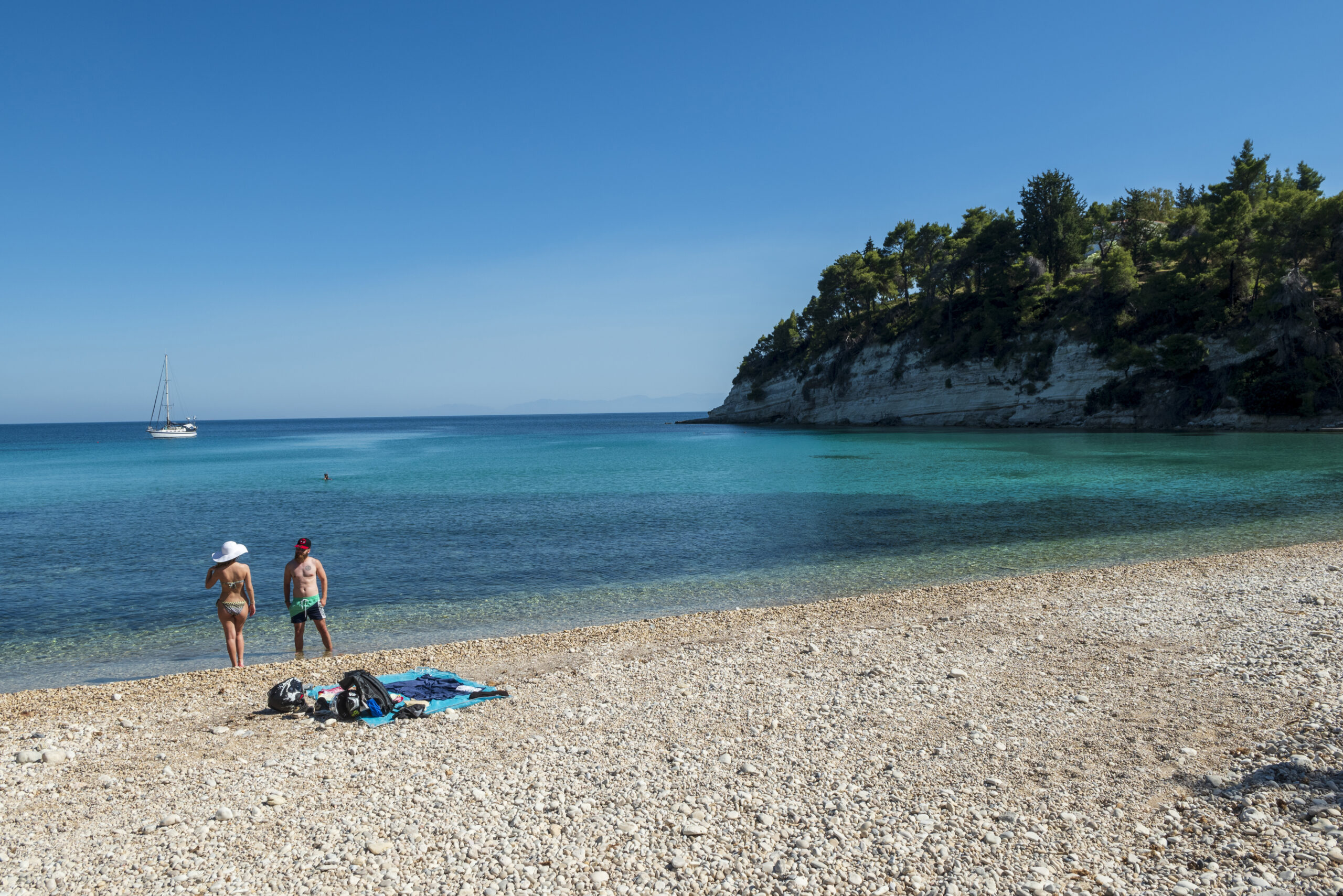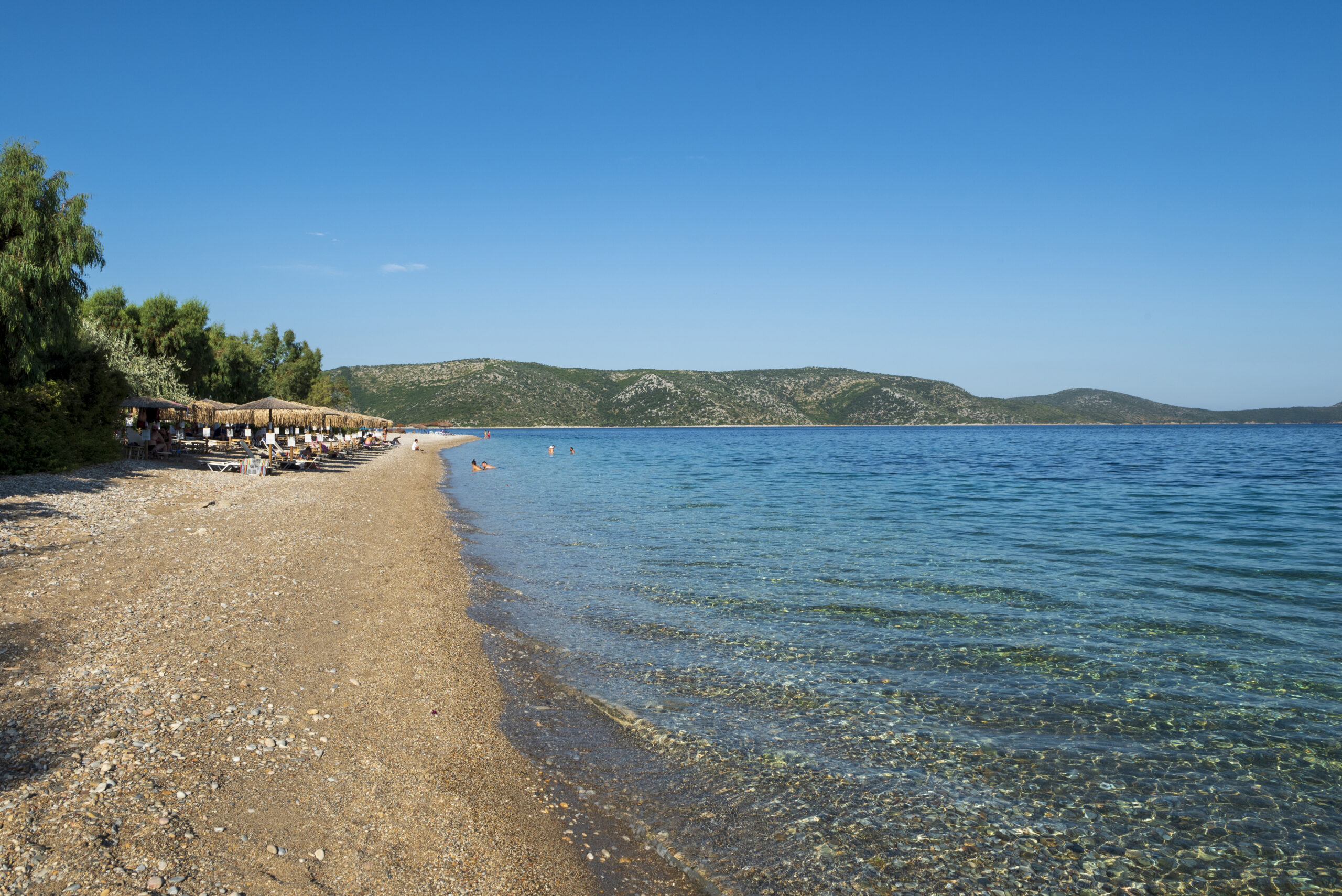 Μία παραλία που μοιάζει βγαλμένη από καρτ ποστάλ χάρη στα γκρίζα βράχια και το ψιλό της βότσαλο ενώ προσφέρει υπέροχη θέα προς δύο ακατοίκητα νησάκια. Θα φθάσετε είτε οδικώς είτε με βάρκα σε μια θαλάσσια διαδρομή που διαρκεί περίπου 40 λεπτά και προσφέρει υπέροχα τοπία.
