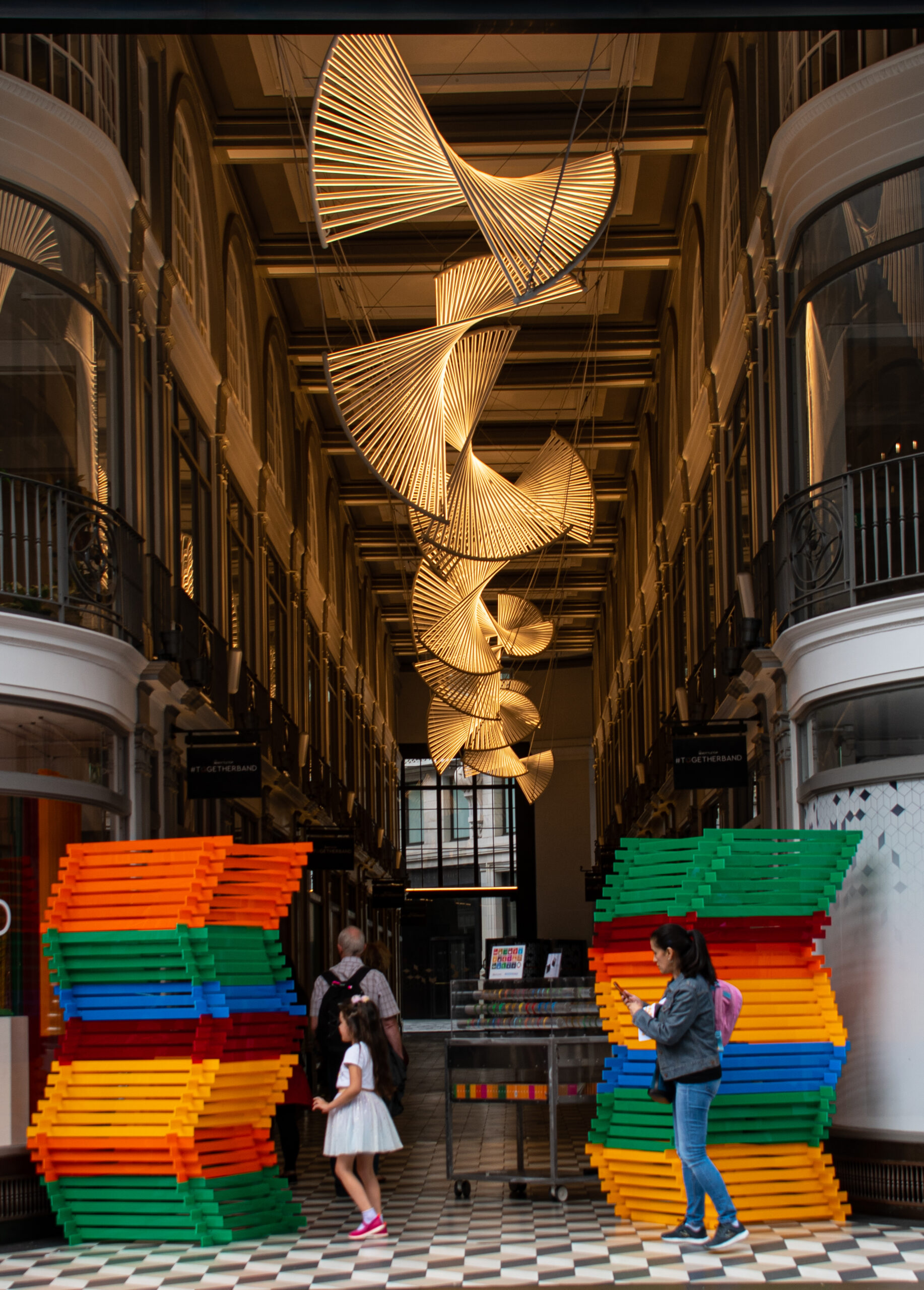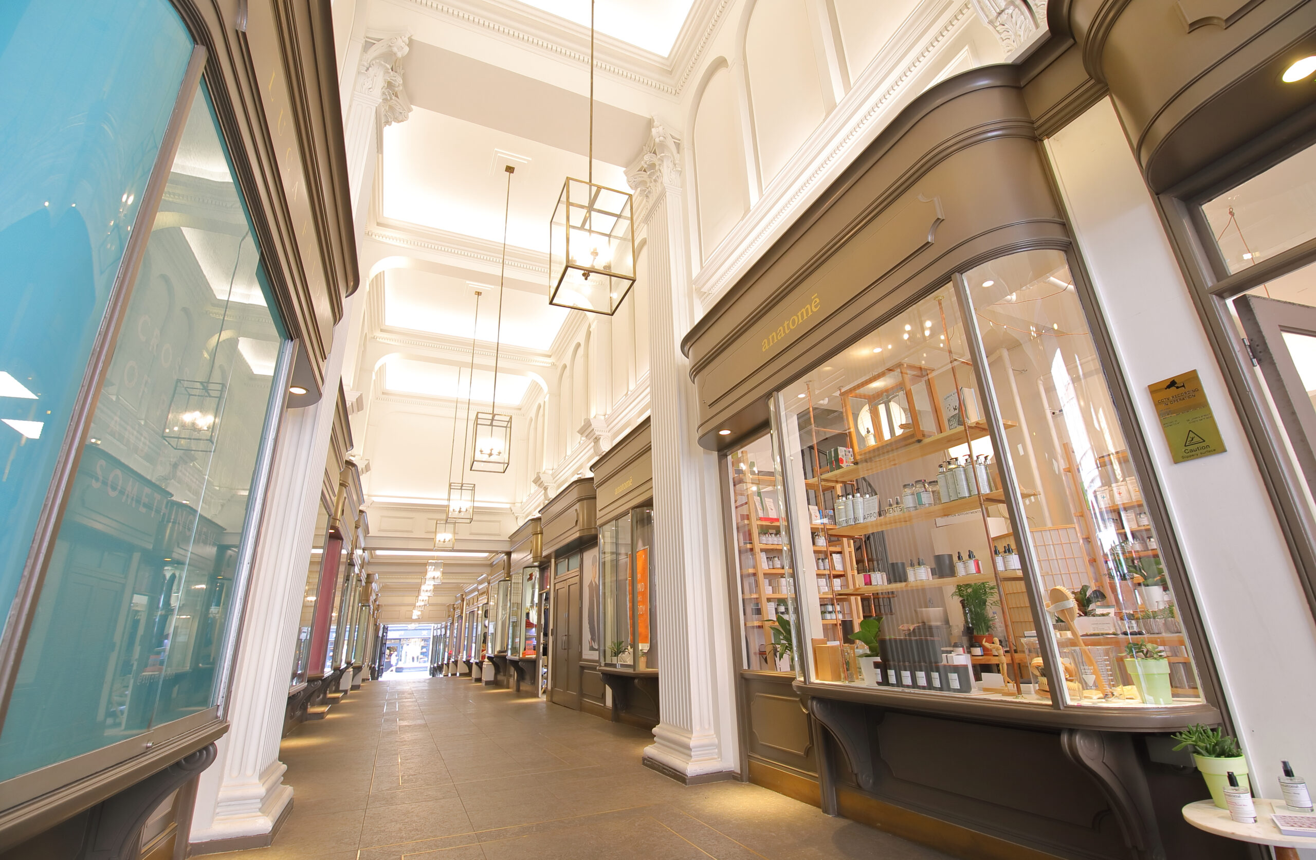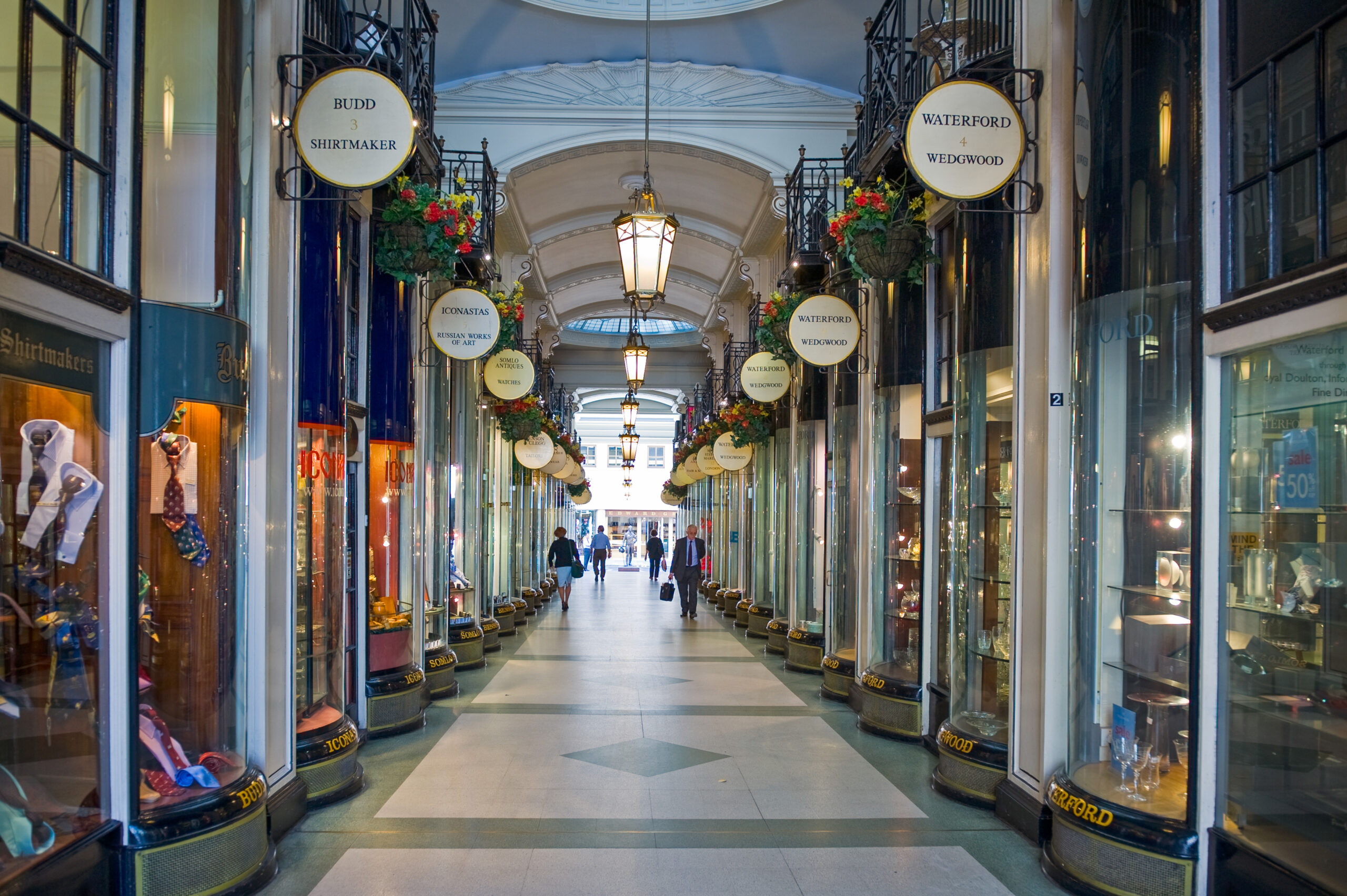 Οι 18 έμποροι που δραστηριοποιούνται σήμερα εντός της στοάς, στεγάζονται κάτω από ένα εντυπωσιακό θόλο από γυαλί και σίδερο και καταλαμβάνουν τα πανέμορφα μαγαζιά που άνοιξαν το 1909. Κοινό χαρακτηριστικό τους το σκούρο ξύλο και οι μικρές, σχεδόν στρογγυλές βιτρίνες, άλλη με τα παραδοσιακά πουκάμισα Budd, άλλη με τα πολύτιμα χειροποίητα μανικετόκουμπα της 7ης γενιάς της οικογένειας Deakin & Francis, άλλη με τα εκλεκτά καλλυντικά Santa Maria Novella, ενός από τα παλαιότερα φαρμακεία στο κόσμο που ιδρύθηκε στη Φλωρεντία το 1612, άλλη με τα εκλεκτά δερμάτινα αξεσουάρ Jean Rousseau.