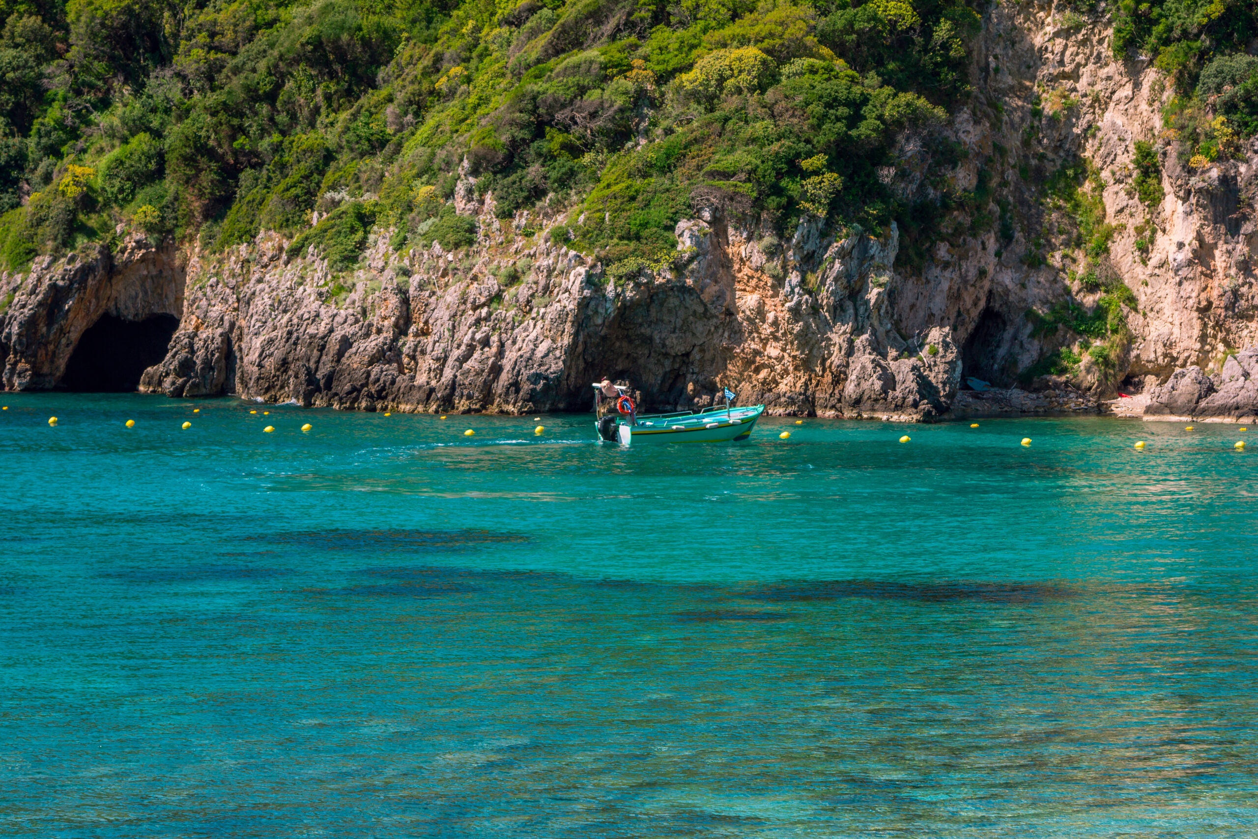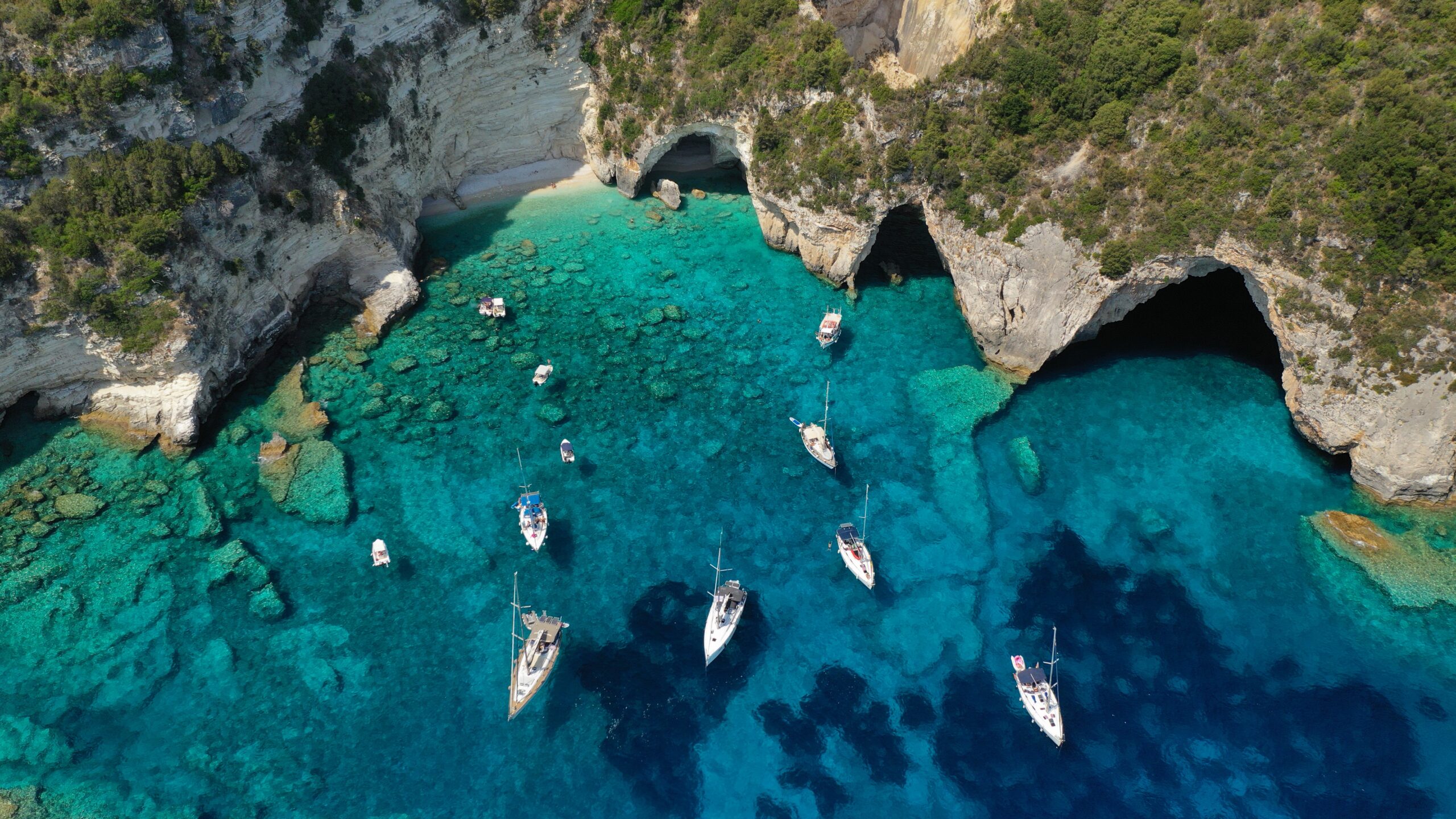 Μένουμε στα Επτάνησα αλλά αυτή τη φορά ανεβαίνουμε προς τους Παξούς και πλέουμε προς τη δυτική πλευρά τους όπου βρίσκονται σχεδόν τριάντα θαλάσσιες σπηλιές ή γράβες όπως τις λένε στο νησί. Όλες με συγκλονιστικά γαλαζοπράσινα νερά, κάποιες με μια μικρή αμμουδιά κάποιες άλλες με άπατα νερά και μερικές που το ύψος τους φτάνει και τα διακόσια μέτρα. Θα πάρετε το καραβάκι από τον Γάιο και στη διαδρομή θα ακούσετε μύθους και ιστορίες για πειρατές και θεούς, ενώ οι ντόπιοι υποστηρίζουν πως όσοι κολυμπήσουν στα νερά τους θα κάνουν γρήγορα παιδιά. Το Γαλάζιο Σπήλαιο αποτελείται από τρεις σπηλιές που επικοινωνούν μεταξύ τους και είναι ίσως το πιο διάσημο μαζί με αυτό της Υπαπαντής. Αν έχετε τη δυνατότητα να επισκεφθείτε την απόκρημνη δυτική πλευρά των Παξών με ιδιωτικό σκάφος, θα τις χαρείτε ακόμα περισσότερο καθώς μπορείτε να σταματήσετε σε όποια θέλετε και να βουτήξετε όση ώρα θέλετε.